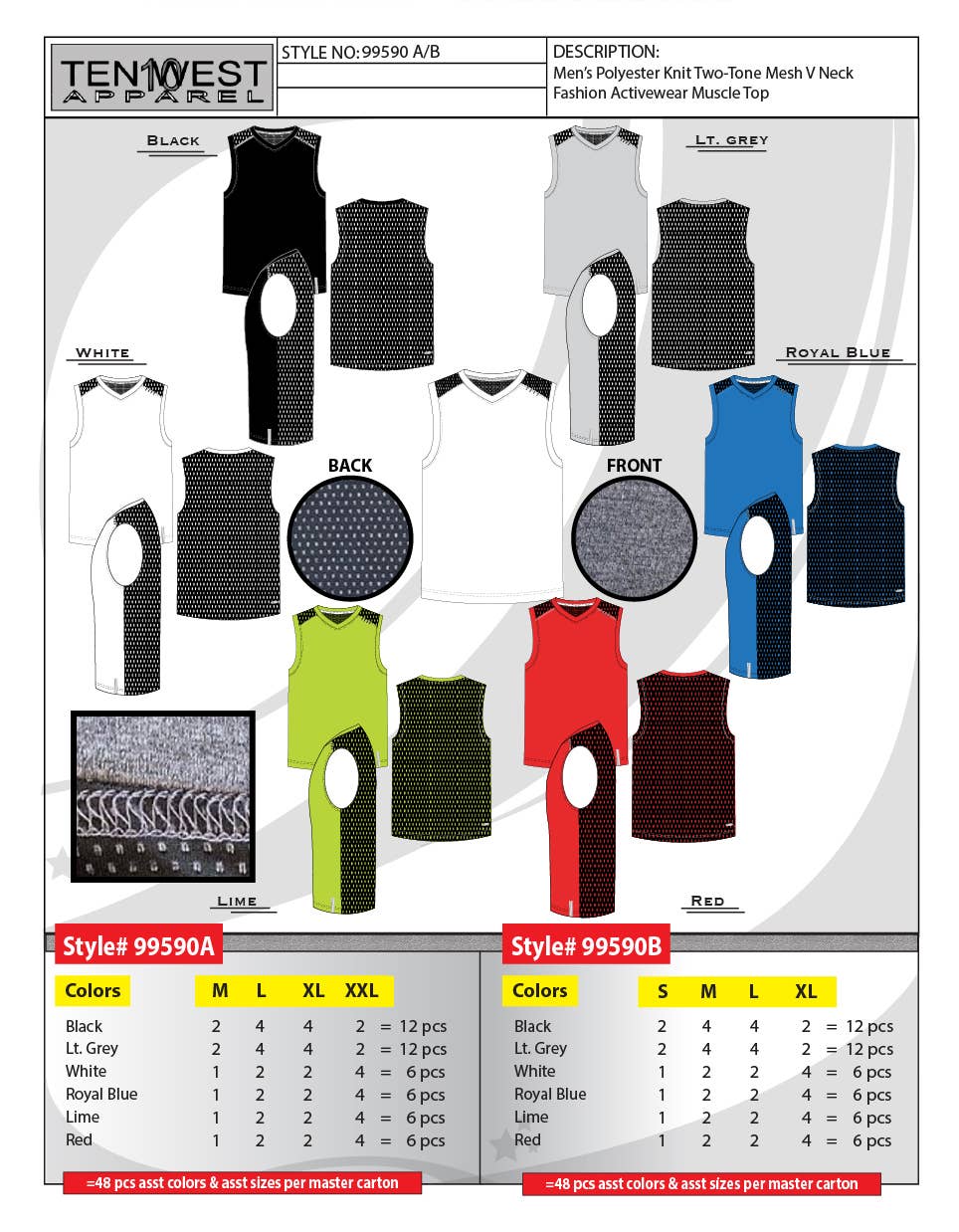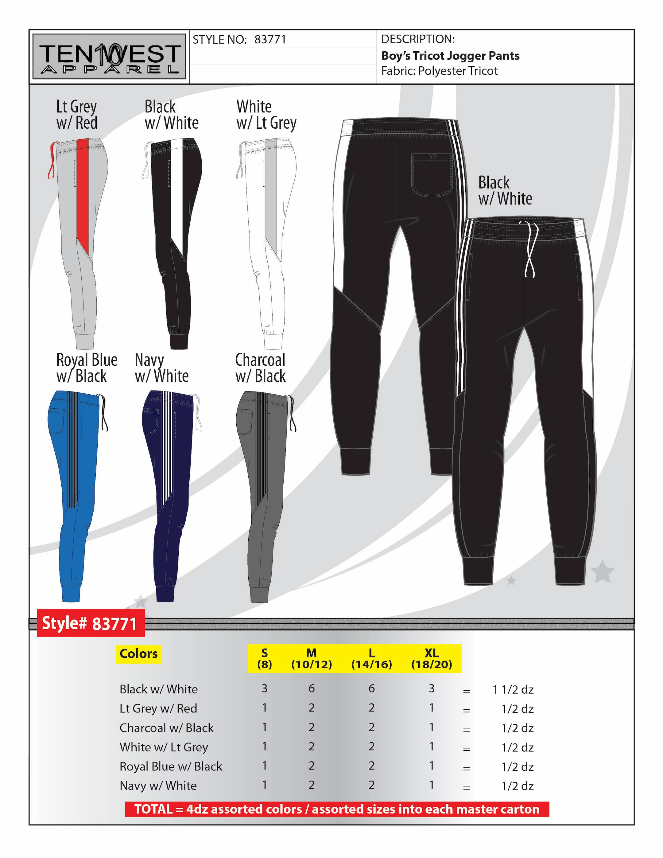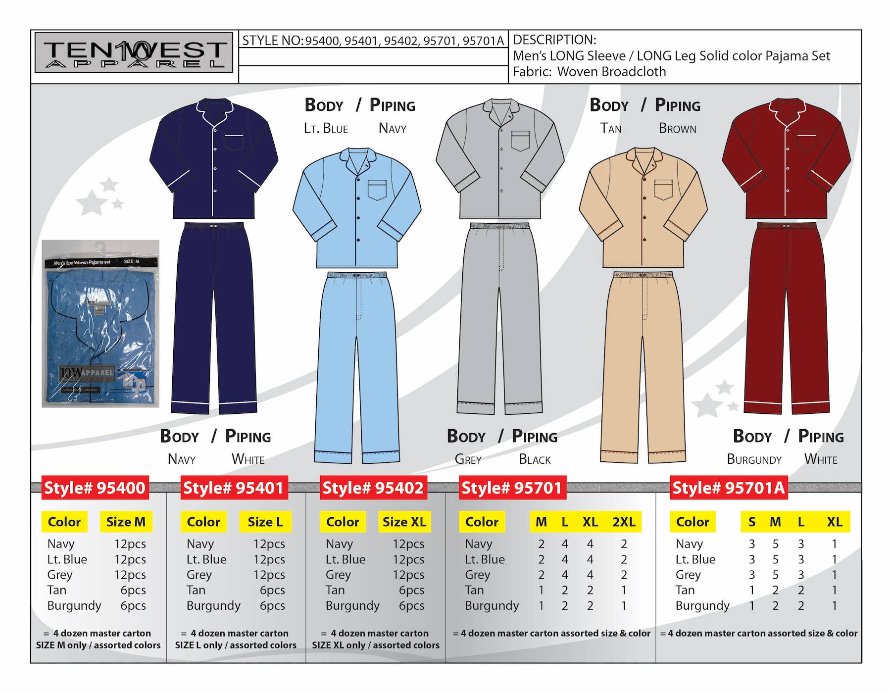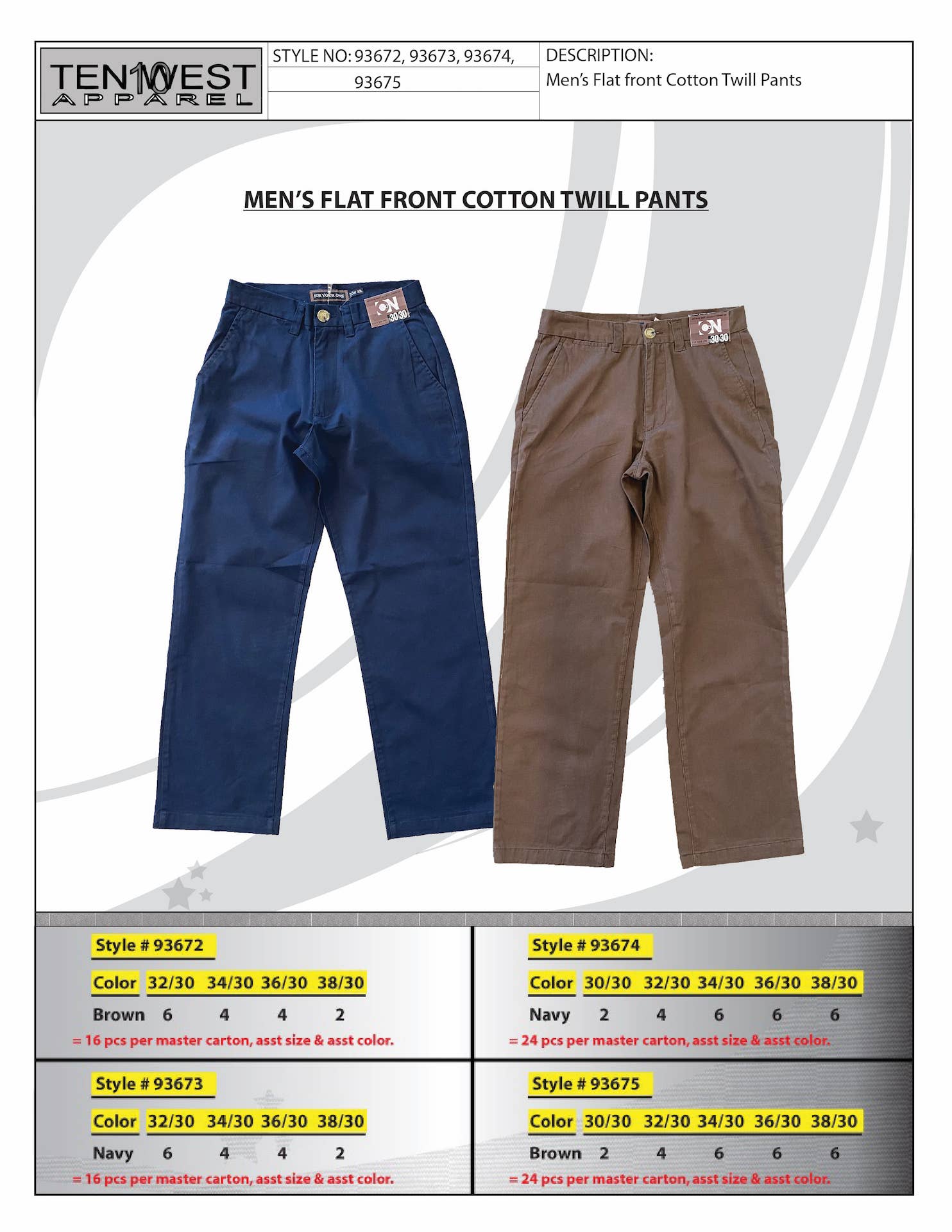 Ten West Apparel Inc. er en velkendt producent, importør og distributør af overvejende herre såvel som drenge tøj, og er kendt i beklædningsindustrien som et selskab af kvalitet, loyalitet, og dedikation for over 40 flere år. Vi har en komplet serie af lagerførte varer, og vi er også specialiserede i Private Label-forretning såvel som genopfyldningsordrer. Vi arbejder med mange detailhandlere landsdækkende spænder over 50.000 butikker, betjener mange distributionskanaler, herunder Mid-Tier stormagasiner, Mass discount butikker samt mor og pop butikker og e-tailers. Ten West Apparels-linjen består af sportsbeklædning, Fritidstøj, Arbejdstøj, Overtøj, Kjole slid, Lounge slid, Undertøj & Strømpebukser. Vi tilskriver vores vækst aggressiv prisfastsættelse, korrekt planlægning, streng overholdelse af leveringsplaner, og vores langsigtede engagement og dedikation til vores kunder. Vores eget lageranlæg ligger på østkysten beliggende i New Jersey og tæt på havnen. Vi har evnen til at billetvarer samt assortere og plukke n"pack. Velkommen ind og lad os vise dig, hvad vi handler om!