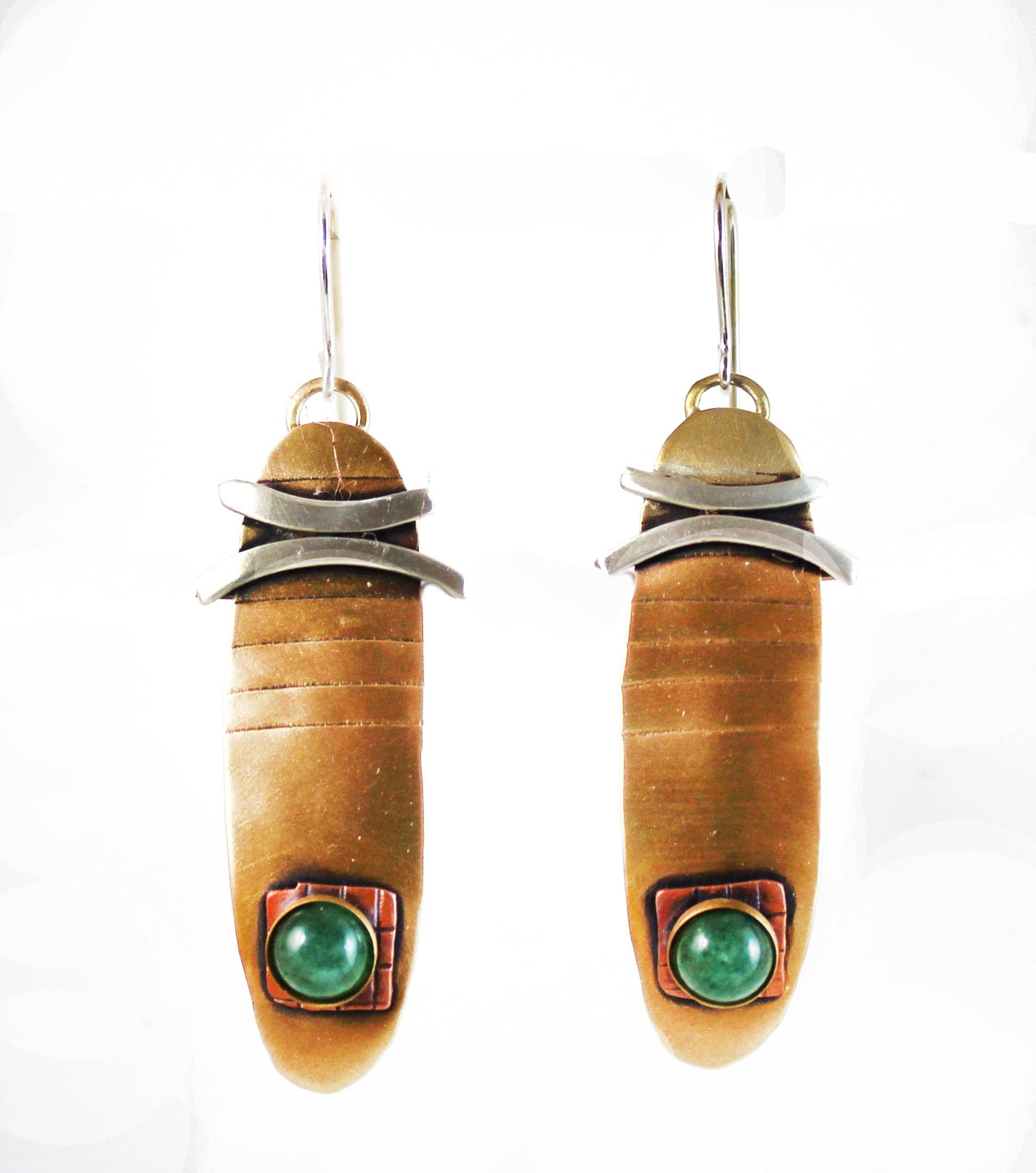 Gennem hele 50 år, som vi, John og Linda Whitney, har arbejdet med metalsmede, vores mål har været at producere et smil på vores kunders ansigt ved at skabe et smykkeværk, der er godt udformet, men meget overkommeligt. Alt vores arbejde er lavet fra start til slut ved hjælp af traditionelle sølvsmedsteknikker til fabrikation. Da vi begyndte at skabe stykker i 1970 var de alle sterlingsølv og 14 kt guld, men nu har vi udvidet til andre metaller ved at tilføje rød messing og kobber. Disse kobberbaserede legeringer og polymer ler har tilføjet farver og oxidation, der ikke var mulige med traditionelle metaller. Vi fortsætter med at eksperimentere med polymer ler som en måde at tilføje en farverig historie og overfladedesign til større smykker. Ved at bruge denne ler kan vi lave lette vægtstykker nogle med motiver inspireret af afrikanske tekstiler og oprindelige kunst fra Sydhavet. De afskårne metalstykker er kærligt formet over sølvsmedindsatser og træstubbe ved hjælp af formning og hævning af hamre. Derefter samles arbejdet med gaslodning fakler og sølv lodde. Afhængigt af designet, vi kan fortsætte med at danne med hamre og jagter værktøjer, DAP, eller korrugere for at opnå den ønskede effekt. Naturstendekorationer føjes til designene for at give det integritet. Vores stadigt bindende kærlighed til metalets plasticitet og glæden ved at skabe med vores hænder er vores daglige inspiration.