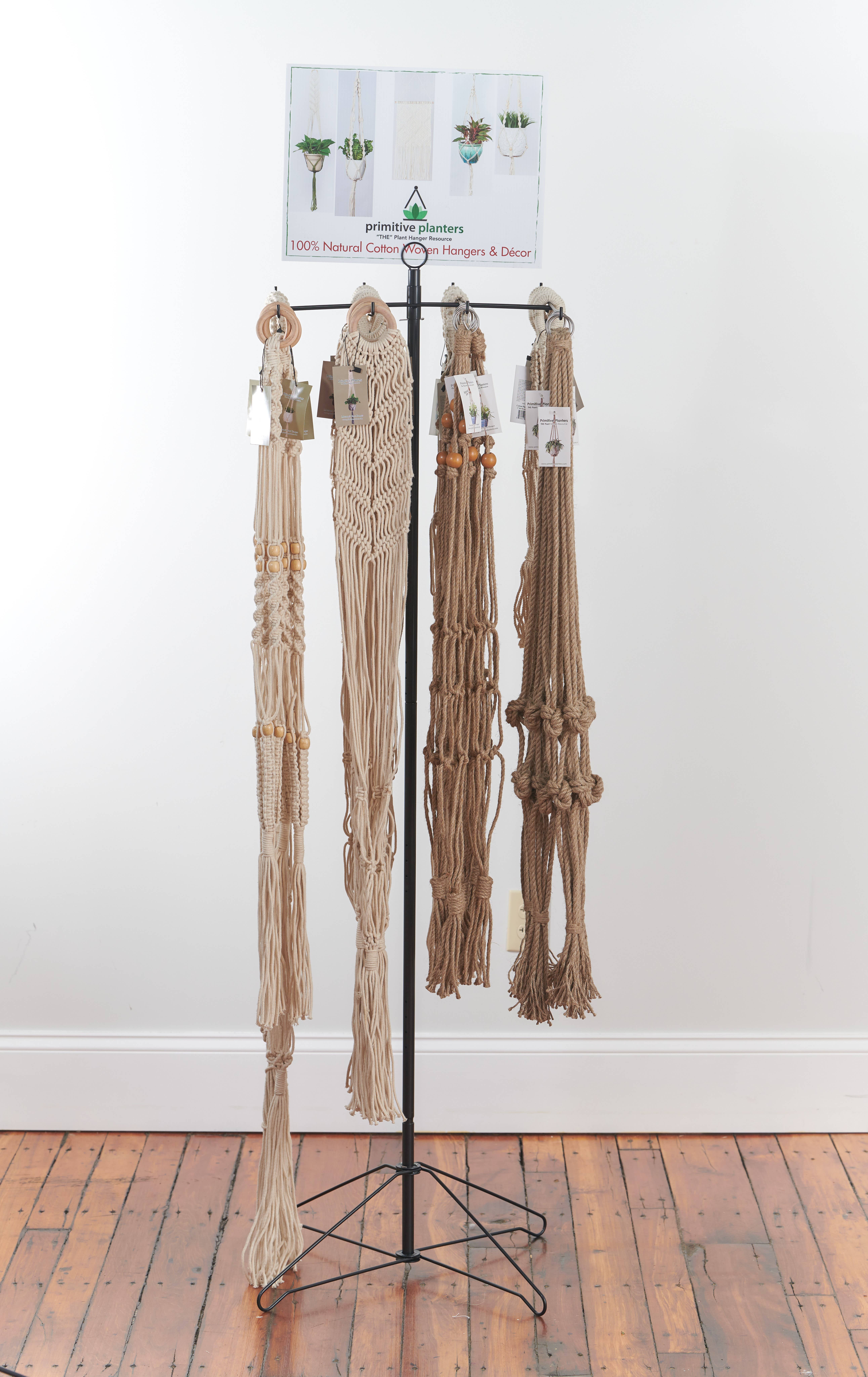 Primitive Planters er one-stop-løsningen til alle dine planter (og ikke-planter!) hængende behov. Som innovatør i hjem- og havebranchen slog vi rod ved at sælge vores patenterede stofplanteophæng for over 18 år siden. I dag tilbyder vi en 250+ produktlinje, der indeholder macramé, helt naturlig jute, stof og vores vildt populære vævede bomuldsbøjler. Vores plantebøjler får dine planter, plastik- og keramikpotter til at se absolut bedst ud. Stolt over at være en kvindeejet lille virksomhed.
