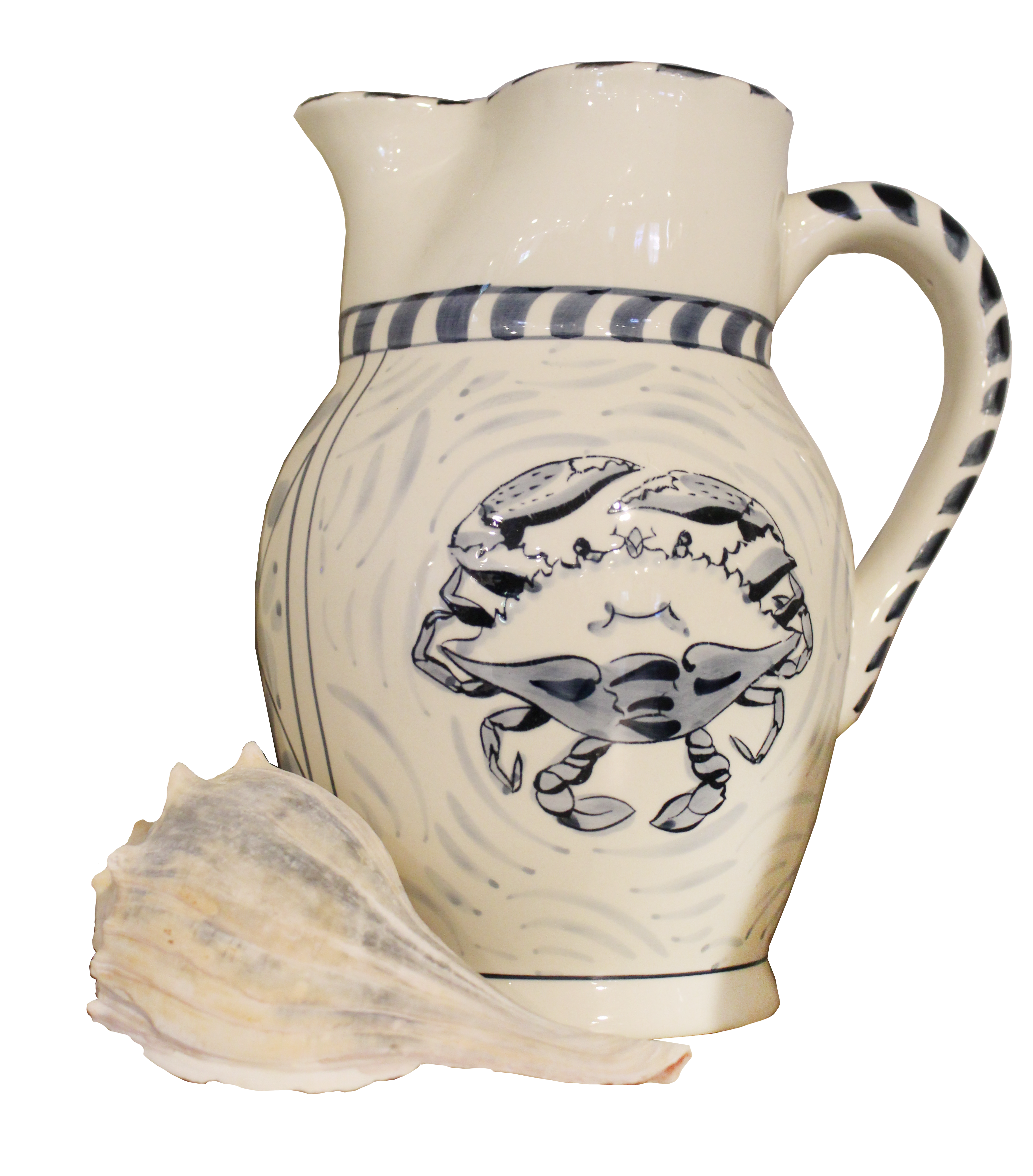 Blue Crab Bay Company ligger mellem Chesapeake Bay og Atlanterhavet. Vores kyststentøjslinje er lavet til at fejre livet. Vi tilbyder komplette bordpladeindstillinger (middag, brød, dessert, suppe) gryderetter, blandeskåle, østersplader, kagestativer og mange flere muligheder. Hele kyststentøjslinjen er ovnsikker til 450 grader, mikroovn og opvaskemaskine. Vi er den perfekte tallerken eller fad til at servere din familie og dine gæster. Hvis du bor tæt på kysten eller drømmer om middage med bølger, der lapper mod stranden, kan vores kyststentøjslinje transportere dig dertil. Kom og lev kystlivet med os!