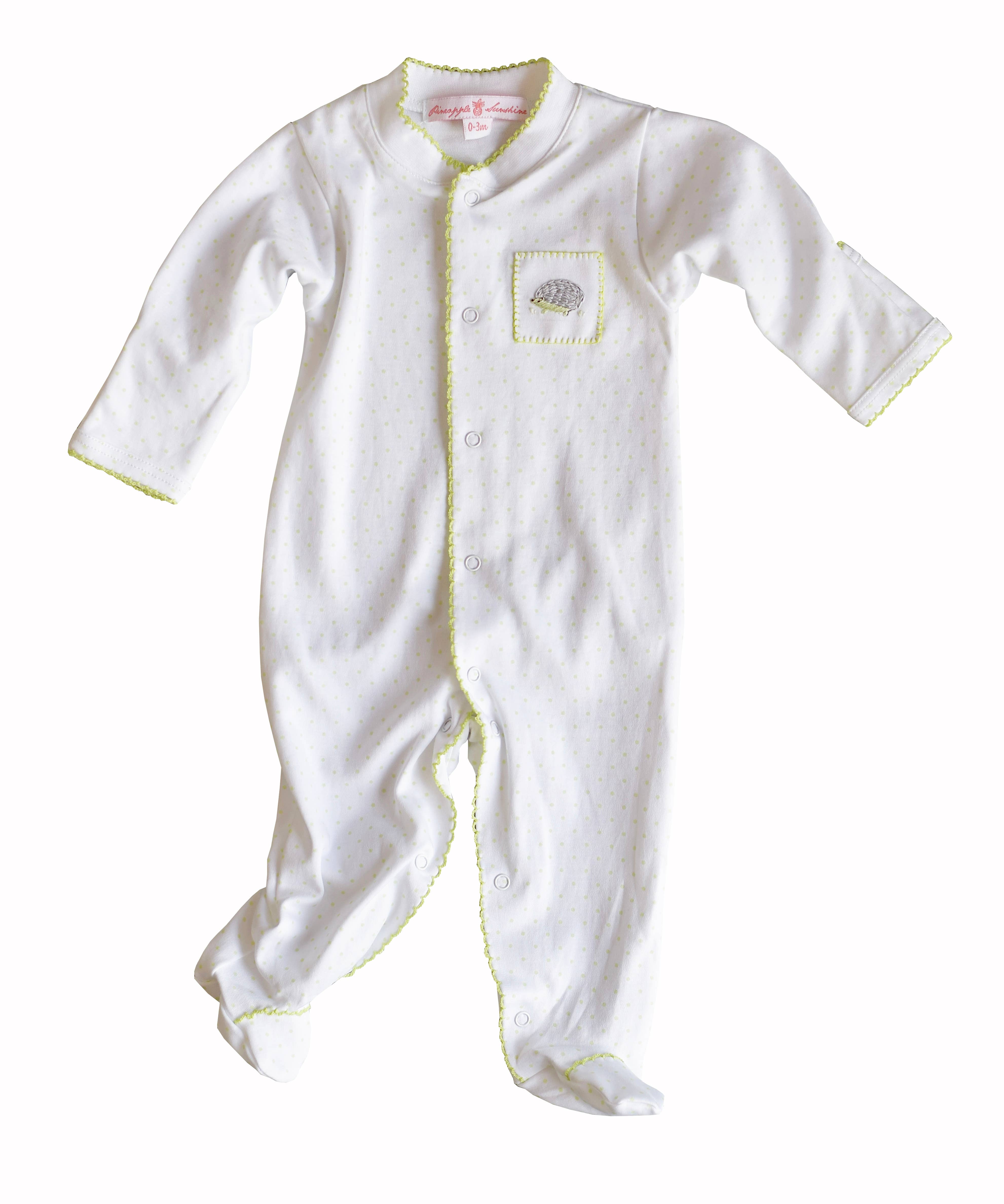 Pineapple Sunshine er et børnetøjsmærke fra nyfødte til fire år. Linjen har hæklet trimmet onesies, smocked strik kjoler med flæse blomstrer, zip front footies i brugerdefinerede prints, sparkedragter med kontrast trim og matchende tæpper, som alle er lavet af 100% peruvianske Pima bomuld, den blødeste bomuld til rådighed på markedet. Bomulden er blød og silkeagtig mod din babys sarte hud, samtidig med at den er let at vaske. Hver stil fremkalder en „Åh min godhed, jeg er nødt til at have det“ reaktion. De er bare for sjove til at passere op!