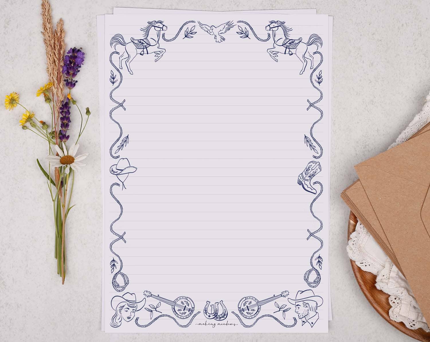 Making Meadows Ltd blev grundlagt i 2019 af Samantha. I årenes løb er virksomheden vokset fra et lille udvalg af lykønskningskort til en stor samling af papirvarer, gaver og skrivepapir. Alle vores produkter starter med et maleri, ofte inspireret af den omkringliggende britiske flora og fauna. Vores mål er at skabe smukke, premium papirvarer, der får dig til at smile og er også miljøvenlige over for verden. Fordi det er vigtigt for os.