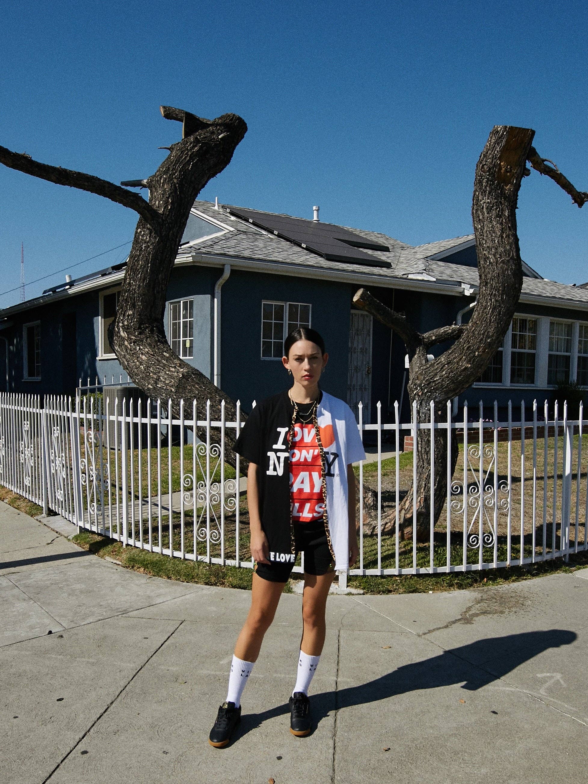 Vores brand er designet til de mavericks, der ikke følger de sæsonbestemte tendenser. Vores tøj er behagelige, sæsonfri og sexet. Hvert stykke er omhyggeligt håndlavet og en af en slags. Størstedelen af vores stykker er 100%. Vi tilbyder vores kunder en mulighed for at tilpasse deres egne stykker ved at vælge eksklusive farveskemaer og hvilken del af deres krop de gerne vil vise. Hvert stykke er dekonstrueret med en moccasin-søm, der skaber mønstre, der viser dele af kroppen. Fletningen er skabt af strimlede stykker fra t-shirts.