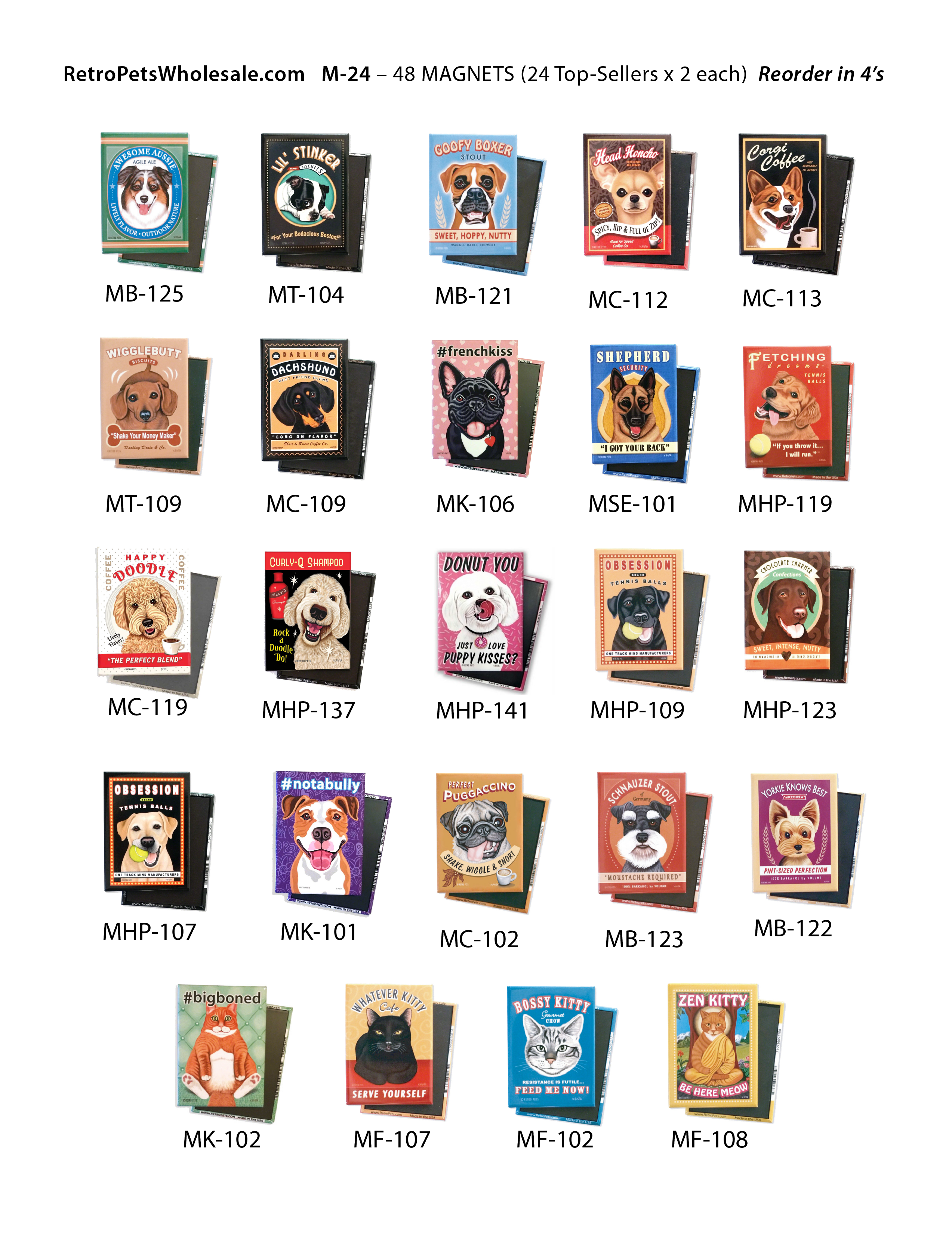 Folk er PET-besatte... Foder deres besættelse med Retro Pets! Hej! Jeg er Krista retropetsgirl. Kunstner, Grundlægger & Tophund. Jeg har det så sjovt at undersøge hver race og skabe mine Retro Pets. Hvis du er ny på mine „værker af ARF“, så kig dig omkring (alt er arrangeret alfabetisk efter race). Jeg stræber efter at komme med sjovt ordspil, der både taler til racen, PLUS fungerer med uanset hvilken type „produkt“ det er (øl, kaffe, godteringsmærke osv.). Hvis du tror, at Retro Pets måske passer godt til din butik, hvorfor ikke prøve dem? (MAGNETER er min #1 sælger BY A MILE, bare så du ved det.) Du kan faktisk placere en åbningsordre med så lidt som 11 magnet 4-pakker. Og hvis du vil vide, hvad de bedst sælgende magneter er, skal du tage et kig på de designs, der er inkluderet i „Magnet Mish-Mash Top 24 Sellers“. Fantastisk måde at hoppe ind på. #truf Har du set min video „Krista's Creative Journey“ endnu...? Se venligst, det er sjovt! :D Og forresten doneres en del af Retro Pets-salget til værdige dyreorganisationer som Dog Is My Co-Pilot. De transporterer udsatte dyr fra overfyldte krisecentre til kærlige familier. Yay!