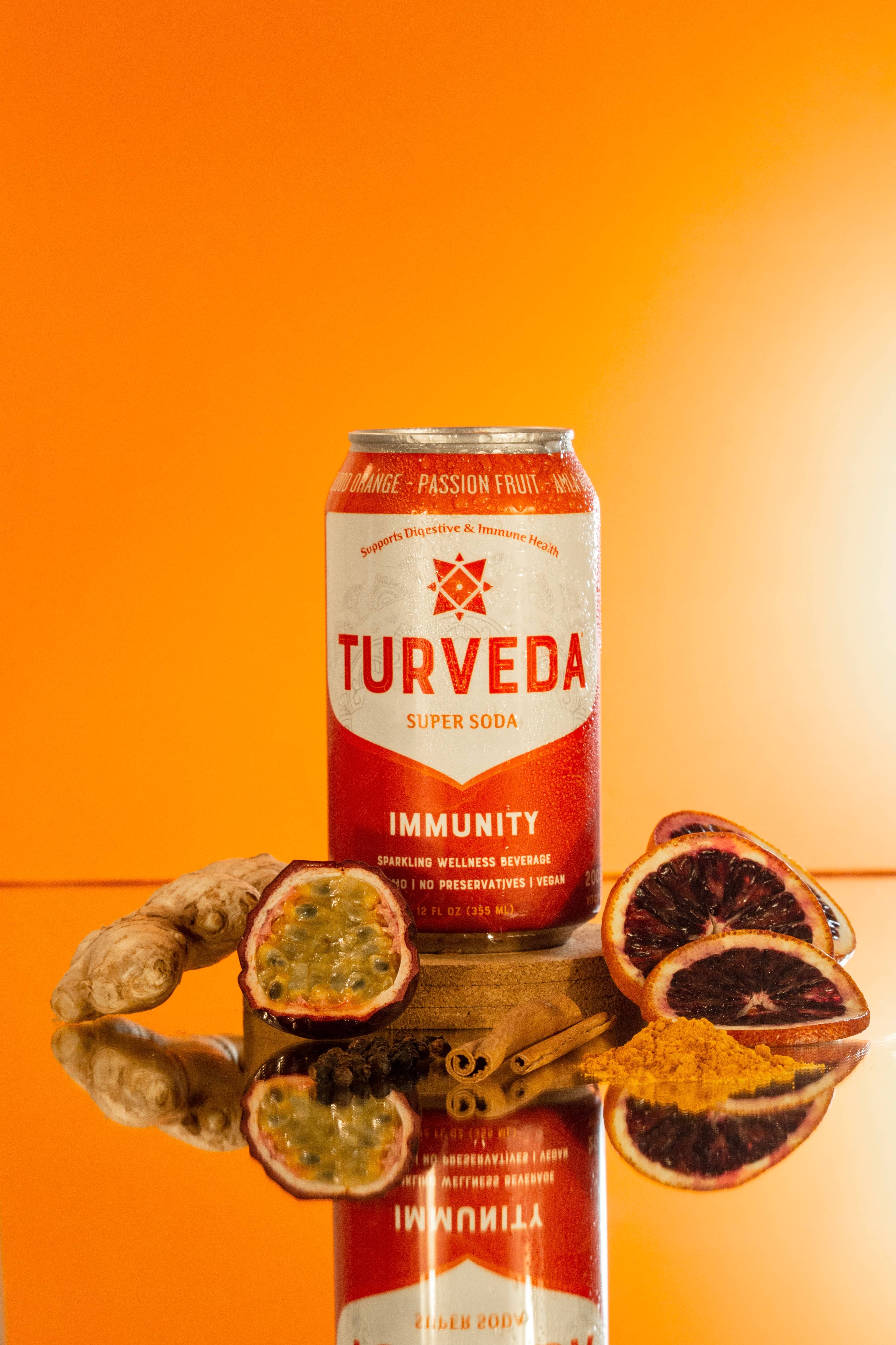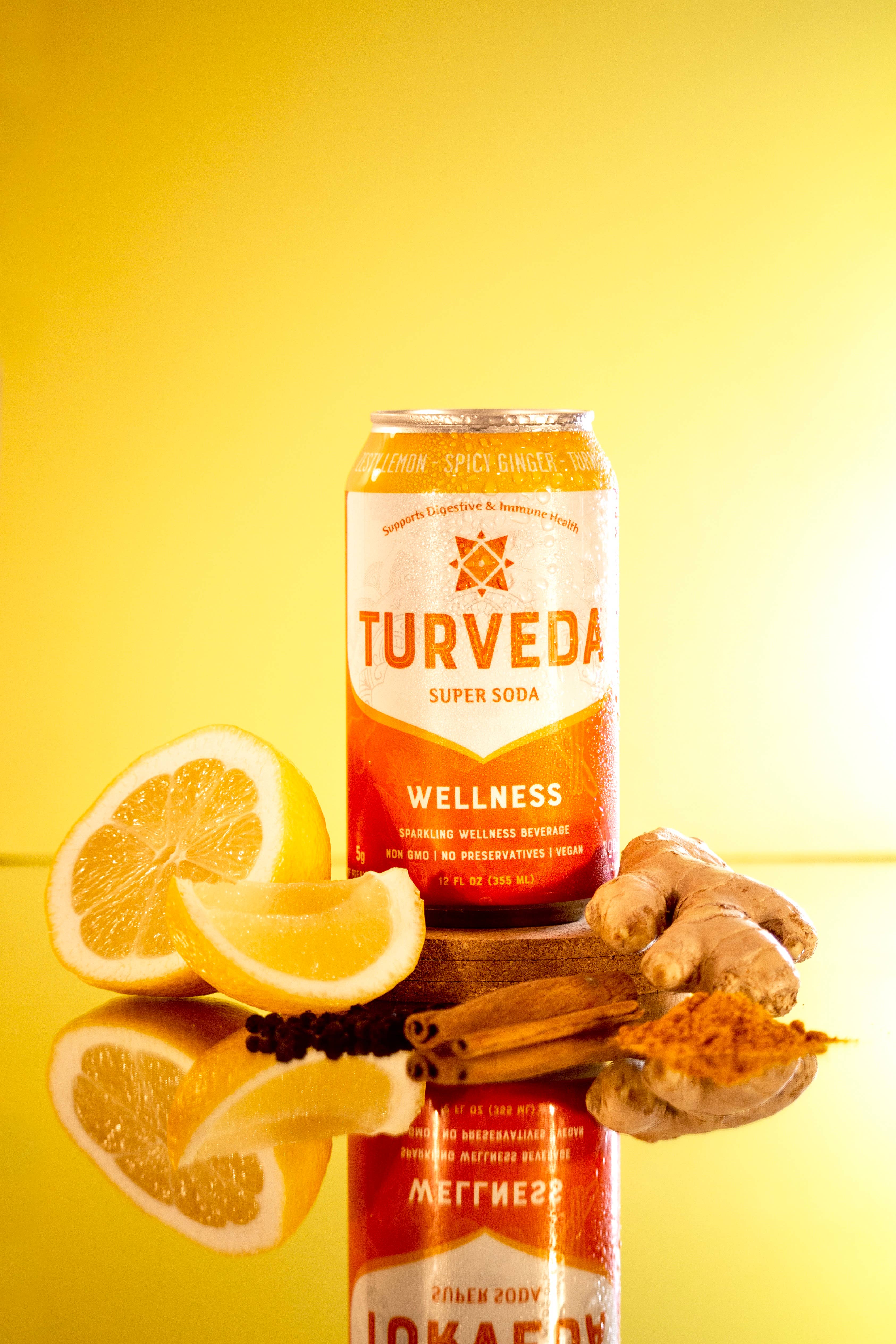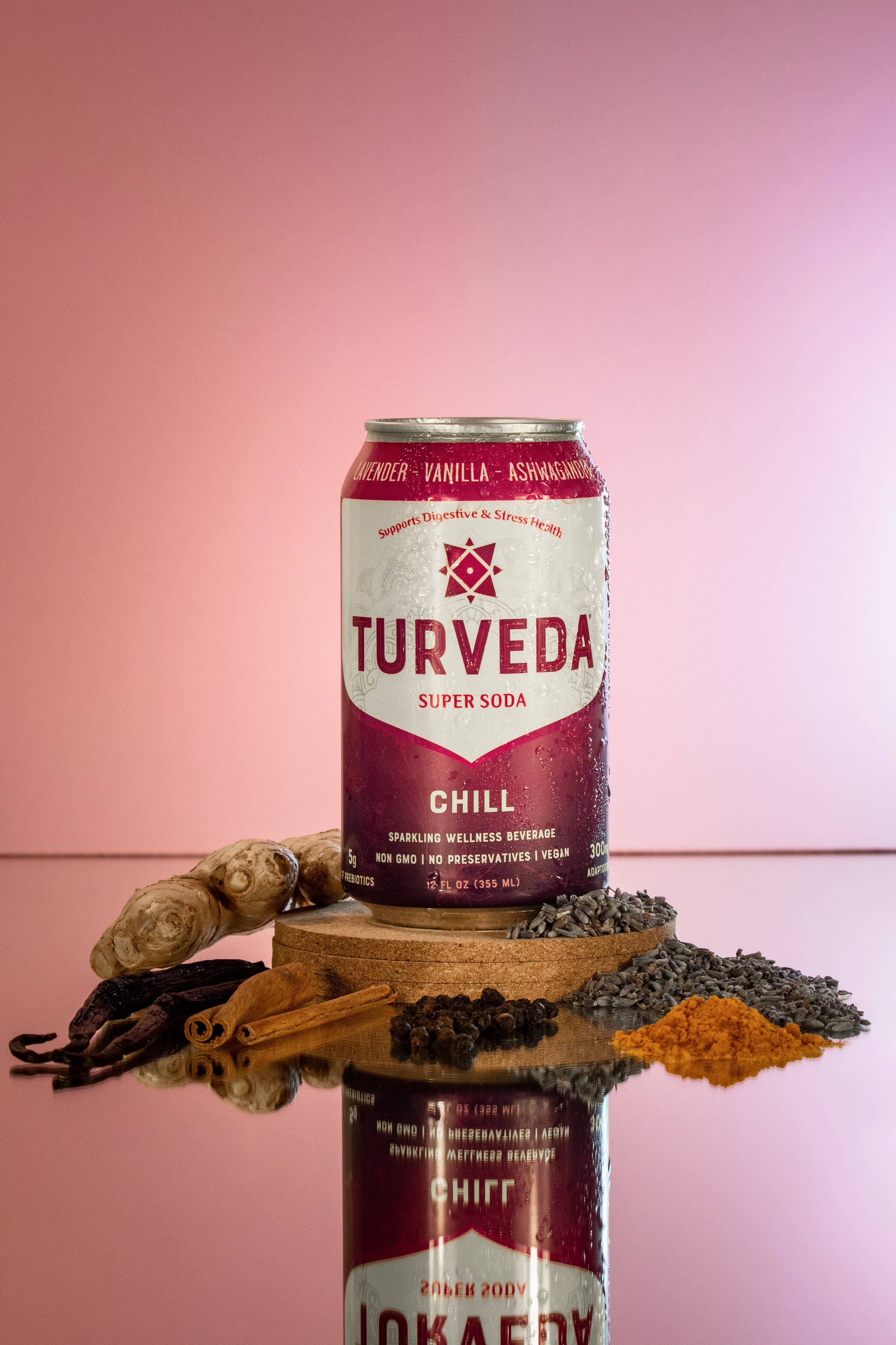 TURVEDA SUPER SODA - 3000 års wellnessvidenskab i en dåse! I en verden, hvor wellness-trends kommer og går, står TURVEDA som en bro mellem gammel visdom og moderne forfriskning. Inspireret af den tidløse videnskab om ayurveda, som har plejet menneskers sundhed i tusinder af år, er TURVEDA mere end bare en drink - det er en rejse ind i hjertet af holistisk velvære, pakket ind i den brusende glæde ved en mousserende supersoda. TURVEDA er tarmlæge formuleret og designet til at øge tarmmikrobiomet og immunsundheden ved at levere næsten 20% af din daglige fiber og superplanter/urter i en dåse med tre lækre smag og tre forskellige funktioner - Chill, Immunity og Wellness. Hos TURVEDA er vores sodavand fremstillet med omhu, fri for kunstige sødestoffer og konserveringsmidler og tilført Ayurvedas urtevisdom. Drik godt. Føl dig godt. Lev godt - med TURVEDA.