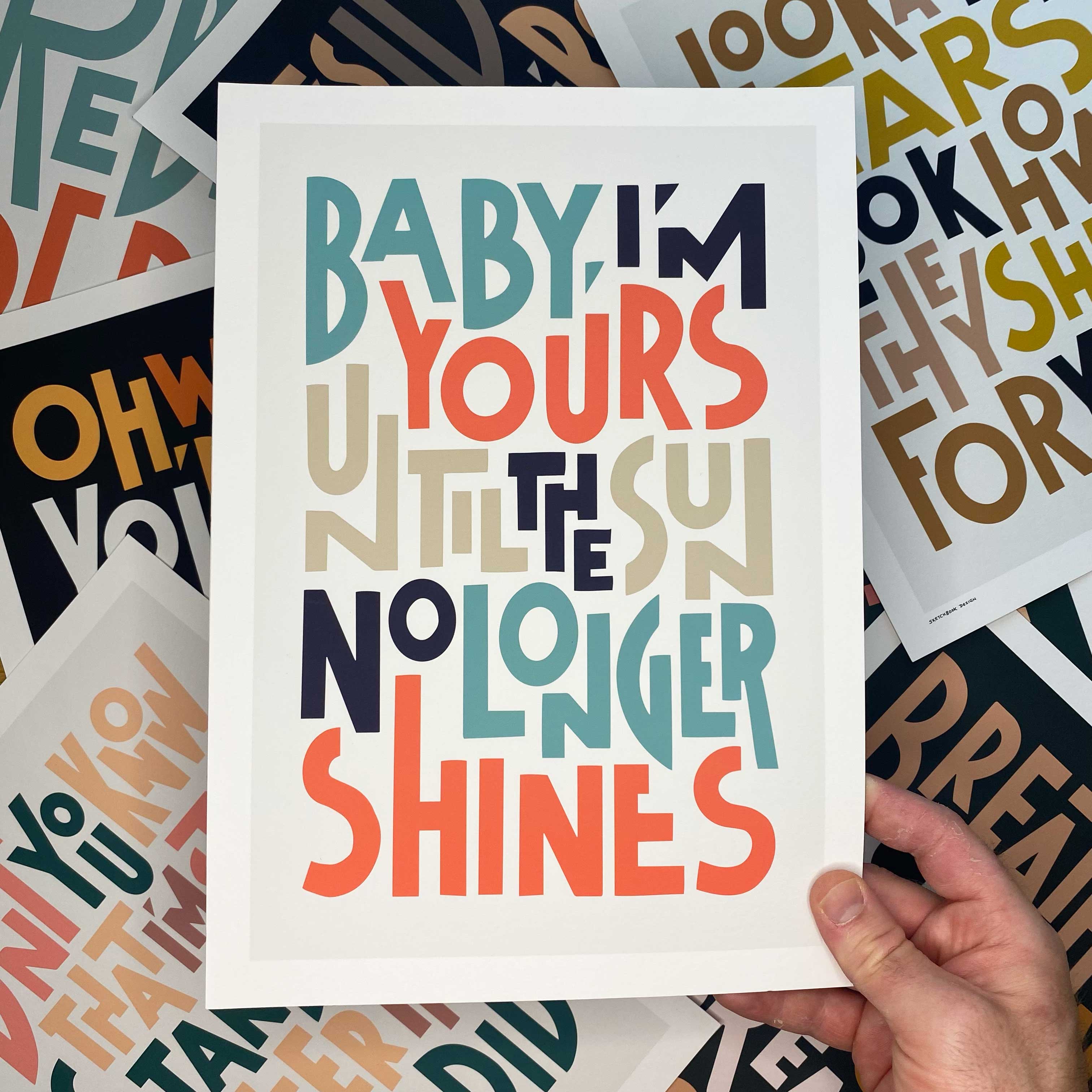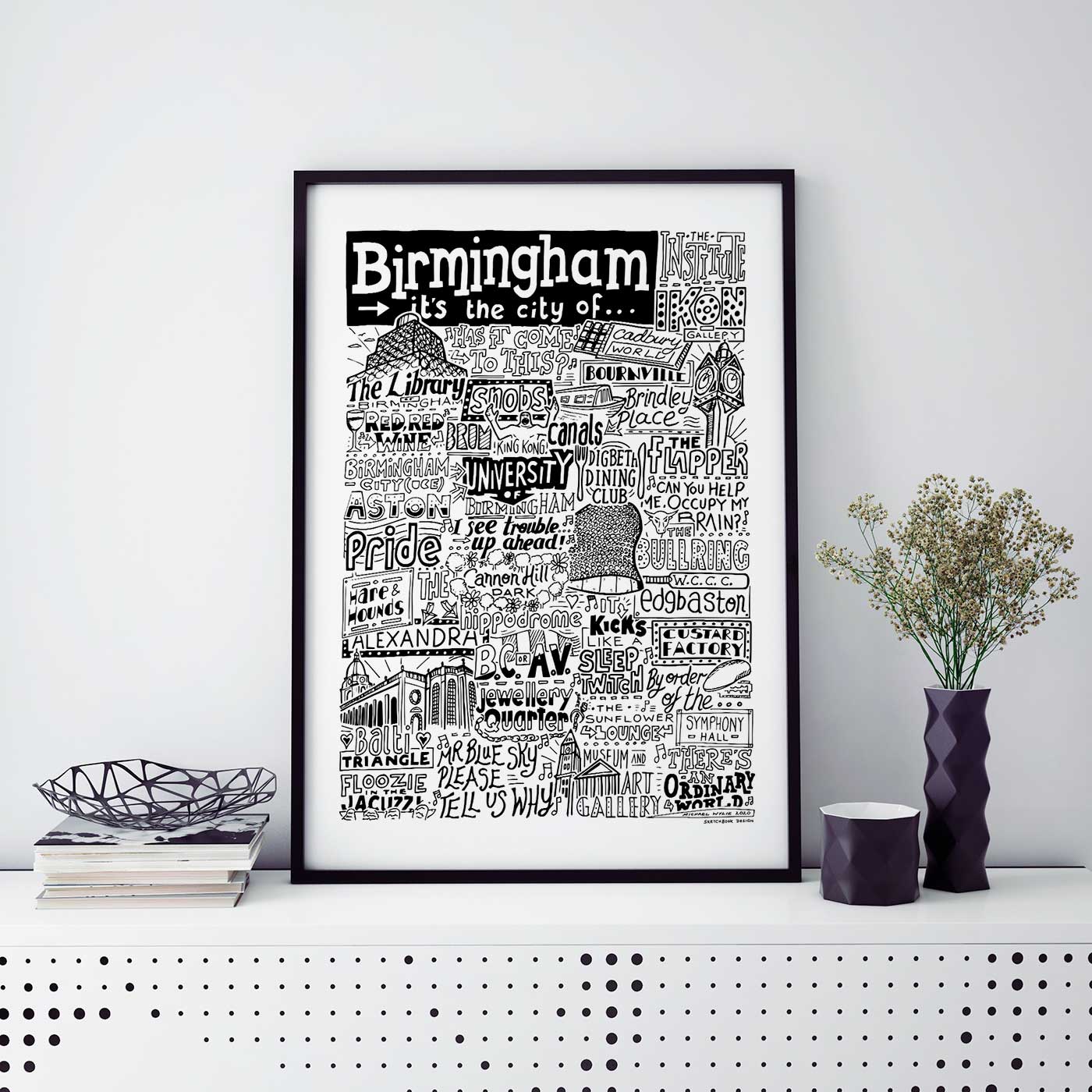Sketchbook Design blev grundlagt i Manchester i 2015 af kunstneren Michael Wylie. Hos Sketchbook Design stræber vi efter at producere engagerende kunstværker, der ofte er inspireret af populærkulturen. Vores kunst er skabt i hånden og omfavner de små særegenheder, der giver håndskabte kunstværker dets unikhed og personlighed. Mange af vores typografi- og illustrationsdesign opfordrer dig til at mindes og tilføje dine egne personlige minder til vores kunst. Vi er inspireret af mennesker, steder og de relationer, vi har til vores egen kultur, det være sig musik, sport eller vores hjemby.