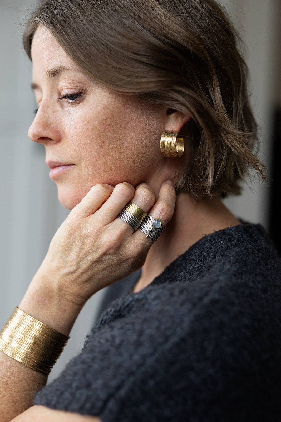 Håndlavet med en delikat kant. Austin Titus Studio er et smykkestudie baseret i Richmond, Virginia, centreret omkring en kærlighed til fint håndværk og en respekt for traditionelle metalarbejdsteknikker. Vores arbejde er påvirket af gamle verdens teksturer og detaljer, men altid med ønsket om at bevare en moderne kant. Hvert stykke er fremstillet af vores lille team ved hjælp af genanvendt sterlingsølv, karatguld og en række halvædelsten udvalgt for farve, karakter og endda ufuldkommenheder.