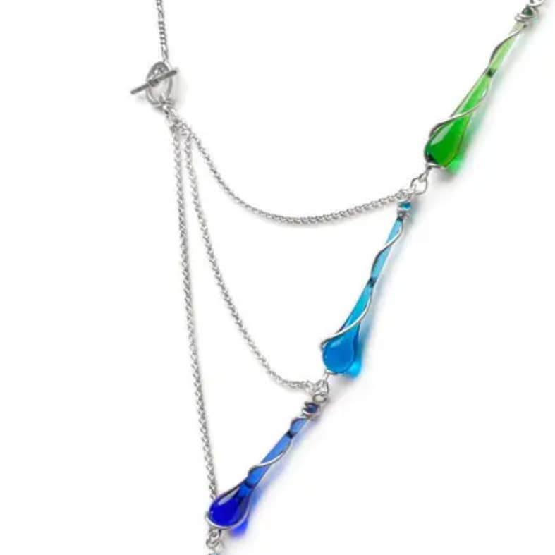 Miljøvenlige smykker af Sundrop smykker spænder fra lækkeri minimalistiske øreringe til store & fed håndværker smykker, men altid bevarer den levende tråd af afslappet elegance med en miljøvenlig twist. Ved hjælp af en kæmpe tre-fods forstørrelsesglas til at fokusere solskin, genbrugte flasker og farvet glas smeltes i strømmende dråber, sat i genanvendt Argentium sterlingsølv. Stock dine hylder med Californien solskin hele året rundt!