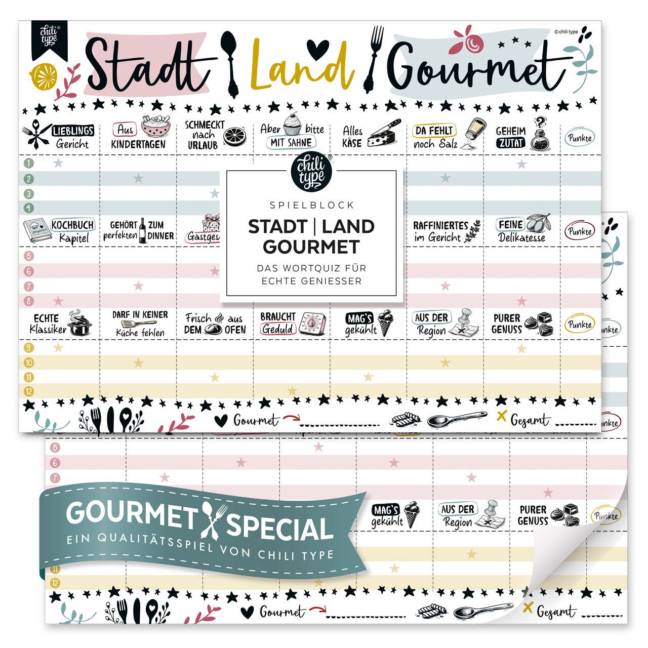 chili type står for munter og bæredygtigt design fra Hamburg. Og for hele hjertet, der går ind i hvert eneste af vores produkter. Vi producerer kærligt gaveartikler, sjove spil og boostere med godt humør til alle, der ønsker at gøre sig selv eller deres yndlingsperson lykkelige. Vi brænder især for det klassiske spil Stadt-Land-Fluss, hvoraf vi tilbyder en række unikke varianter. Plakatprint med magnetiske plakatstrimler, andre papirvarer og køleskabsmagneter fuldender vores nuværende portefølje. Og fordi vi ikke kun værdsætter smukt design, men også er ansvarlige for et intakt miljø, producerer vi vores gaveideer bæredygtigt i Tyskland med masser af hanseatisk livslyst. Vi elsker detailhandlere og har derfor taget en bevidst beslutning om ikke at sælge vores produkter via Amazon.