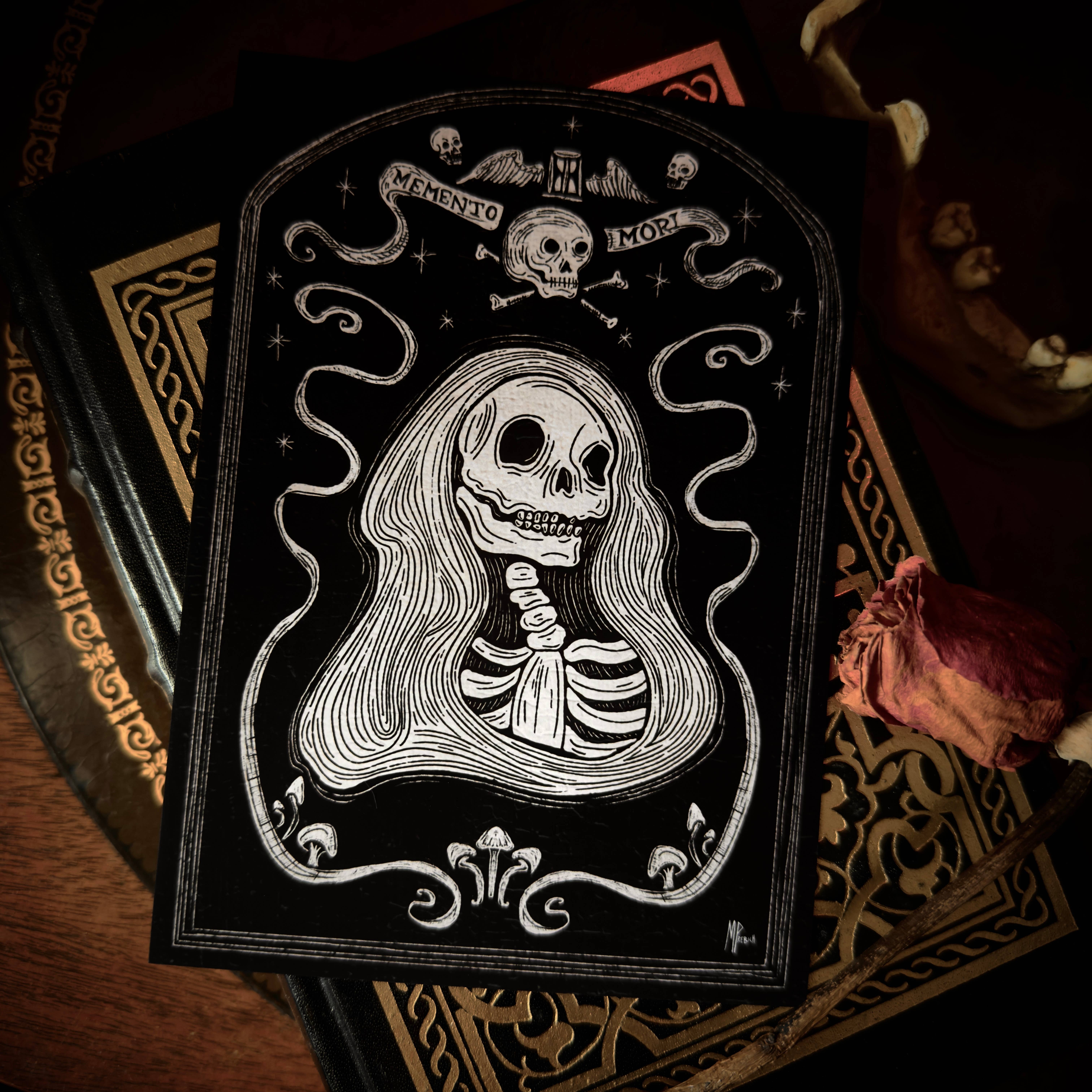 Michelle Prebich of Bat i Your Belfry har specialiseret sig i illustrationer, prints og bærbare tilbehør inspireret af historie, Halloween og popkultur! Hendes stil er makabre med et strejf af lunefuld! Hun er baseret i Corona, Californien.