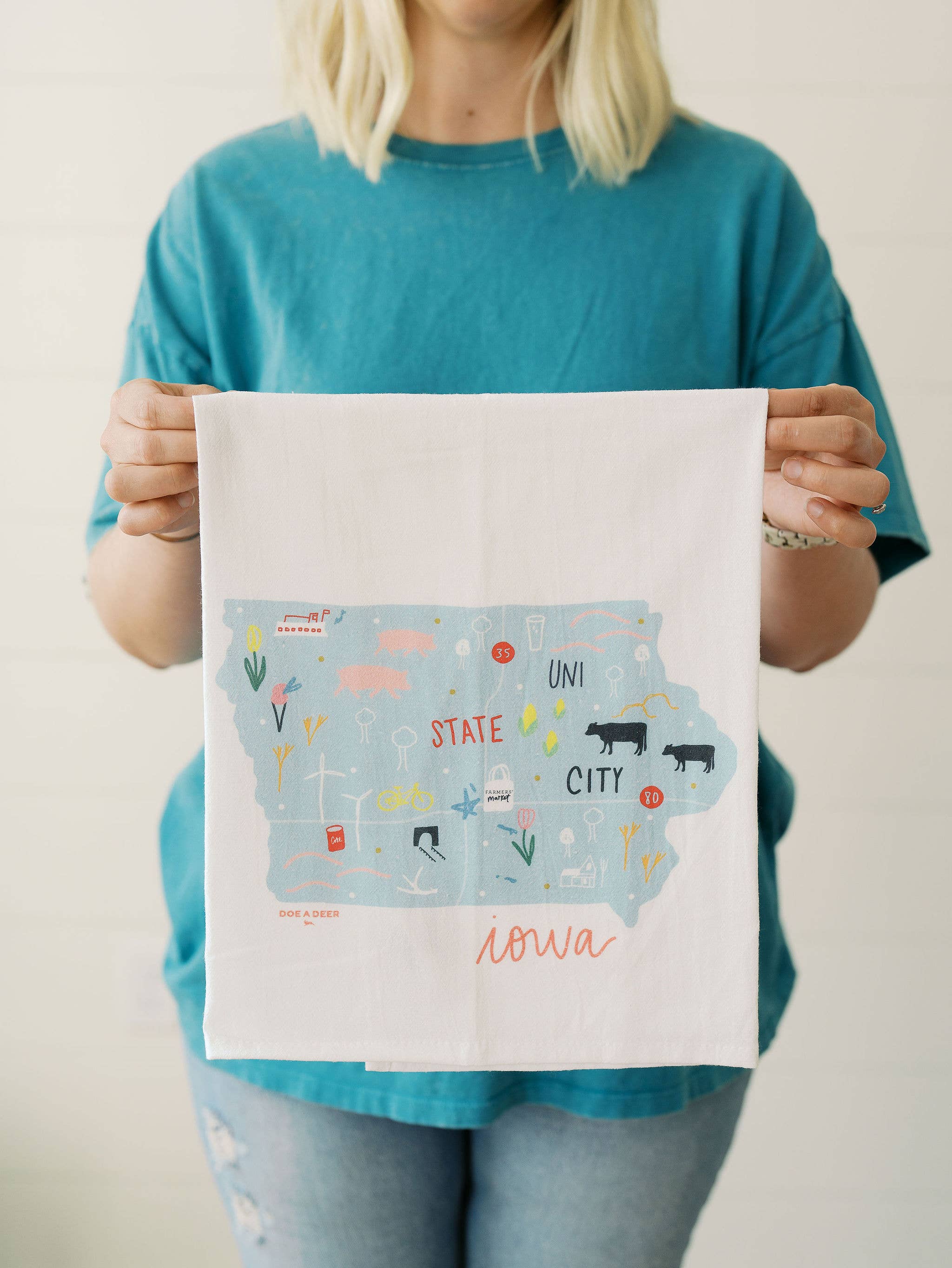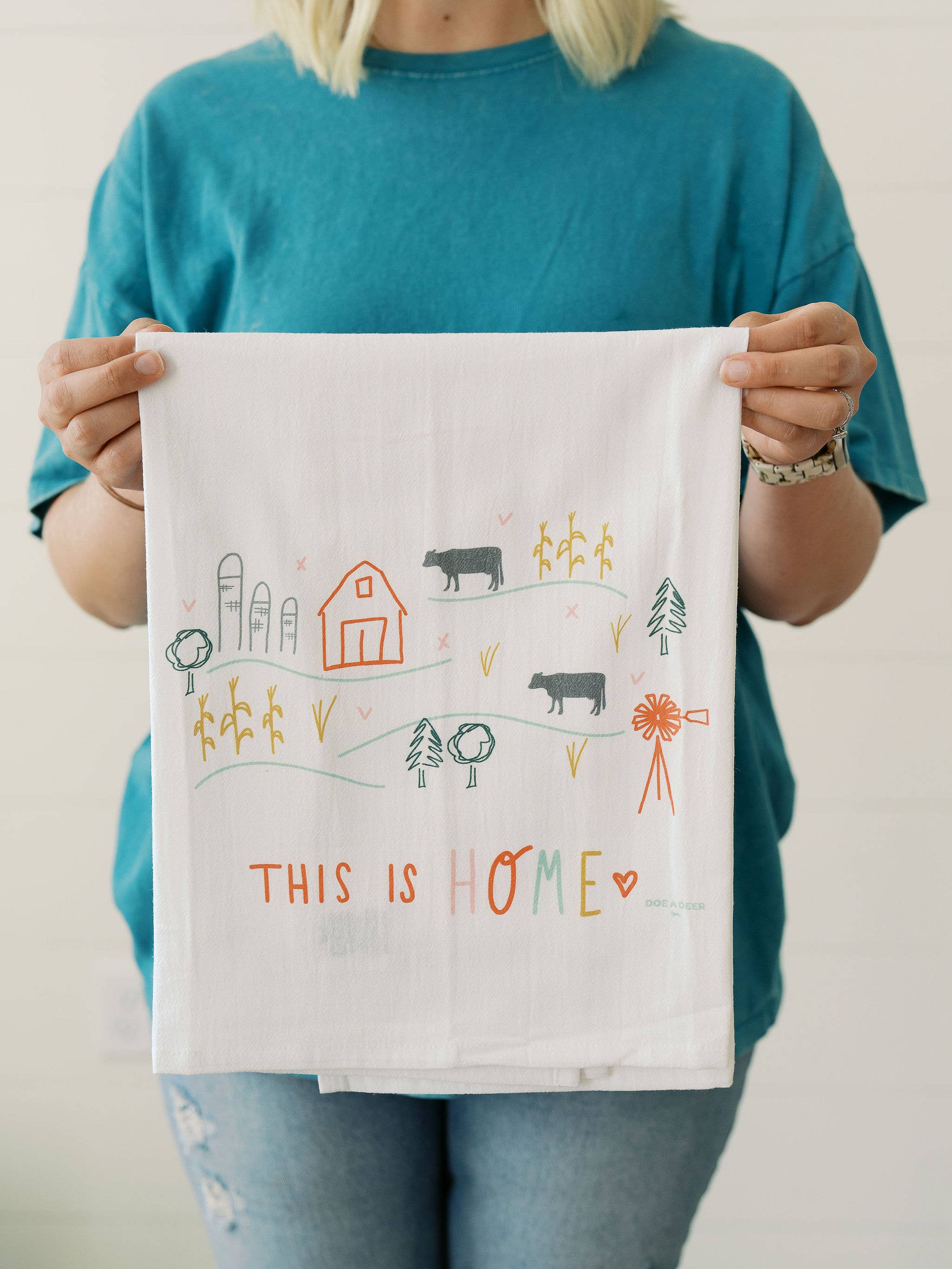 Ejer, Regan, skaber håndtegnede mel sækkehåndklæder og andre hjemme+køkkenartikler. Beliggende i en lille by i det centrale Iowa, er alle produktdesign omhyggeligt udført med lyse farver, et strejf af humor og et strejf af vintage flair. Doe A Deer brænder for at skabe unikke og overkommelige boligindretningsartikler, der bringer et smil til dit ansigt. Vores produkter transporteres i over 500 butikker over hele verden. Doe A Deer er blevet vist i Midwest Living, Flea Market Style & The Kitchn. Du kan altid forvente, at nye produkter frigiver sæsonbestemt og ankommer til dig i tide til dine sæsonbestemte opdateringer! Vi brænder for hurtig levering og god kundeservice.