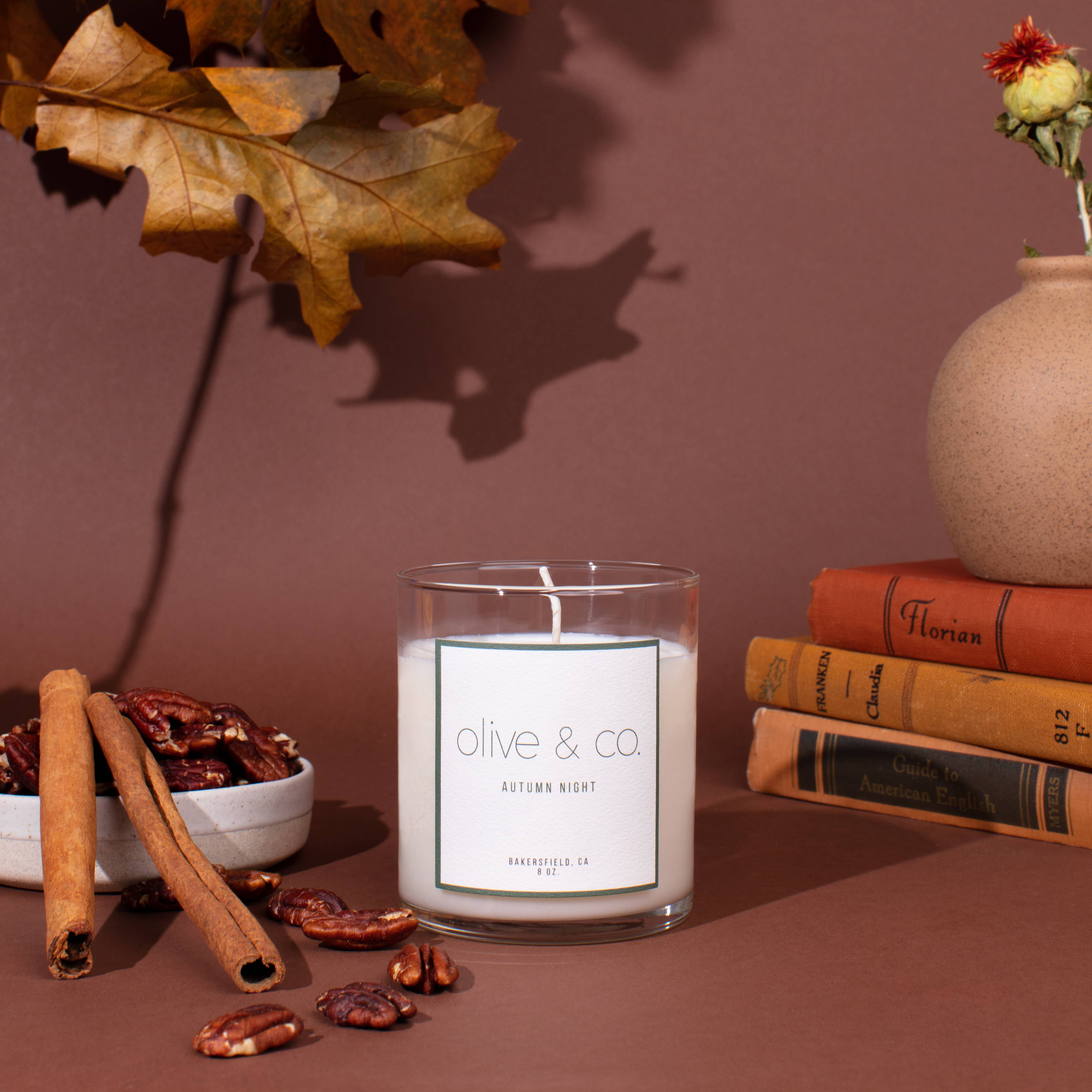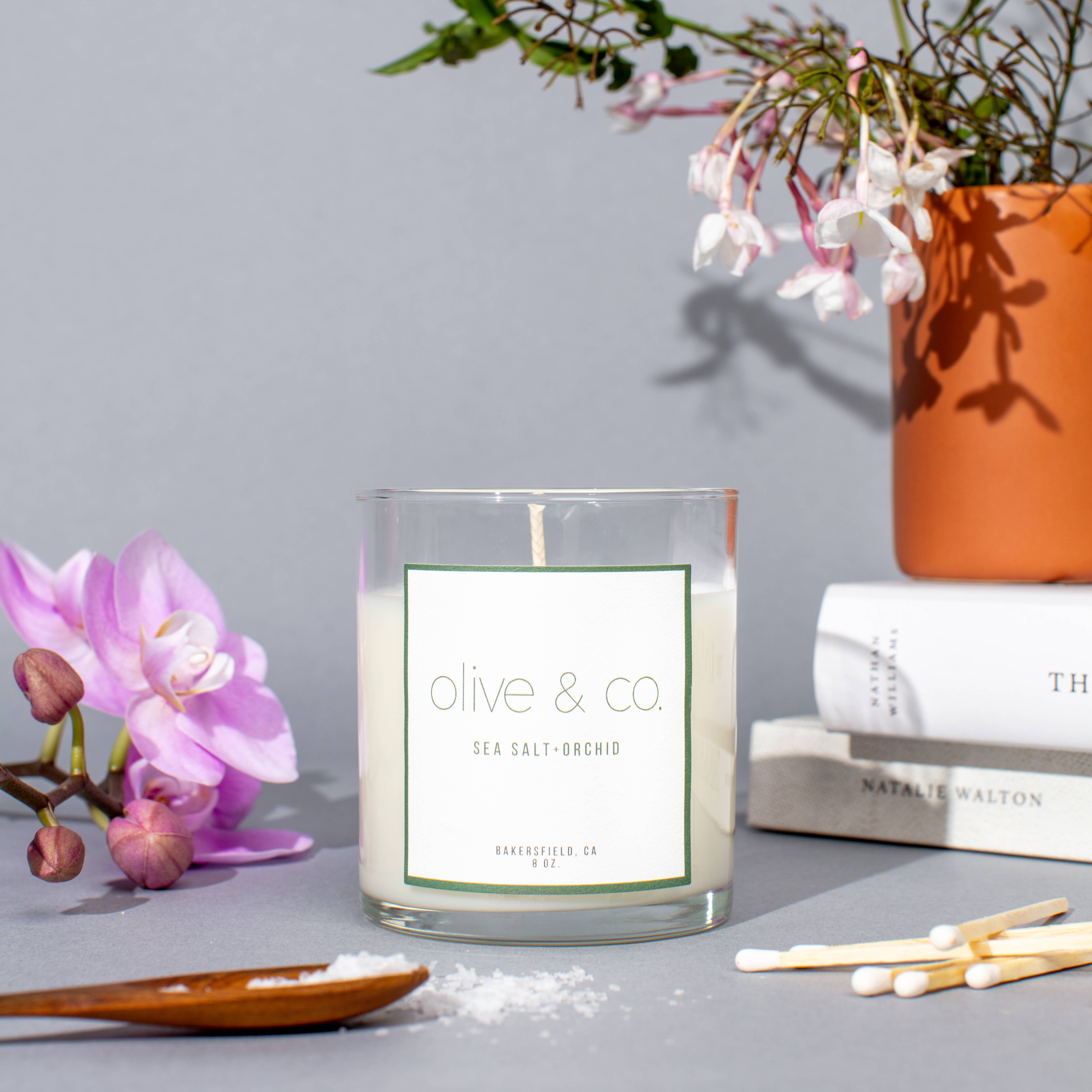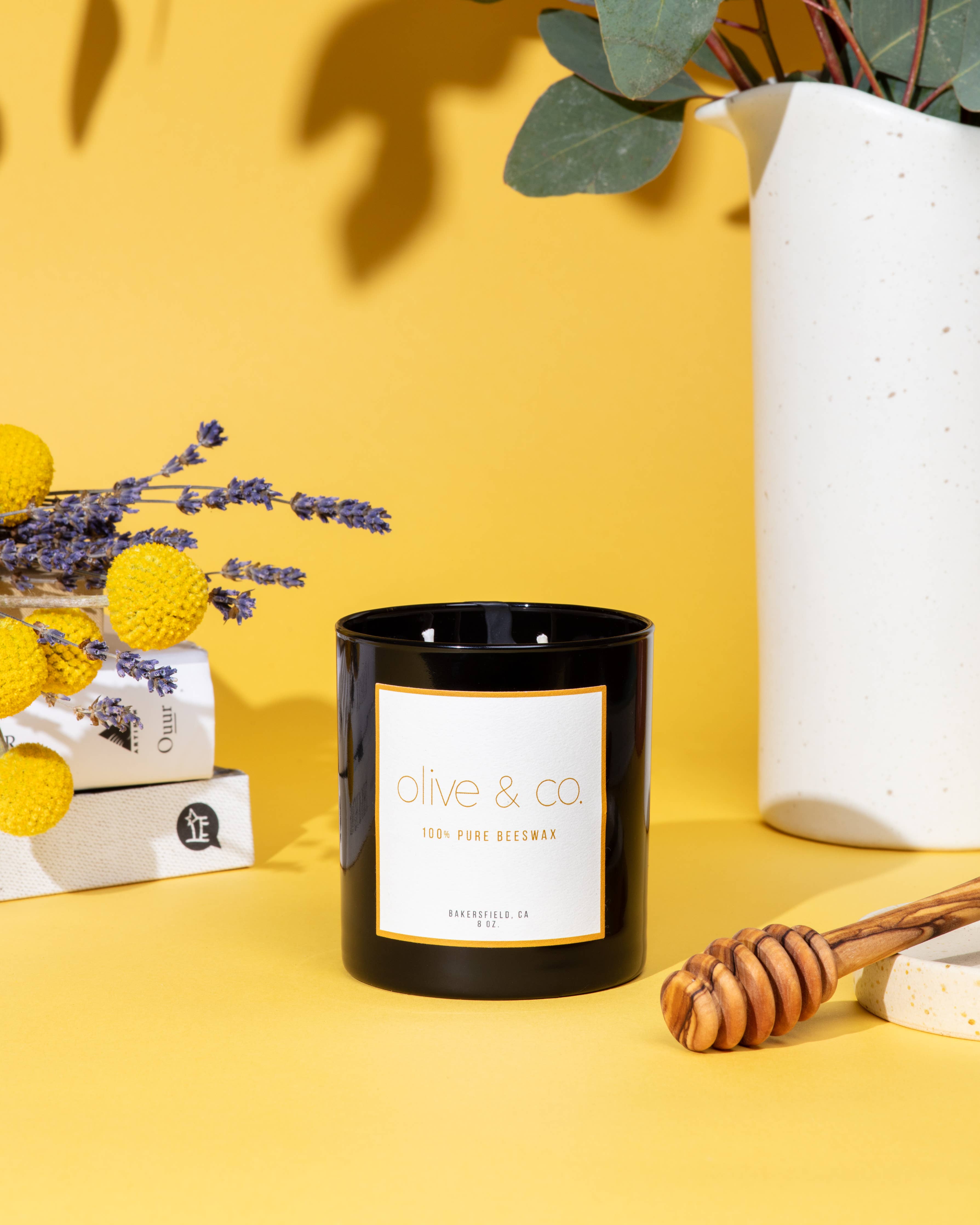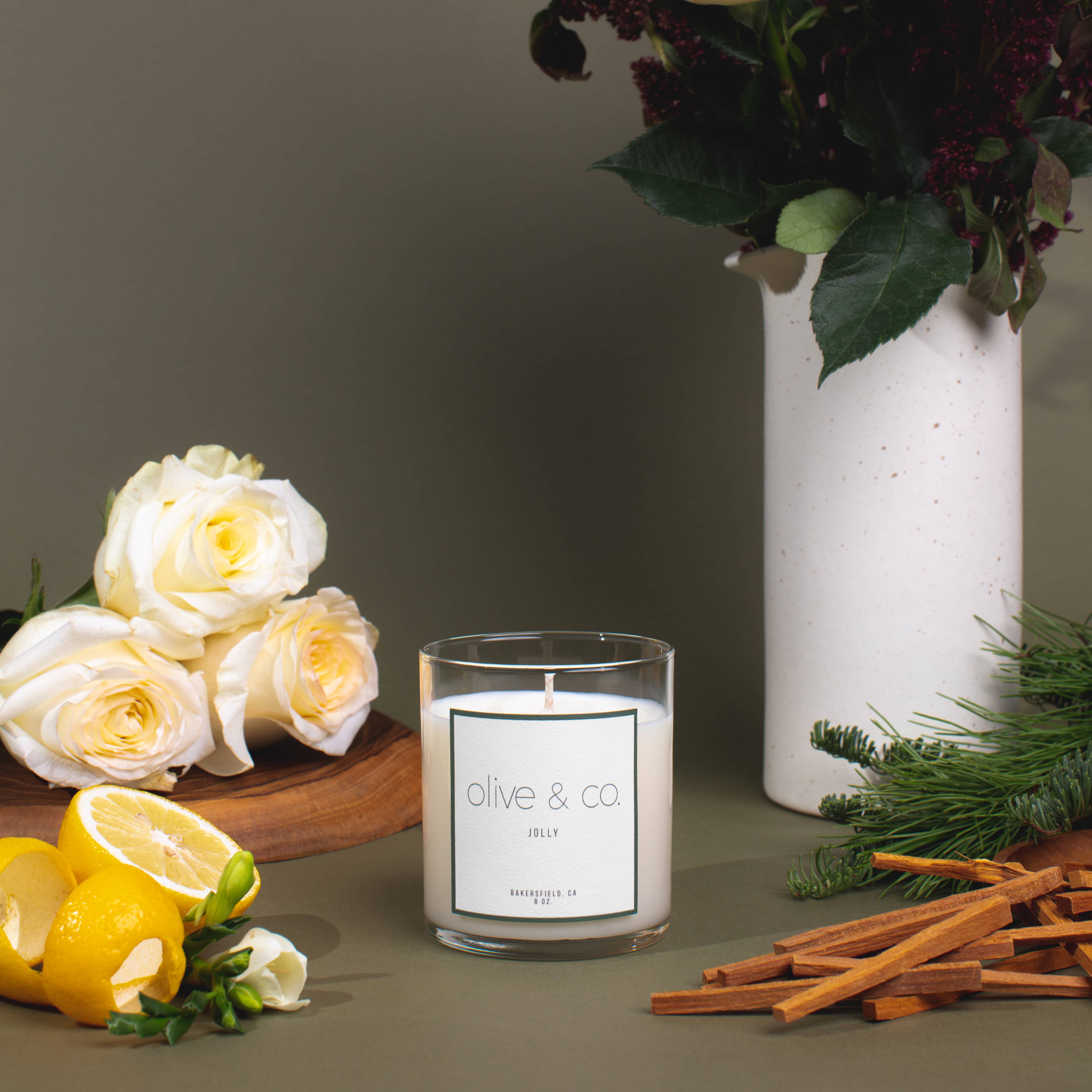 Olive og Co. Stearinlys har 100% sojavoks og 100% rene bivokslys, der er håndlavede, og fokuserer på at skabe et fredeligt miljø gennem vores håndkuraterede valg. Alle stearinlys er lavet omhyggeligt i små partier i Bakersfield, CA, for at bringe glæde ind i dit hjem.