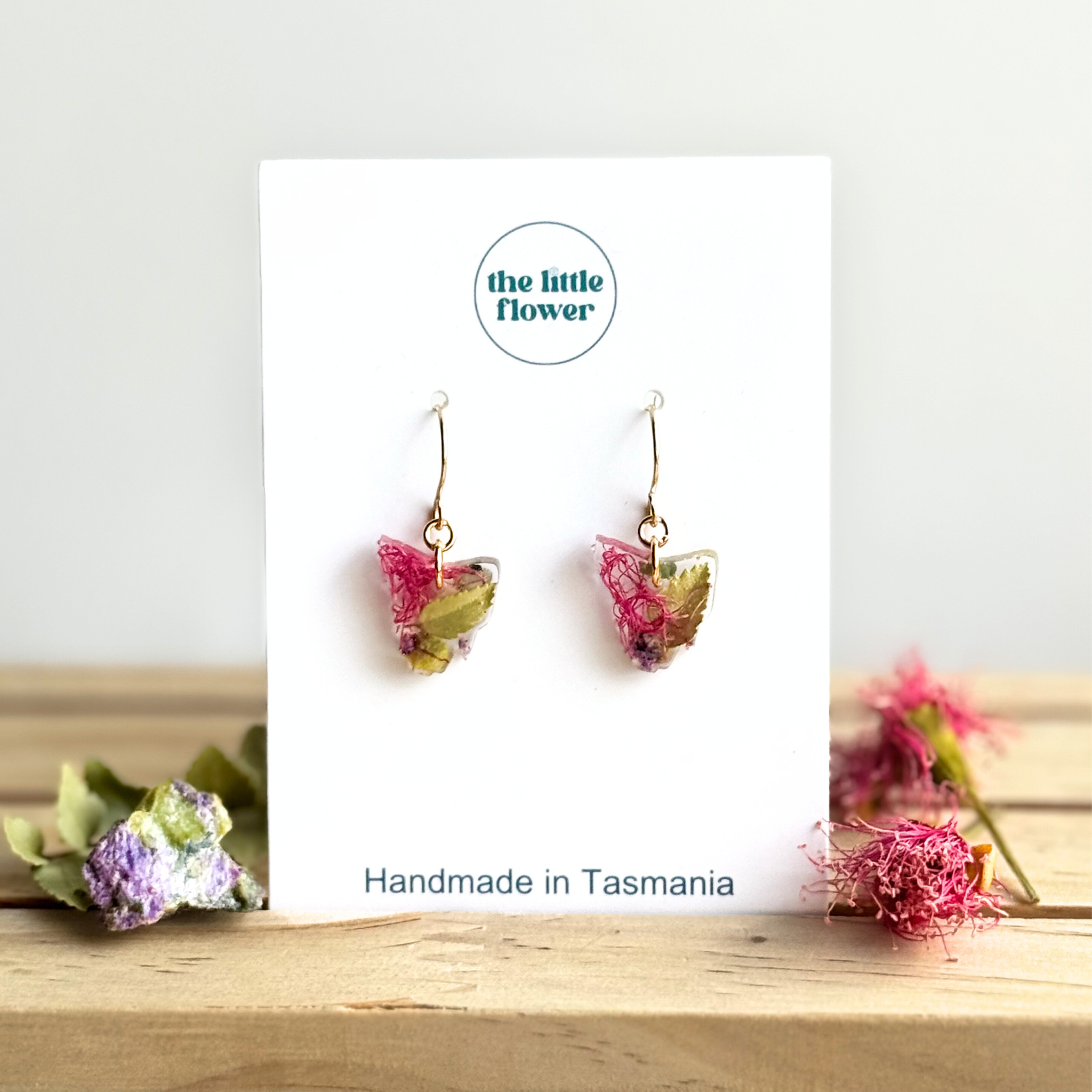 The Little Flower Handmade laver smukke indkapslede harpiksblomstersmykker ved hjælp af tasmanske dyrkede blomster, indfødte og flerårige blomster, inklusive wattle, tusindfryd og mere. Færdig i guld og sølv. Til dato har The Little Flower Handmade udmærket sig i at skabe meningsfulde stykker til bryllupper ved hjælp af brudebuketter, præsenteret ved designbegivenheder med over 10.000+ deltagere og fremvist i mange lokale virksomheder i hele Tasmanien. Vi håber, du vil værdsætte vores smykker lige så meget, som vi værdsatte design- og håndværksprocessen.
