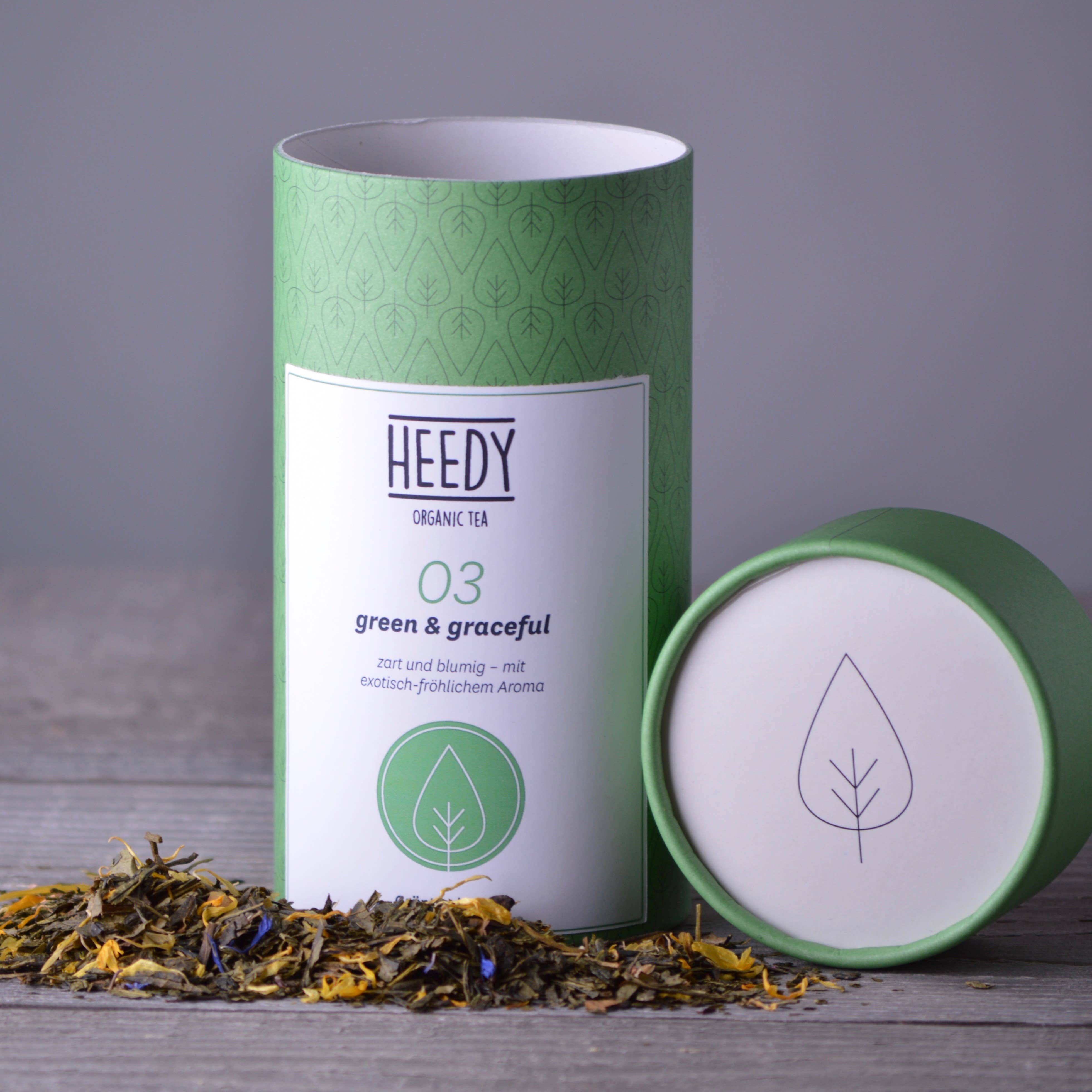 HEEDY skal gøre verden lidt bedre. Lyder det ynkeligt? Det er sandt. Men vi er overbeviste om, at alle kan yde et bidrag og stadig nyde livet og have det sjovt. For os har bæredygtighed intet at gøre med „at gøre uden“, men med en positiv og sund livsstil. Det er ikke altid let at implementere dette i hverdagen. Køb grøntsager i supermarkedet? Økologisk, selvfølgelig, men alt er pakket i plastik. Hvad nu? Der er noget galt med det! Det skal være muligt virkelig at tænke „bæredygtighed“ igennem! Vi begyndte at undersøge, overveje, planlægge, beregne. Og i slutningen af denne lange, kreative proces, var mærket HEEDY Organic Tea. Økologisk te af høj kvalitet. 21 sorter. Super lækker. Charmerende duft. Helt bæredygtigt. Emballagen er lavet af 100% papir. Med et godt logo og design. Nu hver morgen, når vi kommer til telageret, er vi glade for den store duft, der ledsager os på vores arbejdsdag.