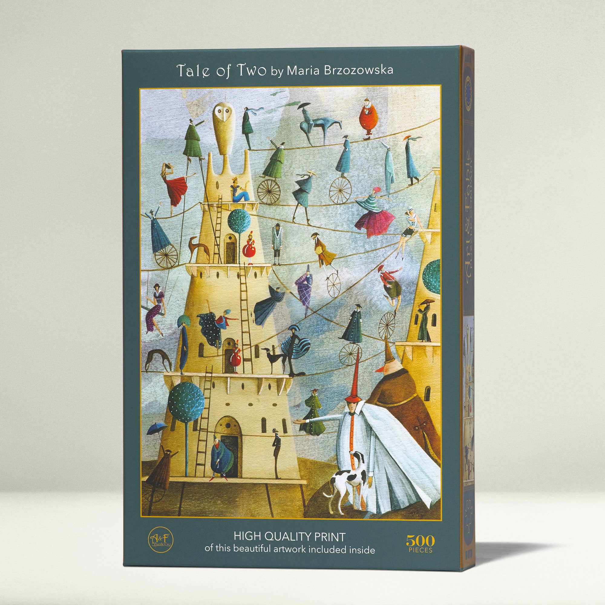 Art & Fable Puzzle Company blev skabt med et formål. Vores arbejde begyndte allerede før vores virksomhed blev fuldt ud realiseret, med det formål at udvide publikum af hårdtarbejdende kunstnere og gøre opmærksom på de smukke illustrationer og historier om glemte fabler. Vores tilgang til at nå dette mål var at skabe puslespil af førsteklasses kvalitet og samtidig bidrage til velgørenhed. Vores licenserede kunstnere er fulde af lidenskab og fantasi og leverer forskellige og moderne billeder til vores gåder. Fra vores unikke udvalg kan du vælge mellem gåder, der er smukke, dybt meningsfulde og bare sjove! Vi er taknemmelige for vores partnerskab med disse kunstnere, der giver os mulighed for at bringe kunst ind i dit hjem, på dit bord og i dine hænder! Kunsten i kombination med vores karakteristiske Velvet-Touch-puslespilflade er hjørnestenen i vores produkt og mission: at støtte velgørenhedsorganisationer og kunstnere, samtidig med at du får en dejlig og usædvanligt engagerende puslespiloplevelse! „Jeg købte et af dine gåder bare for at tjekke kvaliteten til min museumsbutik. Stykkerne har en stor tykkelse, overfladen er behagelig, og jeg elsker, at du inkluderede en plastikpose OG et staffeli til at holde kassedækslet. Bravo!“ LG, MMoca „Art & Fable-gåder er af højeste kvalitet. Farven er levende og rig, og den bløde fornemmelse af hvert stykke er fantastisk. Det er det bedste puslespil, vi nogensinde har lavet, og vi laver en masse gåder!“ B.M.T., Maler, Opfinder