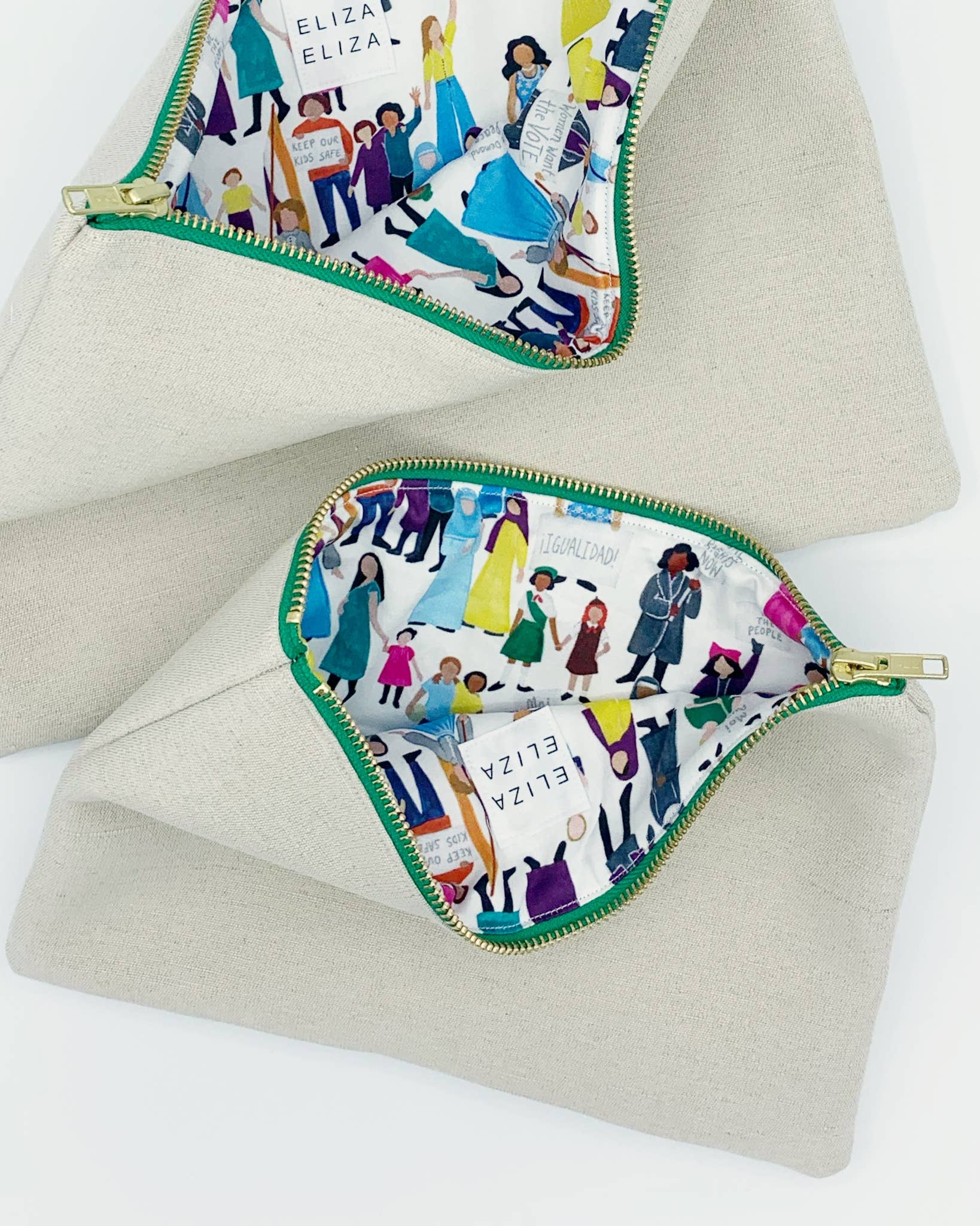 Mit navn er Elizabeth, og jeg begyndte at lave tasker, fordi jeg havde brug for en måde at organisere min håndtaske med mine og børnenes ting. Jeg kunne ikke finde, hvad jeg ønskede, og befandt mig bag en symaskine, der fremstiller en selv. Inden længe lavede jeg dem som gaver til venner og familie. Men jeg vidste, at disse nyttige poser kunne være så meget mere... de kunne hjælpe med at fortælle en historie, dele ideer og sprede bevidstheden. De kunne bære din sag! Mellem at samarbejde med velgørende organisationer, lytte til de spørgsmål, der betyder noget for dig og fremme budskaber, der betyder noget for mig, fortsætter mine samlinger med at vokse og åbne op for diskussioner om de vigtige emner, vi interesserer os for. Ved at støtte Eliza Eliza foretager De en forandring og øger bevidstheden om disse årsager, og jeg takker Dem for at lade mig blive en del af det. Hvorfor hamp? Oprindeligt ønskede jeg at lave mine tasker fra linned, og selv kiggede på forskellige polstring tekstiler, før min forskning førte mig til at opdage hamp og verden af økologiske stoffer åbnet op for mig. Hamp er en bæredygtig afgrøde på grund af ikke at behøve så meget vand eller pesticider som bomuld. Ud over at være svampedræbende og antibakterielt er dette stof slidstærkt, mens det blødgøres over tid, hvilket giver smukke og unikke egenskaber til din Eliza Eliza taske, jo mere bruger du det.