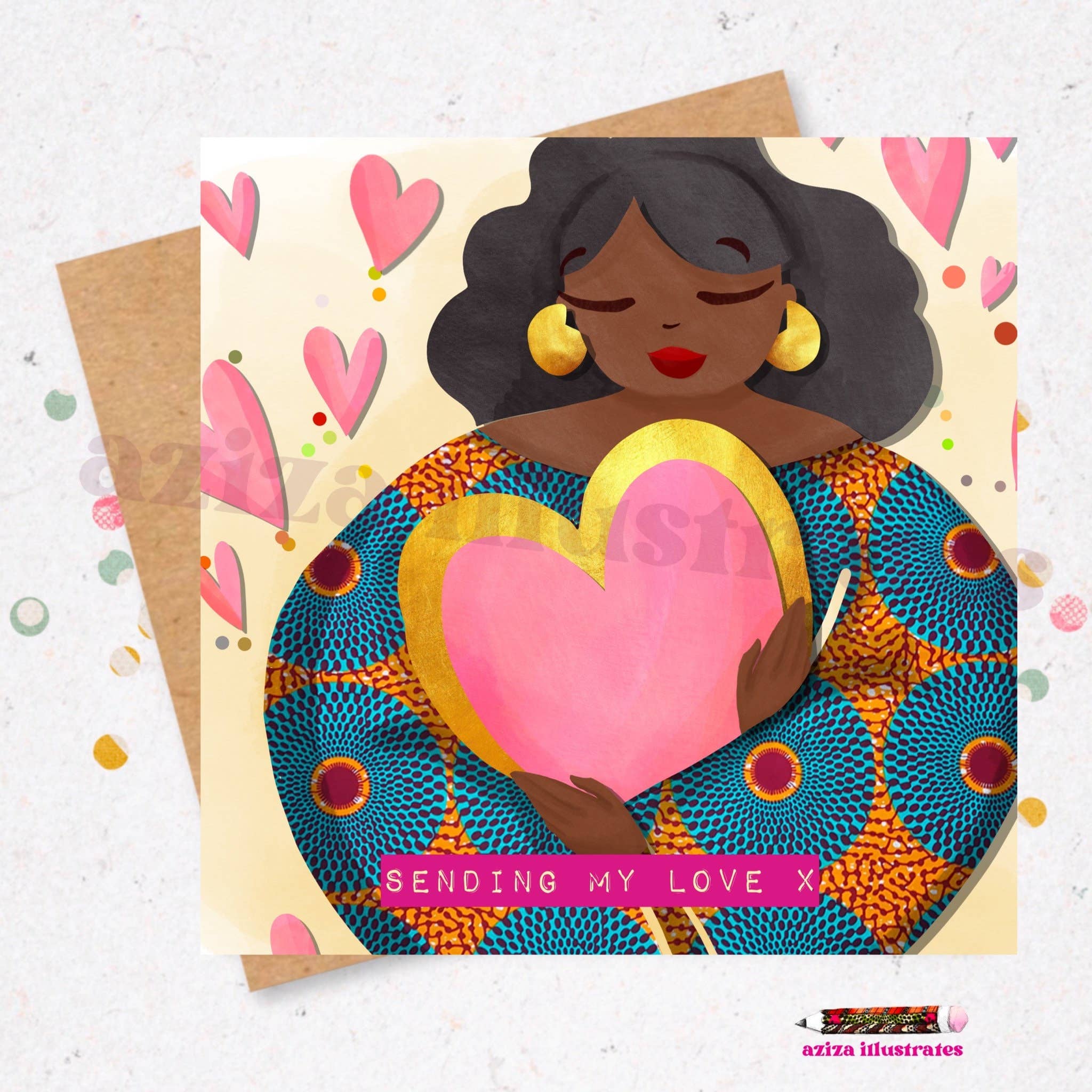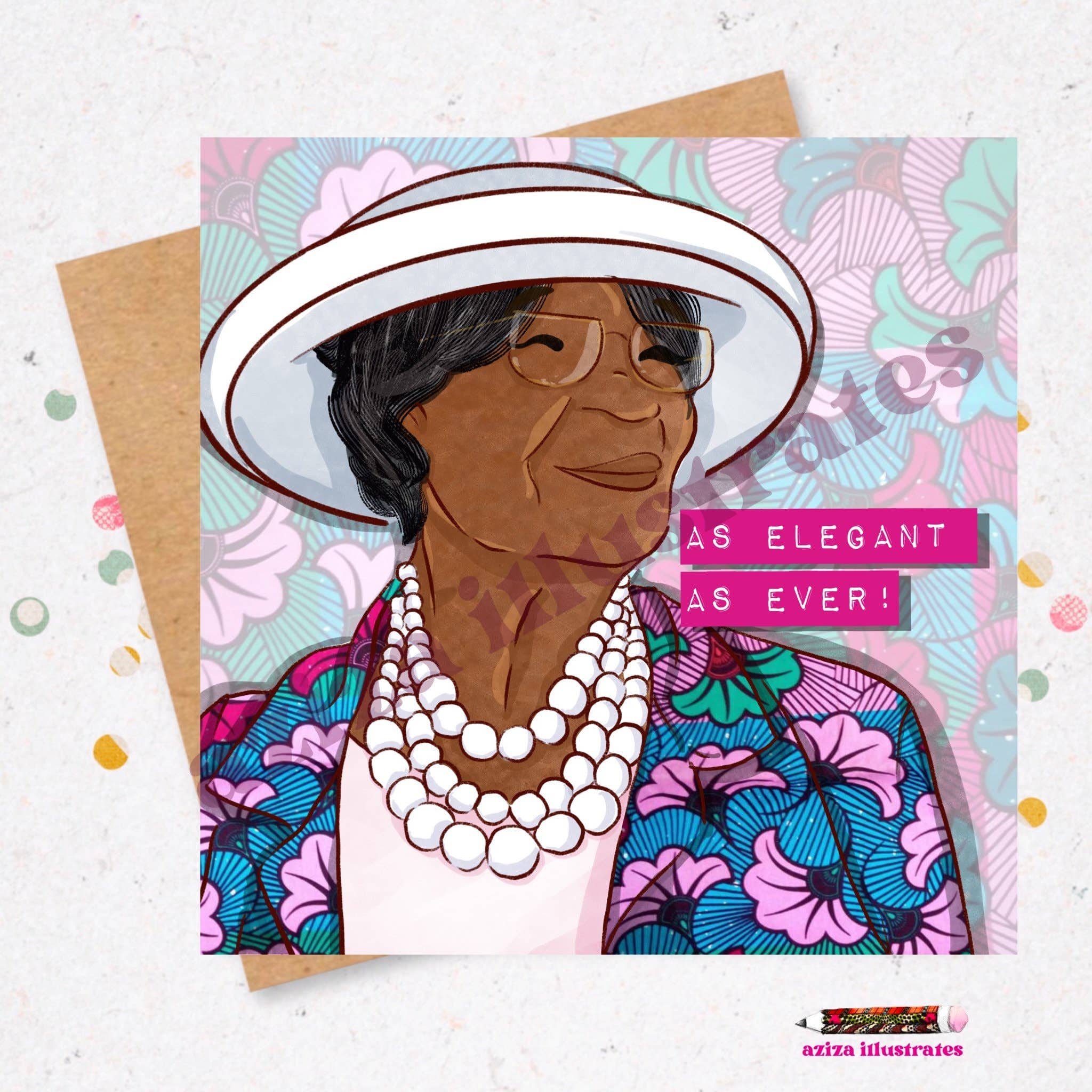 Aziza Illustris blev skabt ud fra nødvendigheden af repræsentation af sorte mennesker på lykønskningskort til en fantastisk pris. Kigger rundt, Jeg havde svært ved at finde kort med afrikanske og caribiske figurer, som også havde en original stil. Min familie bestilte ofte kort fra udlandet eller blev selektive i de kort, de valgte. Så Aziza Illustris blev født. Jeg begyndte at lave hjemmelavede lykønskningskort til familie og venner i 2011 og fandt min passion. At se glæden på deres ansigter ved modtagelse af et skræddersyet kort var uforglemmeligt. Hver var original og lavet med modtageren i tankerne. Navnet Aziza betyder værdsat, respekteret, dyrebar og elsket, og jeg håber, du vil føle dig sådan, når du giver eller modtager en vare fra Aziza Illustrator.