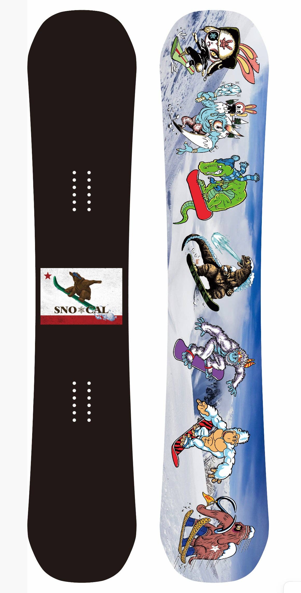 Vi er et snemærke i Californien - ja, det gør sne i Californien! Vi har sjove snefigurer, illustreret af Steve Nazar og Kurono, der hjælper os med at fremme det sjove sneliv i Cali.