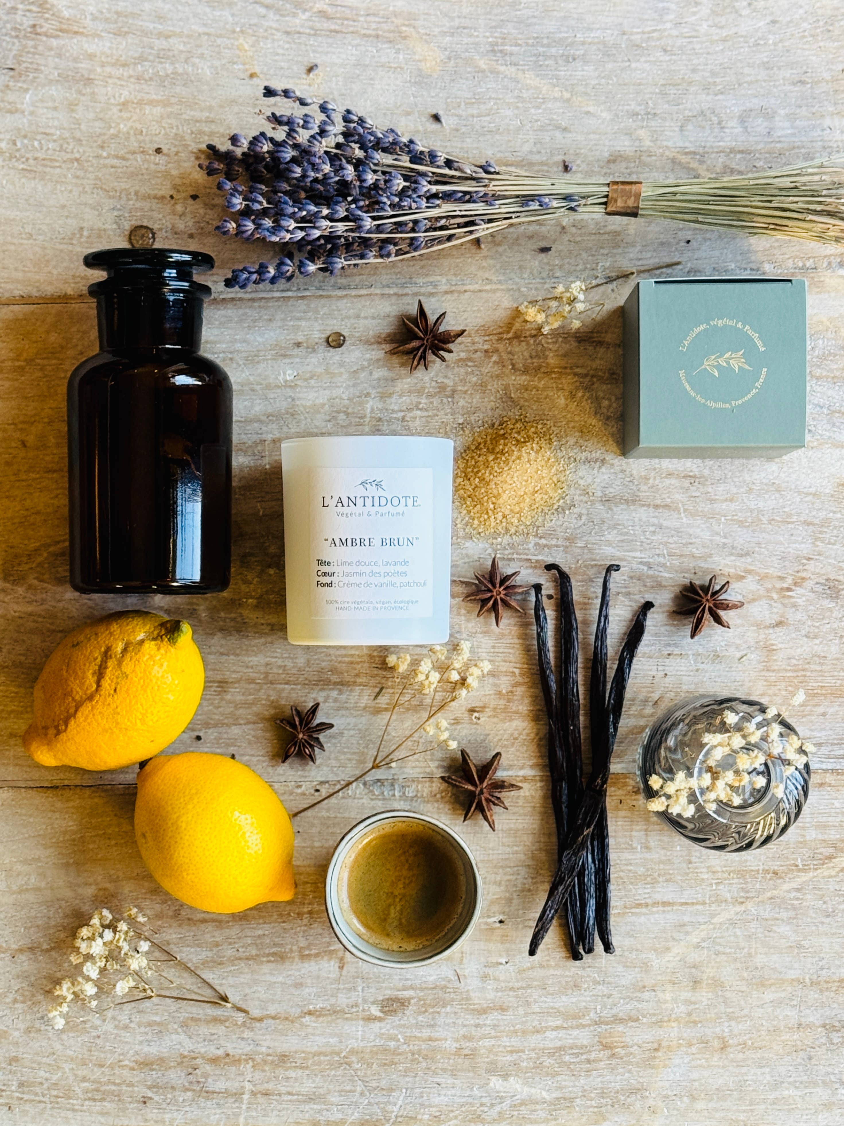 Antidote® er et mærke af naturlige duftlys, der stimulerer humør. Håndlavet af 100% vegetabilsk voks, vores stearinlys, som „Spiritual Antidotes“, fejrer de små og store glæder i livet, og er inspireret af den omgivende natur og livets sødme i Provence. Hver måned donerer L'Antidote® 5% af omsætningen i „Les Antidotes“ -samlingen til videnskabelig forskning mod kræft ved G. Roussy Institute.