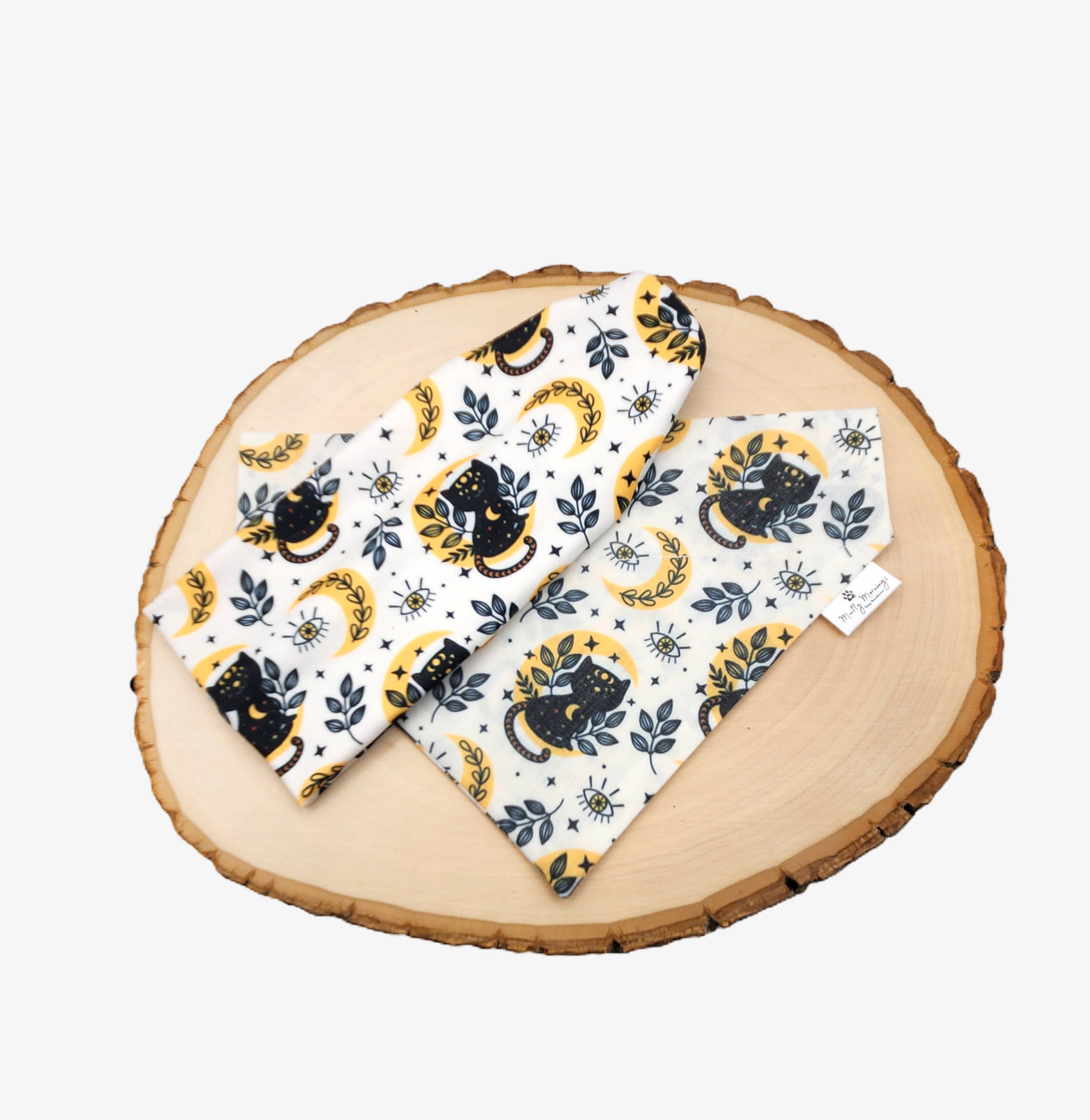 Hos Mutty Mornings tror vi på, at hvert pelsklædt familiemedlem fortjener at vise sig frem med stil! Vores håndlavede bandanaer er designet til at sikre en sikker, behagelig pasform — ingen binding, ingen besvær — bare nem, luftig mode, der glider lige på deres halsbånd. Uanset om dine kæledyr er legesyge, sofistikerede eller et sted derimellem, har vi den perfekte bandana til at matche deres stil!
