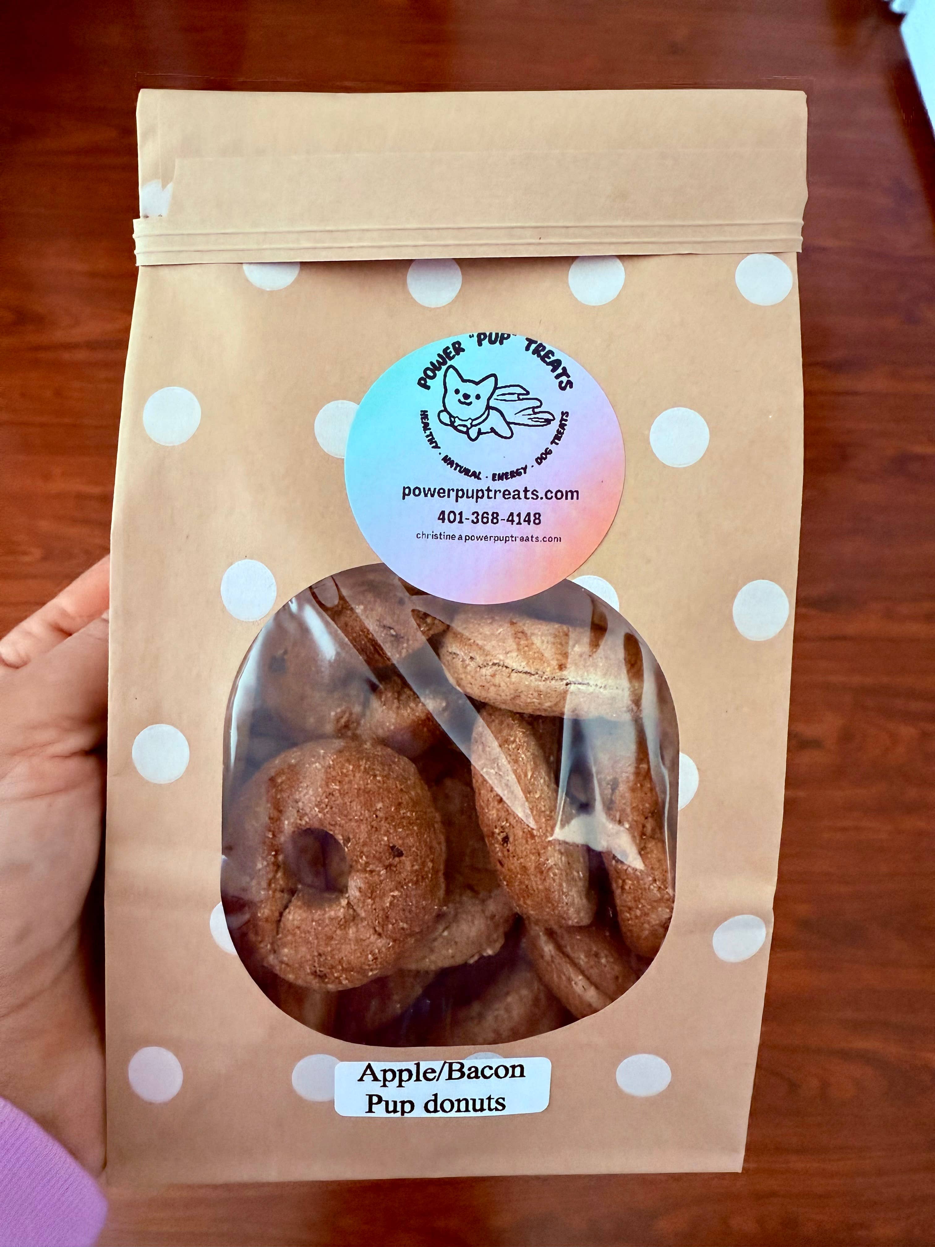 Power Pup Treats er en kvindeejet virksomhed, siden 2022 fremstiller jeg alle naturlige konserveringsfrie hundegodbidder, der er lige så gavnlige som de er lækre. Vi har specialiseret os i hundekager, donuts, kornfrie og veganske muligheder og prioriterer lokalt fremskaffede ingredienser til vores godbidder. Vores godbidder er ikke kun søde på ydersiden, vores godbidder er fyldt med sundhedsmæssige fordele med ingredienser som gurkemeje, græskar, søde kartofler og æbler for blot at nævne nogle få. Min mission er at gøre hunde og deres forældre glade ved at tilbyde helt naturlige hundegodbidder, der smager lækkert. Jeg ved, at der er mange steder derude at købe hundegodbidder fra, men hvis du leder efter en række små batcher hundegodbidder, herunder kornfri, vegansk og gourmet, håber jeg, du vil overveje os. Du kan være sikker på, at hver batch er lavet fra bunden og med masser og masser af kærlighed!