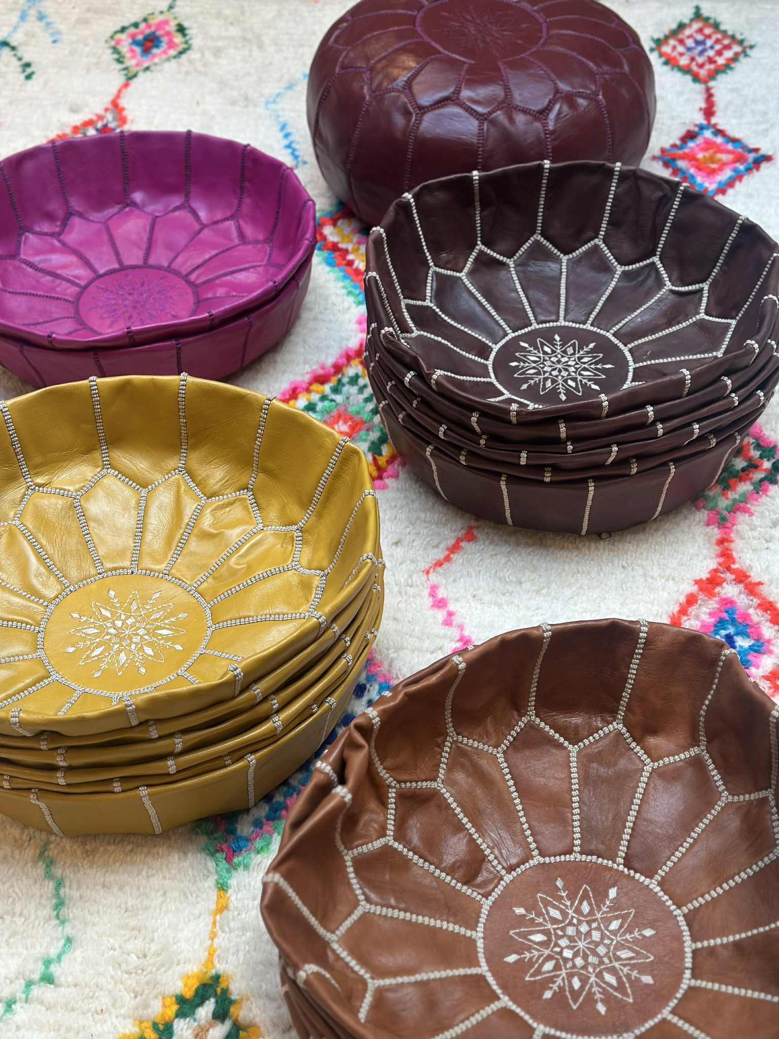SOUK in the CITY er et kærlighedsbrev til Marokko — en fejring af farver, håndværk og forbindelse. Født af mange års rejser og dybt rodfæstede venskaber over hele landet, kuraterer mit brand håndlavede skatte, der fortæller historier. Tænk solkyssede berbertæpper, livlige kurve, upcyclede puder fulde af karakter og glædelige accessories, der bringer sjæl til ethvert rum. Jeg har brugt over 20 år på at finde kilder direkte på stedet — fra den summende criée berbère i Marrakech til stille bjerglandsbyer, hvor kvinder stadig væver efter hukommelsen. Hvert stykke er enten håndplukket vintage eller lavet i tæt samarbejde med lokale håndværkere, ved hjælp af forfædres teknikker og altid under fair trade-forhold. Vores signatur: en dristig blanding af arv og leg. Som vores upcyclede pude- og gulvpudeserie — genfortolket fra vintage tæpper, kilims og vævede tæpper, kærligt håndlavet i vores Marrakech atelier af betroede maâlems. Du vil finde stykker, der er perfekt uperfekte, fulde af tekstur, varme og autenticitet. Ingen forbipasserende trends her — bare tidløs skønhed, skabt til at blive levet med. SOUK in the CITY er for dem, der elsker en god historie, et strejf af farve og den stille magi af håndværk, der er gået i arv gennem generationer — nu klar til at bringe glæde til din butik, studie eller konceptområde.