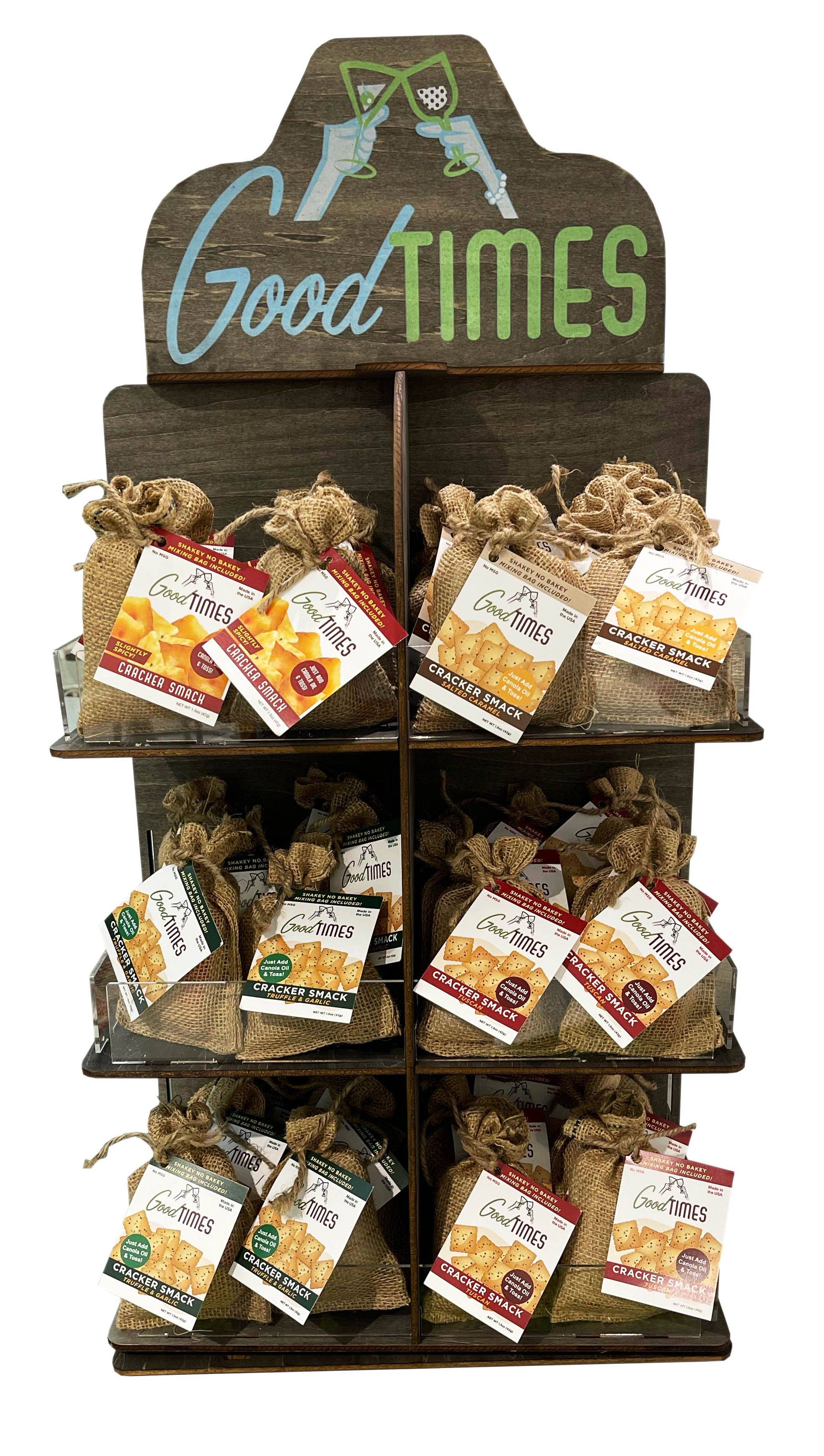 Som detailhandlere selv ved vi, at det handler om kundeoplevelsen, mens du handler. „Erfaringsmæssig“ Detail er så vigtigt! Vores produkter bruges i detailhandlen som et værktøj til at underholde kunder såvel som et fantastisk produkt at sælge! Serveres på damer nætter, Vin gåture, Sene nætter, eller på en lørdag i et par timer vil din butik skille sig ud som stedet at shoppe. Det er enkelheden at forberede ikke kun vores Frozen Slushie Mixes, men også vores Cracker Smacks®, der har gjort os til en favorit blandt hundreder af detailhandlere som dig selv. Good Times er en serie af Natural Frozen Cocktail Slushie Mixes, der ikke kræver is eller en blender og Natural Cracker Spice blandinger, der er MSG Free og inkluderer blandeposen. Vi er et produkt designet af detailhandlere til detailhandlere, der er på udkig efter en innovativ, sjov, on-trend, og meget rentabel gave/gourmet linje... Alle elsker snacks, cocktails, og gode tider!