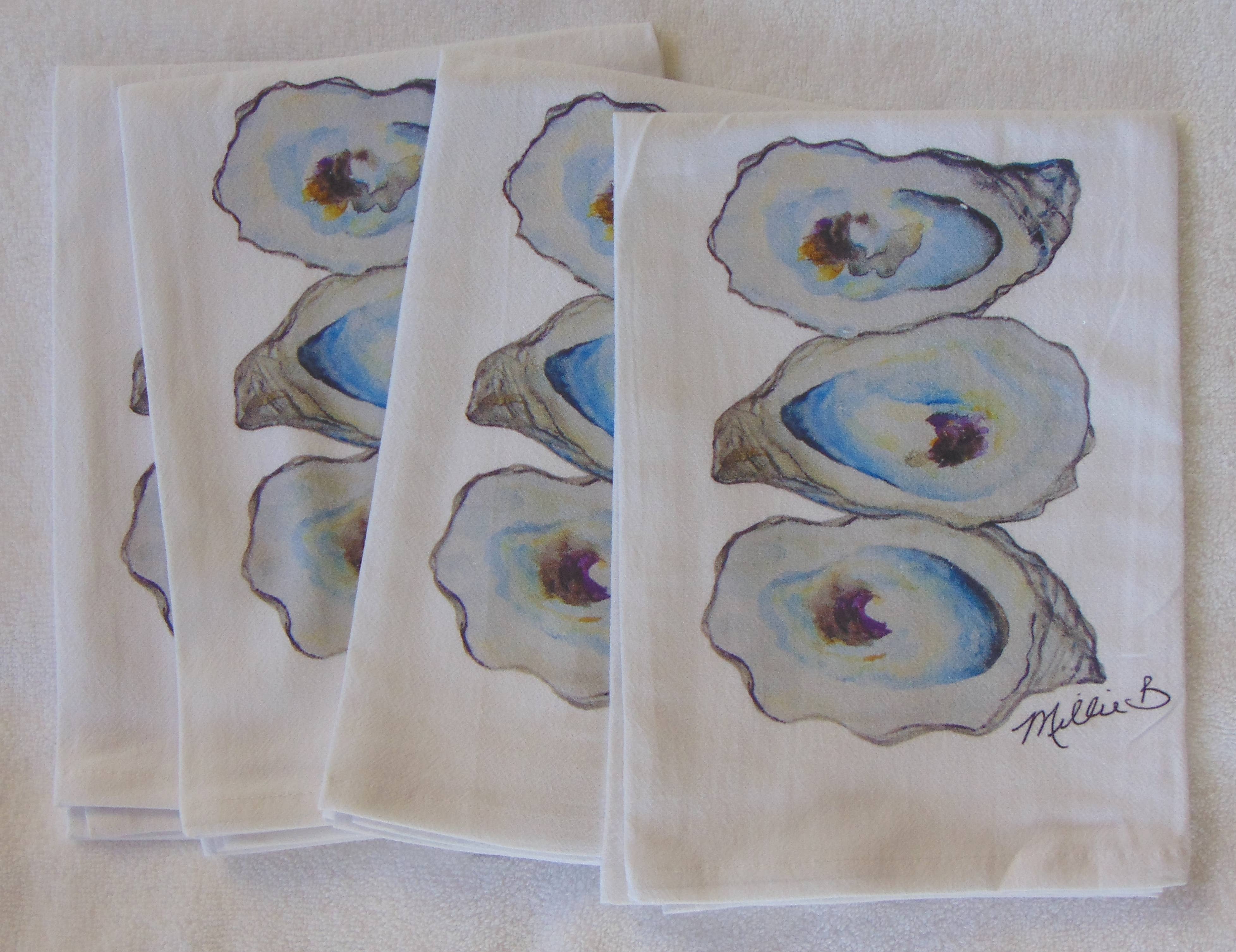 Kunstner og designer, Millie Burke, har designet en serie af limited edition akvarel print på hendes 100% bomuld mel sæk håndklæder og middag servietter, der kan bruges som gæst håndklæder samt. Hendes præmie og høj kvalitet håndklæder er gode til gæster, men også: i en brødkurv, drapering over boligtilbehør og bordplader. Hendes håndklæder er unikt din og lavet på bestilling!