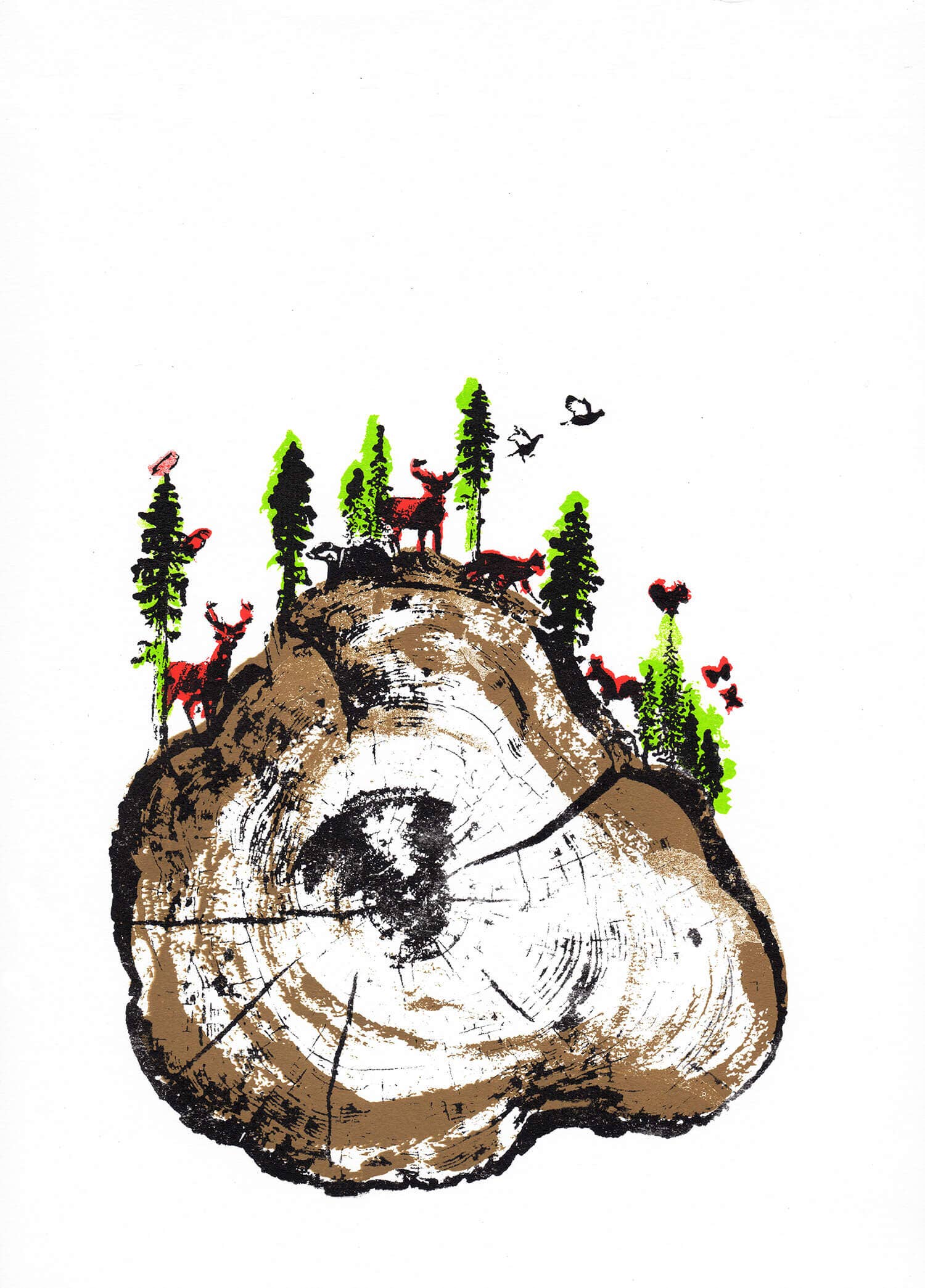 Katies skærmtrykte illustrationer afspejler hendes nydelse for den naturlige verden, fremkalder omtanke og humor. De originale silketryk er skabt ud fra Katies mest populære designs og udviklet som et begrænset print. Hver enkelt er et unikt, håndlavet kunstværk. Individuelt trykt, signeret og nummereret af kunstneren. Katie designer og skaber sine konceptuelle illustrationer fra sit studie beliggende ved foden af Lake Windermere i Lake District, ved hjælp af traditionelle fotografiske og silketrykteknikker.