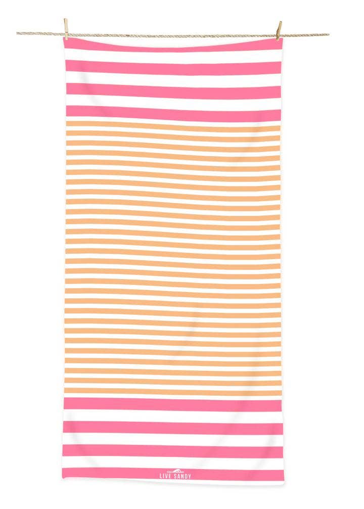 Hvis du kendte Sandy, kendte du hende som en generøs giver, en godhjertet lærer og en kærlig kone og mor. Hun havde en uovertruffen iver for livet og elskede at tilbringe dovne sommerdage med venner og familie, der blødgjorde solen, køle af i vandet og cruising på båden. Sandys lyse liv blev forkortet efter en tragisk bilulykke i 2002. Da hendes familie arbejdede gennem tabet, lovede de altid at finde glæden i rejsen. Med dette i tankerne blev Live Sandy skabt af hendes søn, Clay, og hans familie, der ønskede at ære hendes hukommelse med en samling af kvalitetsprodukter, som hun ville have elsket at bruge på sjove og afslappende dage ved søen, poolen eller stranden. I klasseværelset, Sandy overøst kærlighed på hver eneste elev og ønskede, at alle af dem skulle have en lige mulighed for at lykkes. Live Sandy donerer en del af salget til at finansiere et college stipendium i hendes navn for at fortsætte Sandys arv af at investere i børns uddannelse. LIVET ER KORT... LEVENDE SANDET