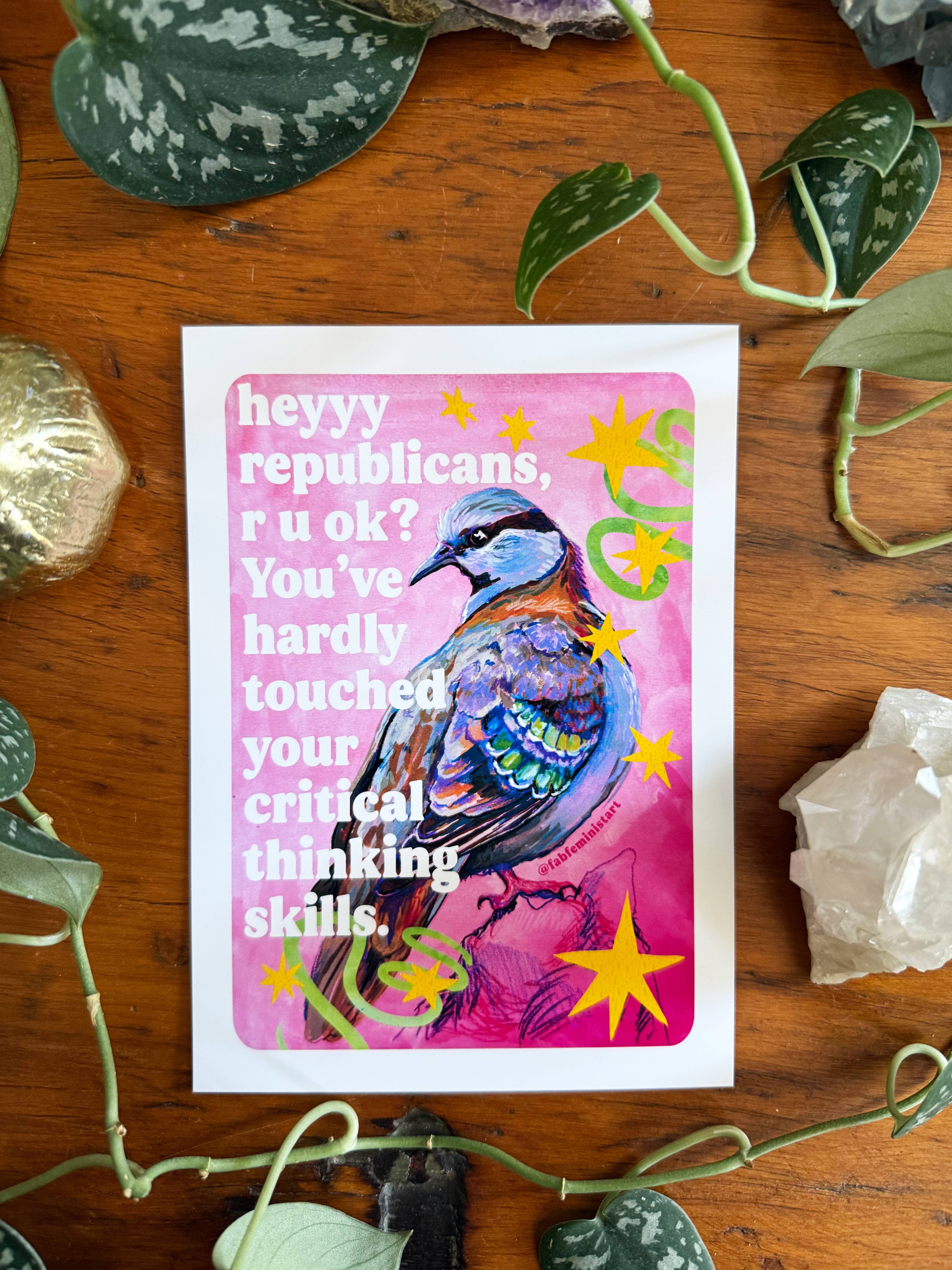 Fabelagtigt feministisk blev grundlagt af kunstneren Callie Garp & ligger i Pittsford, New York (lige uden for Rochester). Callie er en queer kvindelig feministisk iværksætter, investeret i at skabe etiske varer, der fejrer og bekræfter mennesker, der ellers marginaliseres i deres dagligdag. Hver enkelt Fab feministisk genstand har et originalt kunstværk, der er designet til at inspirere andre til at være venligere for sig selv og verden. Fabelagtigt feministisk handler om at skabe kunst for social og øko retfærdighed. Med min æstetik inspireret af naturen og min kærlighed til havearbejde håber jeg at bringe glæde ind i folks hjem, og at skabe en følelse af tilhørsforhold og forbindelse. Vi arbejder alle på at blive vores bedste selv, og især elsker os selv for præcis hvem vi er. Jeg håber, at min kunst hjælper andre på den rejse. Dette kreative liv kan være meget travlt og udfordrende, men magien sker i det øjeblik, hvor nogen opfanger et fabelagtigt feministisk print og siger: „Tak så meget - du aner ikke, hvor meget jeg havde brug for at blive mindet om dette i dag. '