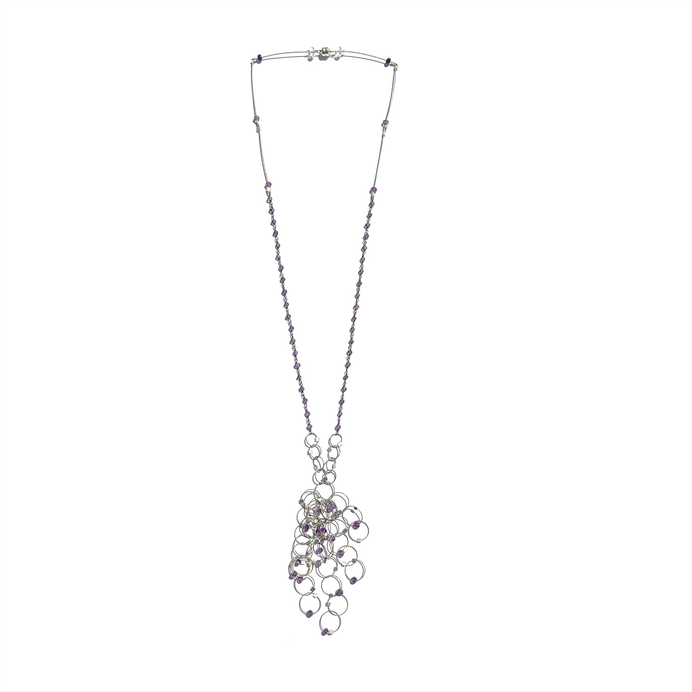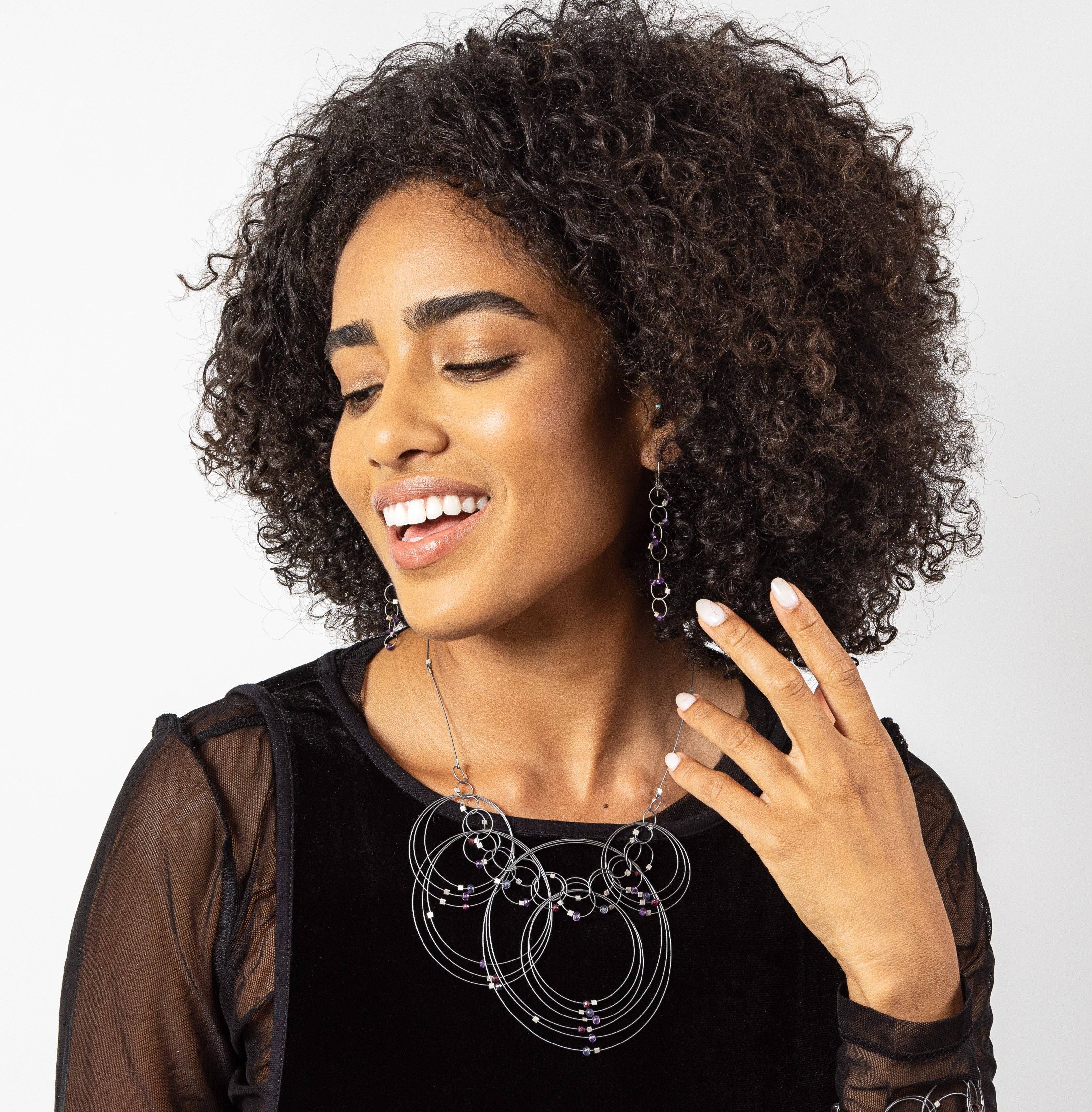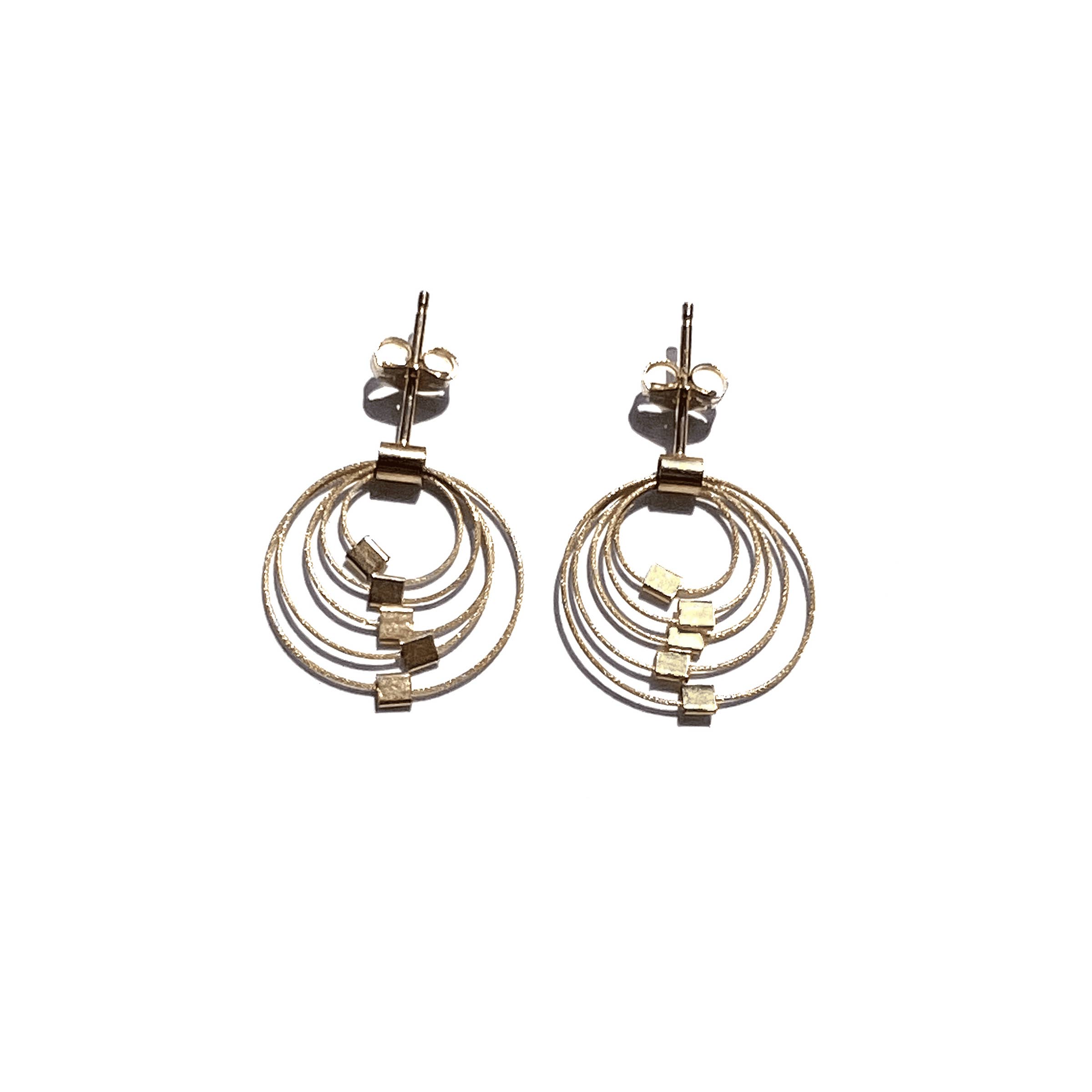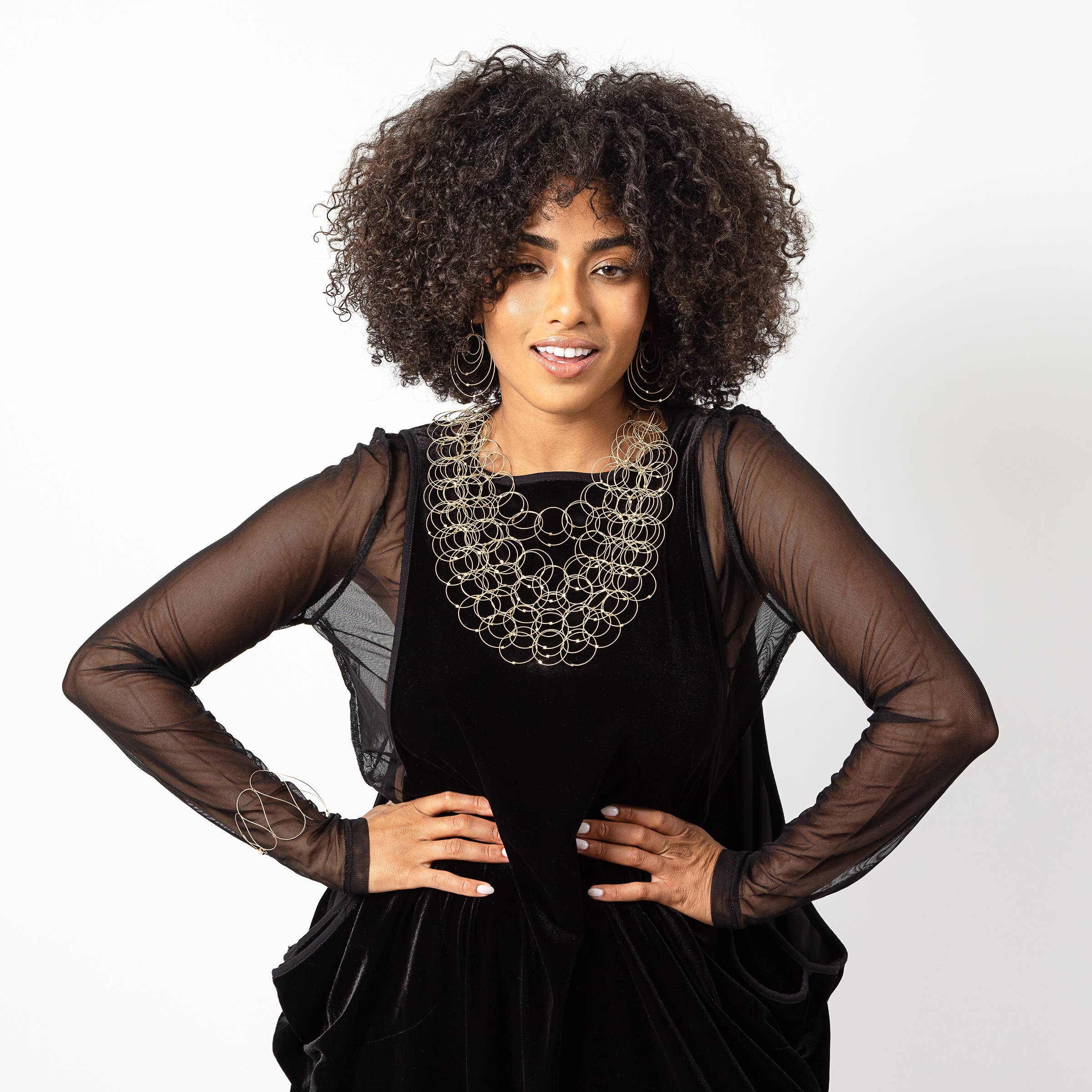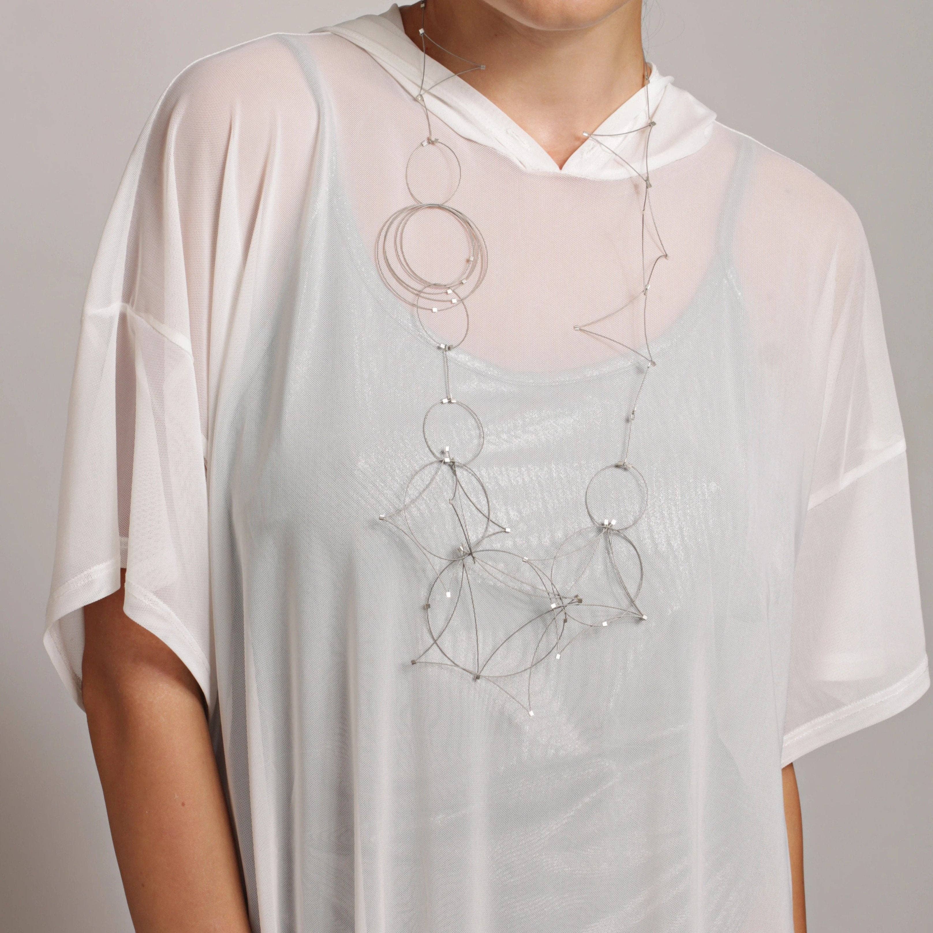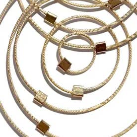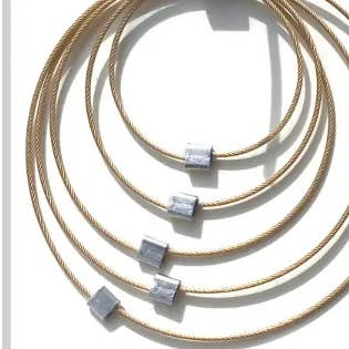 Hver MPR smykker af Meghan Patrice Riley stykke er fremstillet i hånden i MPR Atelier i Brooklyn, New York af uddannede kunstnere og metalsmede. Blanding af metaller med tekstilteknikker eksperimenterer jeg med klassiske, elementære materialer som vores klassiske nylonbelagte rustfri stålkabeltråd blandet med fine metaller og halvædelsten for at genfortolke dem for at skabe skulpturelle, moderne smykker, der er feminint, luksuriøst og dragende samt konstrueret til slidstyrke og holdbarhed. Vi arbejder med nylonbelagte rustfri stålkabel, der er belagt med fine metaller som 24k gult guld og sterlingsølv. Dette lille kabel ligner en ledning, men er faktisk 49 miniature ledninger vævet sammen for at lave et monofilament-lignende miniature rustfrit stål kabel, der er blødt som et tekstil, men har en super stærk kerne af stål. Fabrikationsprocessen af kablet svarer til den af kabler til hængebroer, der er konstrueret til at bevæge sig med jordens skiftende plader for ikke at kollapse, men svajer med bevægelse. Jeg derefter tilføje lidt firkantede stik og fund af 14 k guld fyld og sterling sølv med strejf af halvædelsten, som gør disse stykker allergivenlige og luxe. Samlingerne ser ultra-lækker ud og er ekstremt lette (fantastisk til øreringe!) men kan knuses og hoppe tilbage i form på grund af egenskaberne af kablet. De smykker samlinger tilbydes er virkelig unikke, tankevækkende, håndlavede og, mest af alt, bærbare.