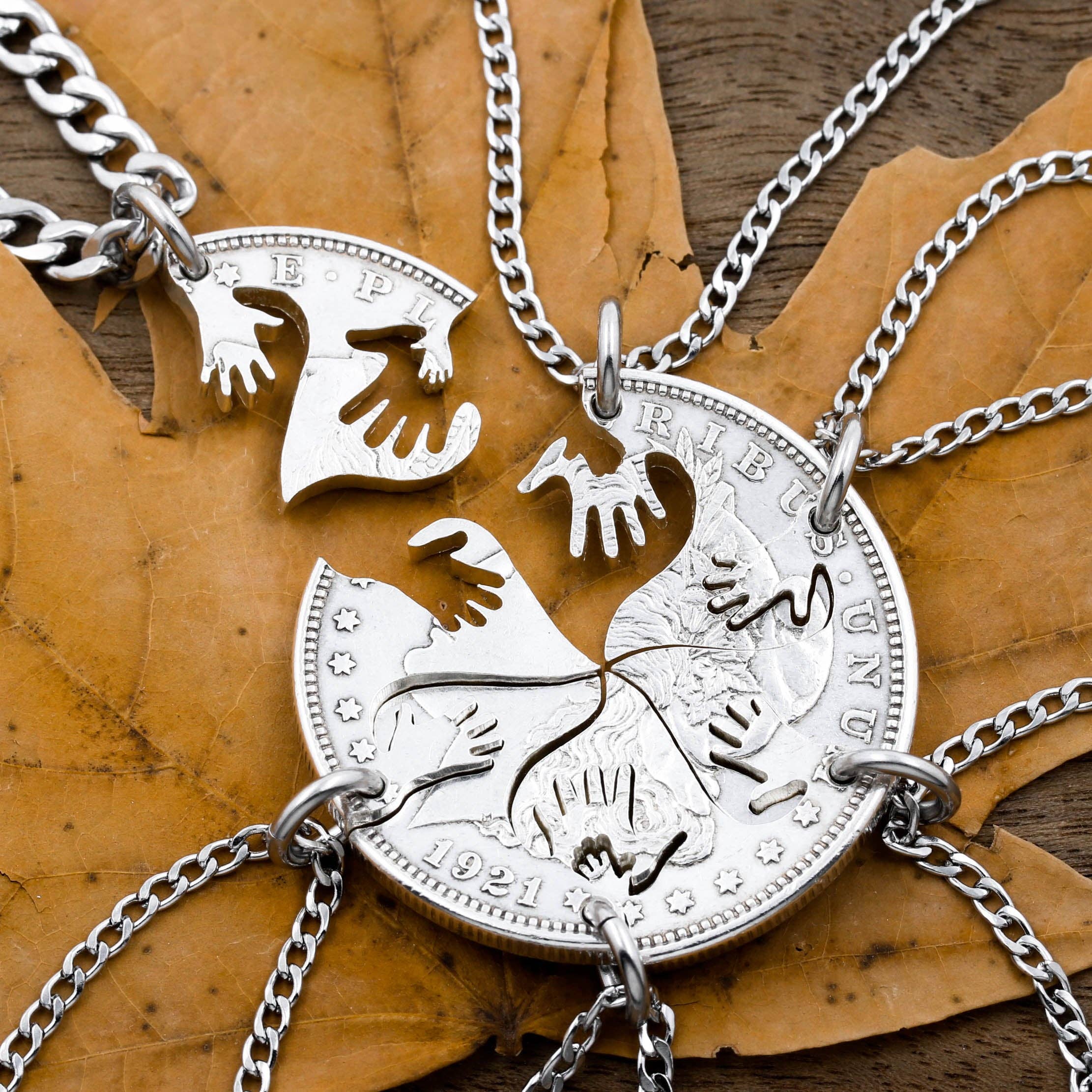Hej! Velkommen til NameCoins, vi er en familievirksomhed med over 40 års erfaring, der specialiserer sig i en meget unik type smykker. Vi skærer og graverer ikke kun mønter i hundredvis af designs, vi elsker også at hjælpe med at designe og skabe specialfremstillede stykker, der er specielle for dig! Hvert eneste detalje af vores udskårne møntdesigns er omhyggeligt skåret ud i hånden med en lille juvelersav. Vi bestræber os meget på at skabe disse til perfektion, og du kan se på vores billeder, hvor detaljerede og præcise vi er! Vi håber, du nyder at se på vores stykker!