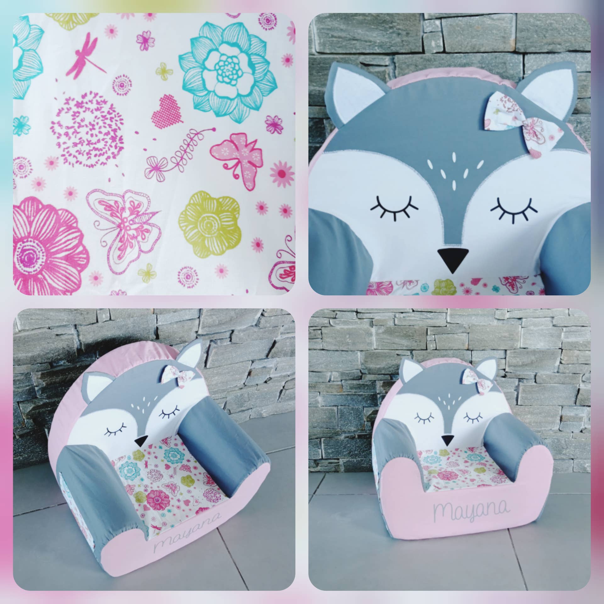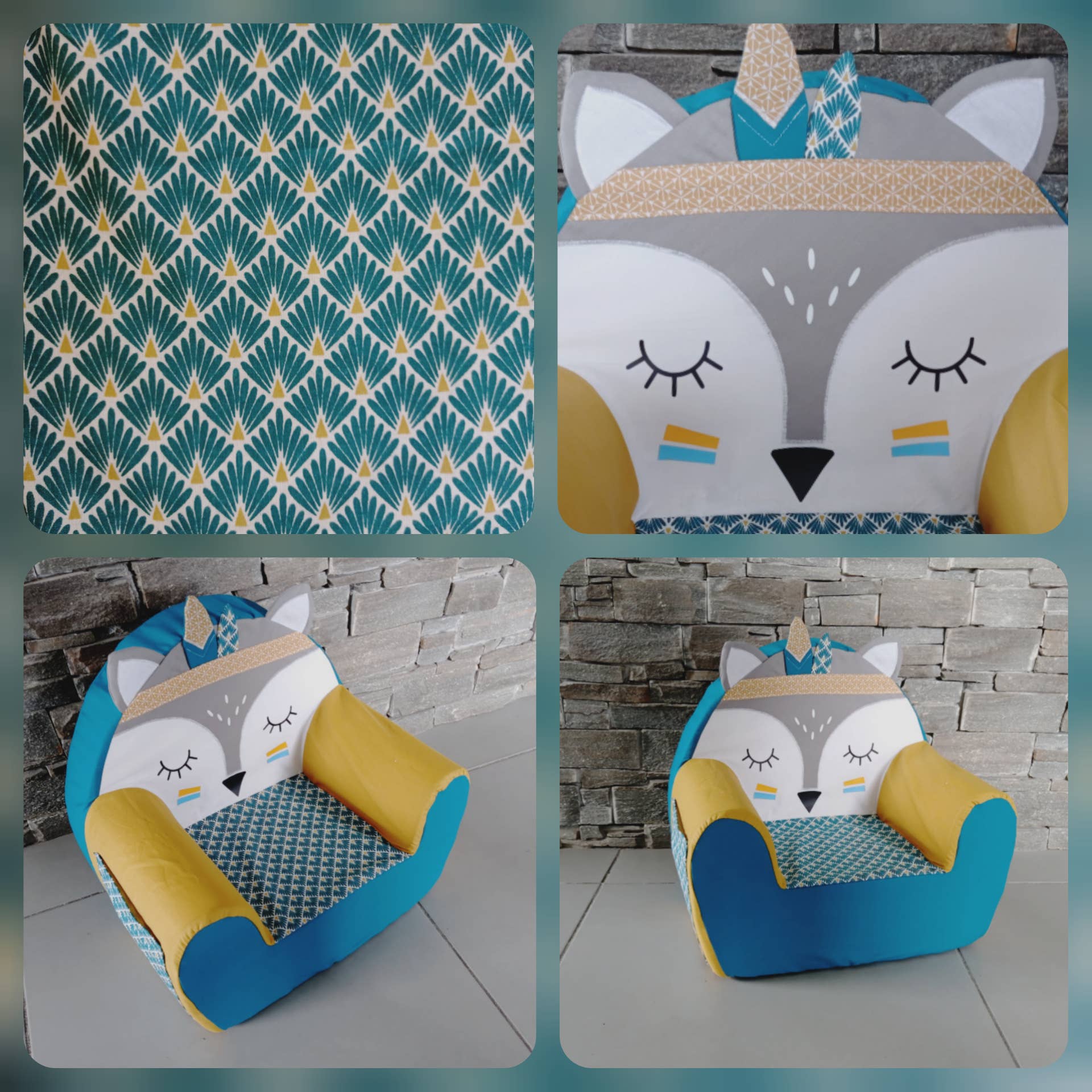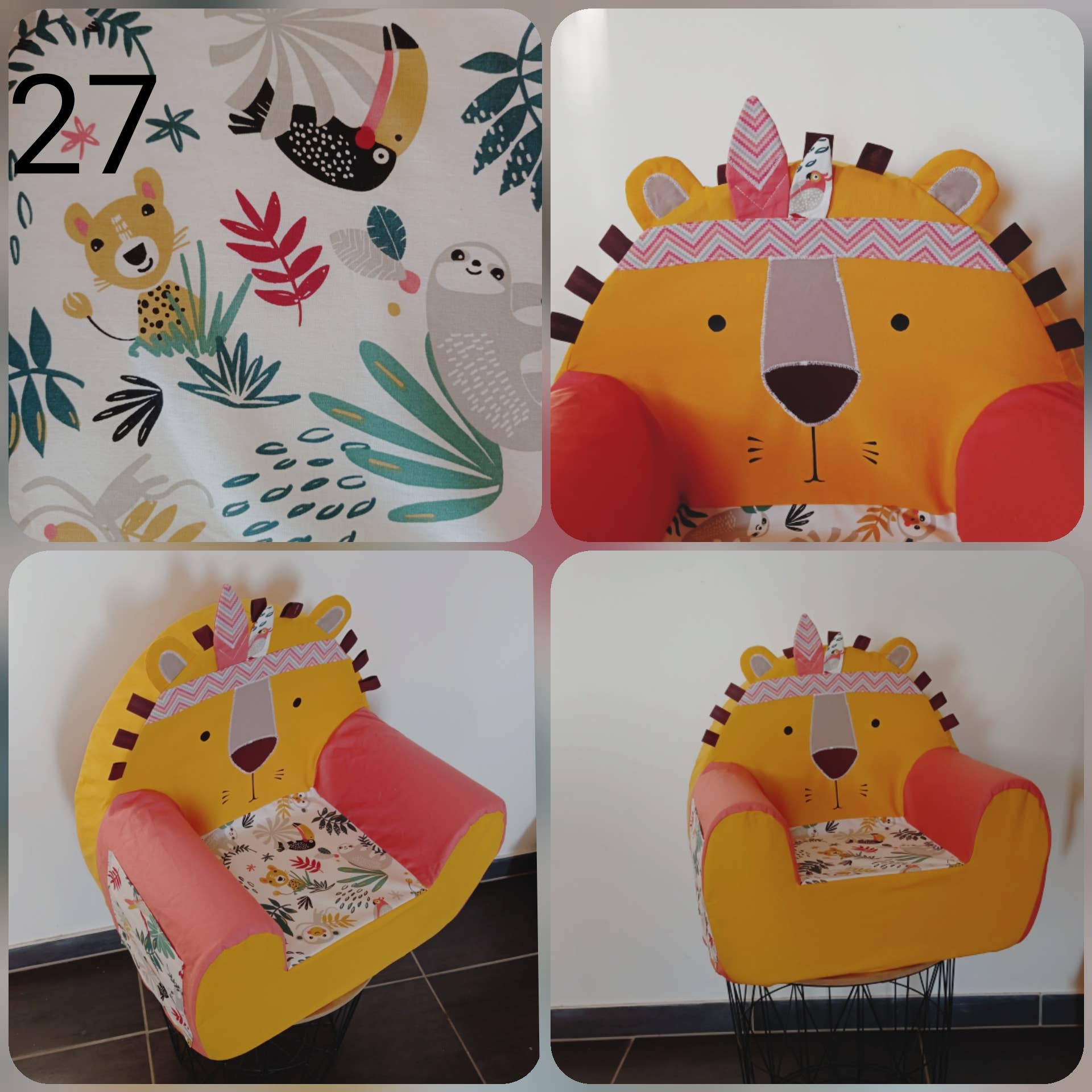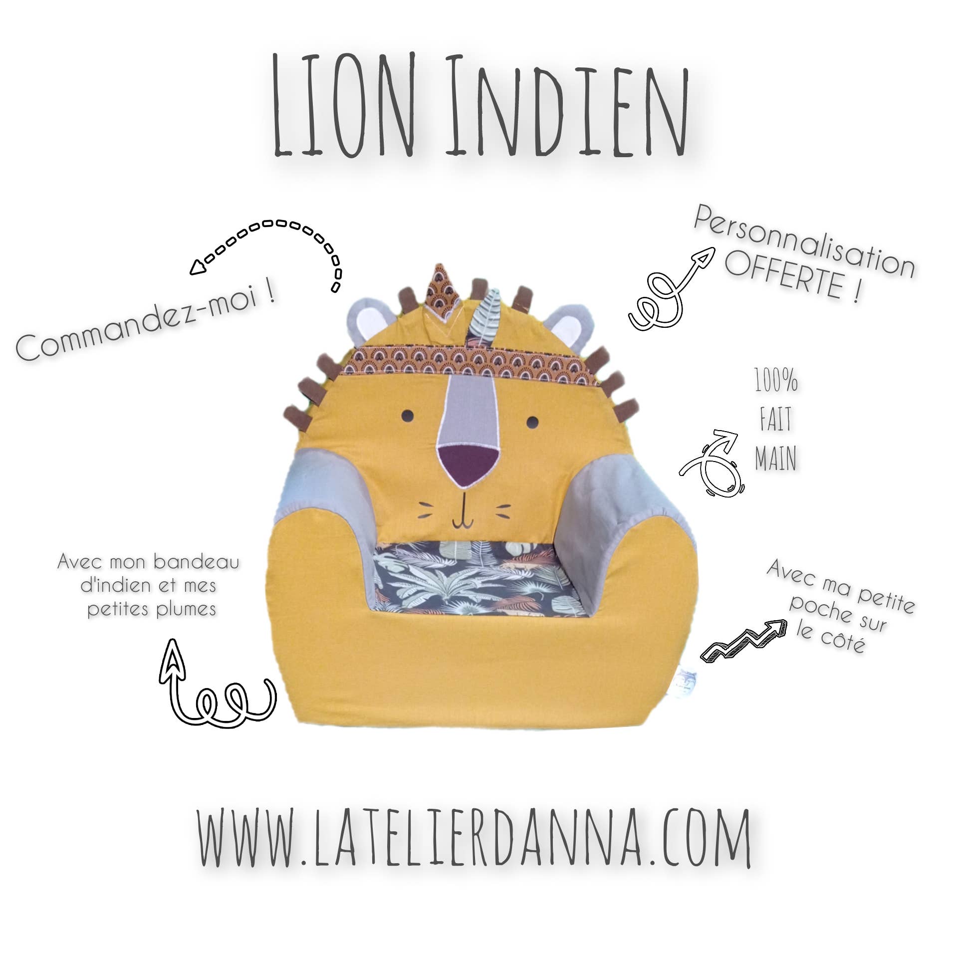 L'Atelier d'Anna tilbyder en samling lænestole til børn i form af dyr. De er aftagelige og vaskbare. En original gave og et nyttigt objekt, der vil perfektionere en børneværelse dekoration til et lille læsehjørne for eksempel. Han kan endda glide sin yndlings lille bog i den lille lomme på siden af stolen! Talrige valg af modeller, fra den listige ræv til den frække løve gennem den søde doe, en sikker knus for et af disse små dyr i samlingen! Lænestole er skabt med tykt skum, de er velegnede til børn op til 7 år ca. Som en gave vil de glæde børn, når de opdager dem! (det ser ud til, at de også har stor effekt på forældrene!) Lænestole er oprettet i FRANKRIG.