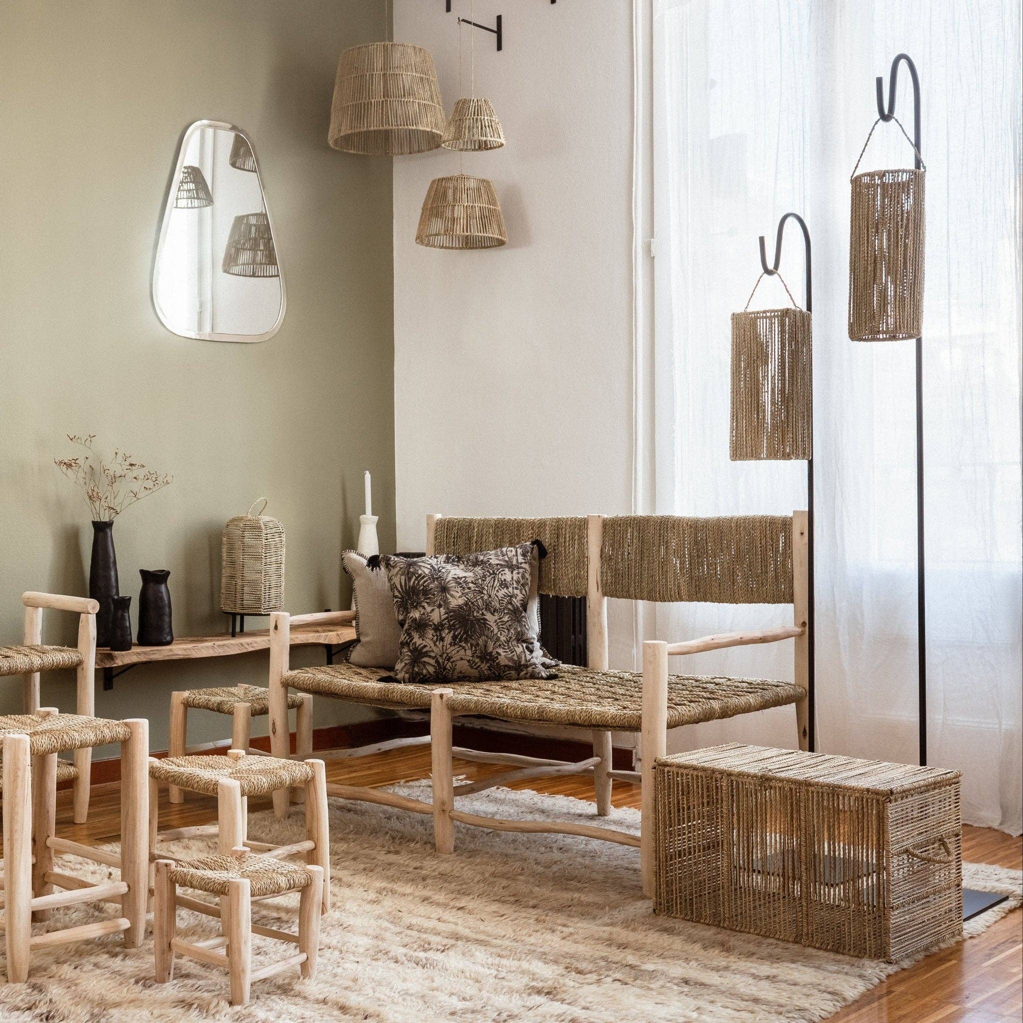 Cosydar-deco er et fransk mærke grundlagt i 2014 af Yasmina og hendes mand Albert. Vores kreationer er i det væsentlige håndlavede og håndlavede med naturlige materialer som træ, palmeblad, kurv, rush... men også traditionelle som stål, keramik, linned... Vores kollektion, der består af smukke kurve, små træ- og stålmøbler, spejle, lys, tilbehør og meget mere, vidner om vores engagement i genstande designet med omhu, unikke, med en decideret bohemsk chic stil og kvalitet. Hvert stykke i vores samling afspejler også vores kunsthåndværkeres kulturelle indflydelse og fanger essensen af deres tradition og deres unikke ekspertise. Vores kollektion, både diskret og original, er designet til at bringe et autentisk touch til boligindretning. Hvert stykke er omhyggeligt designet til at blande sig harmonisk ind i rummene og skabe en varm og indbydende atmosfære. Hos Cosydar Deco mener vi, at dit hjem skal afspejle din personlighed og livsstil. Udforsk vores kollektion, og lad dig rive med af unikke kreationer, der overskrider grænser og bringer et personligt præg til dit hjem. Uanset om du leder efter unikke dekorative stykker, små håndlavede skatte eller elementer, der forbedrer stemningen, er Cosydar Deco din destination.
