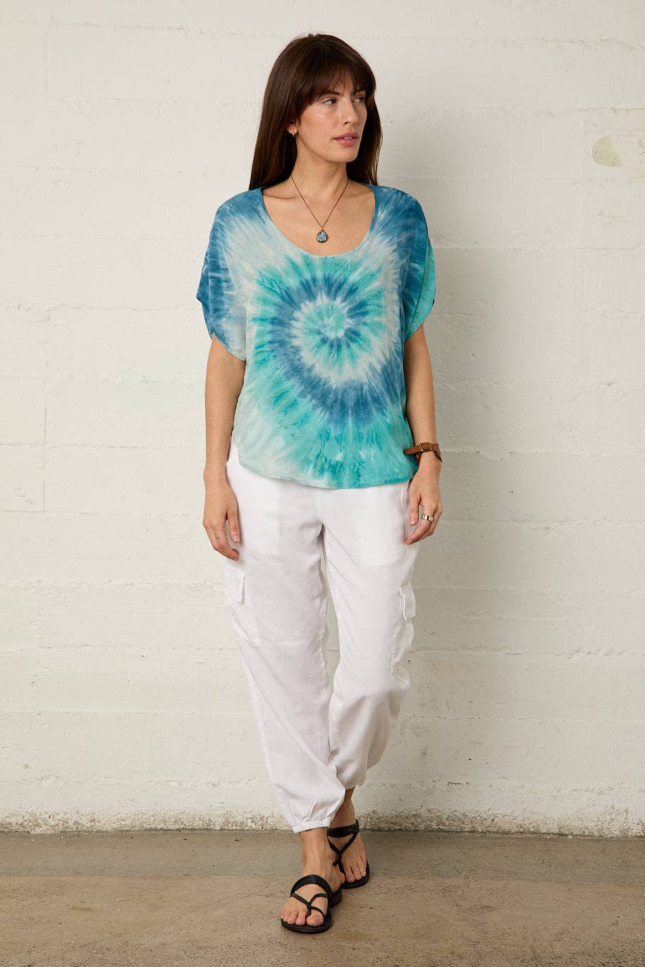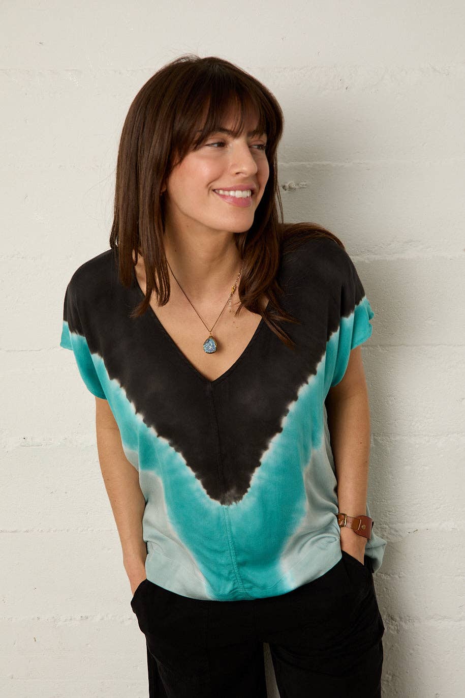 Håndfarvet af kunsthåndværkere. River + Sky "Vi har altid haft en dyb respekt for naturen. Det inspirerede navnene på vores børn—vi opkaldte River + Sky efter dem—og vi stræber efter at ære Jorden i alle aspekter af vores virksomhed. Efter at have arbejdet i den konventionelle modeverden og set dens miljøpåvirkning på første hånd, er vi forpligtet til at skabe tøj, der er mere skånsomt mod planeten, fra design til råmaterialer til produktion. Og vi finder altid måder at yderligere reducere vores fodaftryk, mens vi vokser. Tak fordi du er med på denne rejse med os—her er til at skabe en mere bevidst modeindustri sammen." —Caroline og Michael Keefer, medstiftere af River + Sky
