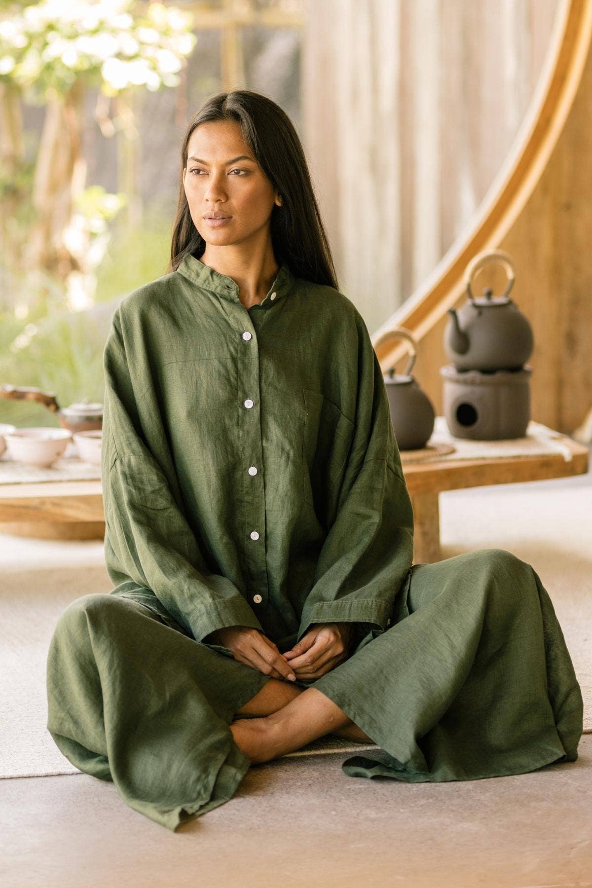 Denne samling handler om en vild løsgående kærlighed til udtryk med den hensigt at være til tjeneste, at opløfte, slappe af, at kommune og omfavne dit højeste kald. For Rob og jeg og mange af vores medarbejdere er det højeste kald at være forælder. Derfor arbejder hele vores team hjemmefra. I stedet for at åbne en fabrik eller arbejde med eksisterende faciliteter etablerer vi decentraliseret produktion ledet af et overvejende kvindeligt team, der alle arbejder fra deres eget hjem. På denne måde får alle mere tid sammen med deres familier. Vi mener, at øge glæden i vores teams liv, øger den kærlighed og hensigt, vi hælder i hvert stykke, vi hånd håndværk i Bali.