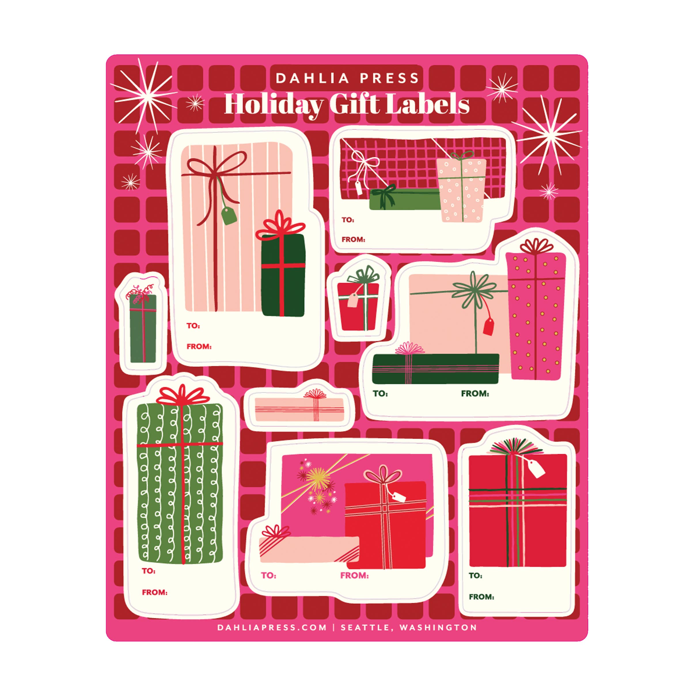 Dahlia Press ligger i Seattle Washington og er et boutique-design- og brevtryksstudie grundlagt i 2008. Efter år med at give glade par og familier tilpassede invitationer og meddelelser, begyndte Dahlia Press i sommeren 2014 en lille række hilsener og sociale papirvarer for at udvide sine nuværende tilbud. I dag omfatter vores voksende linje over 400 hilsener og indeholder en række papirvarer såsom indpakningspapir, notesblokke, kuglepenne og kunsttryk. Ved hjælp af traditionelle bogtrykmetoder kombineret med friske og moderne designs har vi udviklet en stil, der helt sikkert vil glæde dine kunder.