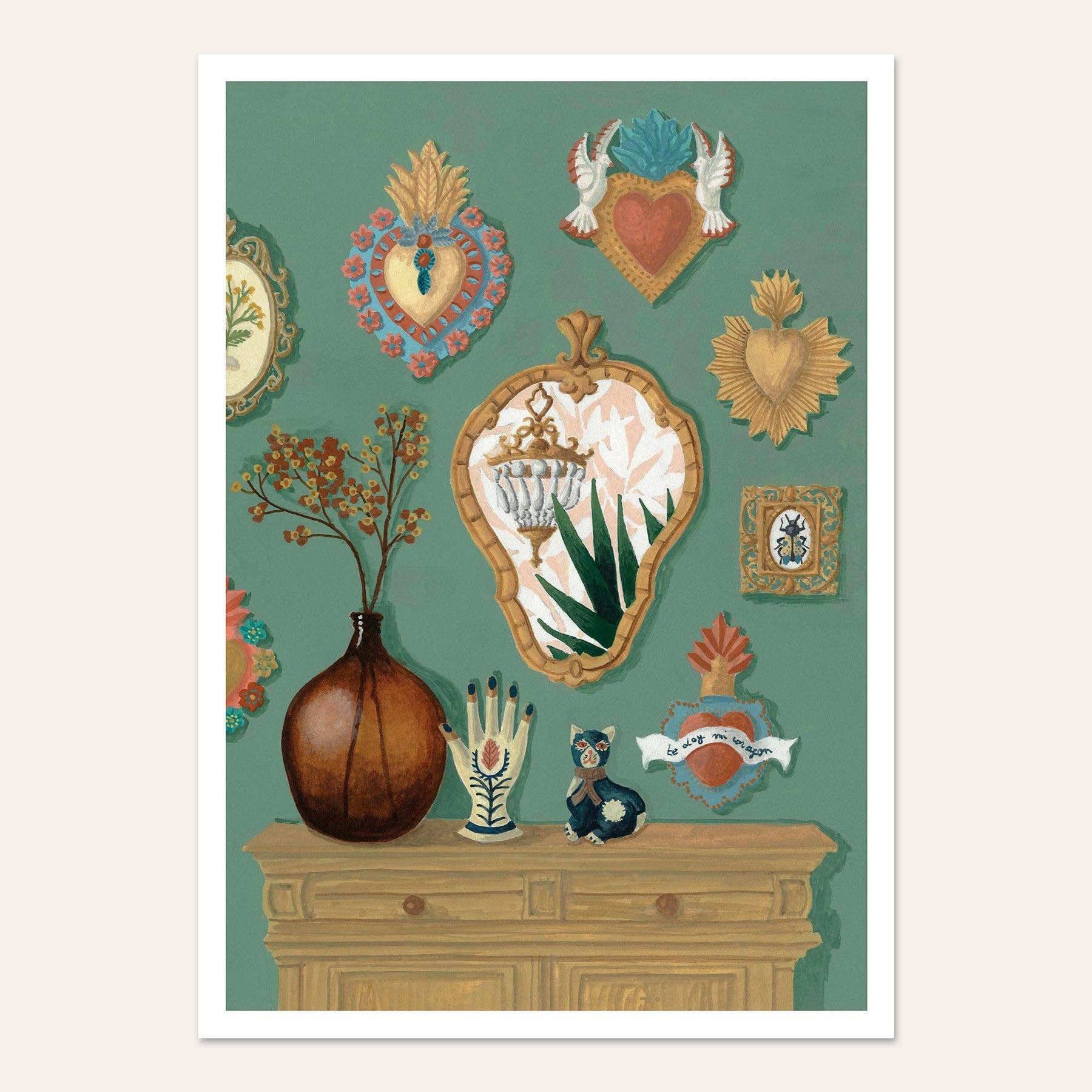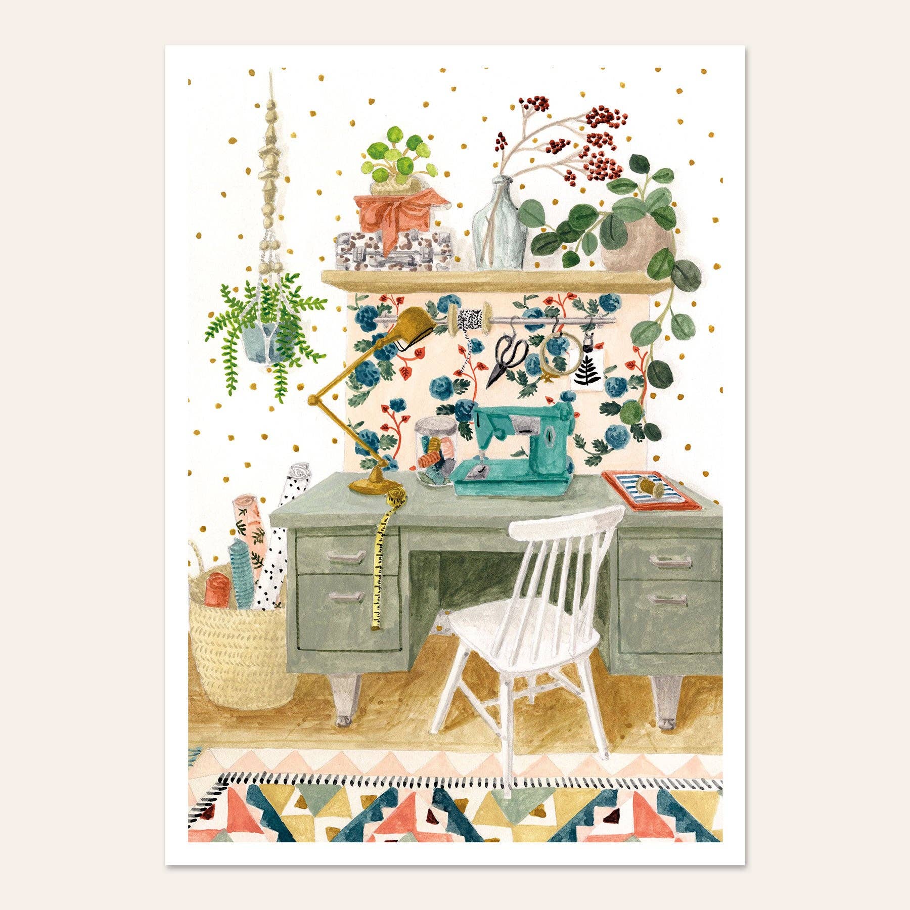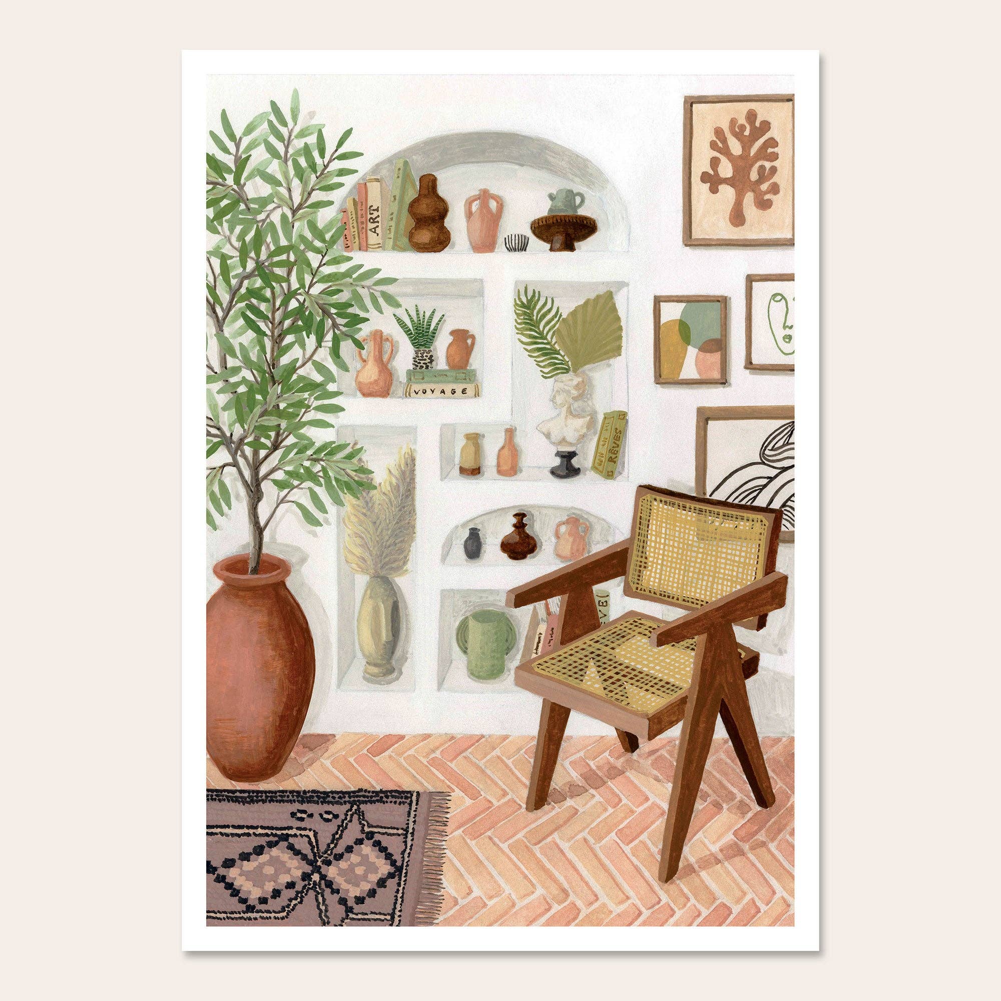 Mélanie Voituriez fokuserer på at illustrere hverdagens poesi. Hun er passioneret omkring tekstiler, arkitektur og natur, og hun komponerer hvert billede som et patchwork, inspireret af objekter, planter, landskaber, arkitektoniske detaljer og tekstilmønstre samlet over tid og på hendes rejser. Hendes illustrationer er lavet med gouache i hendes atelier i Normandiet, og hendes plakater, postkort og spejle er trykt i Frankrig.