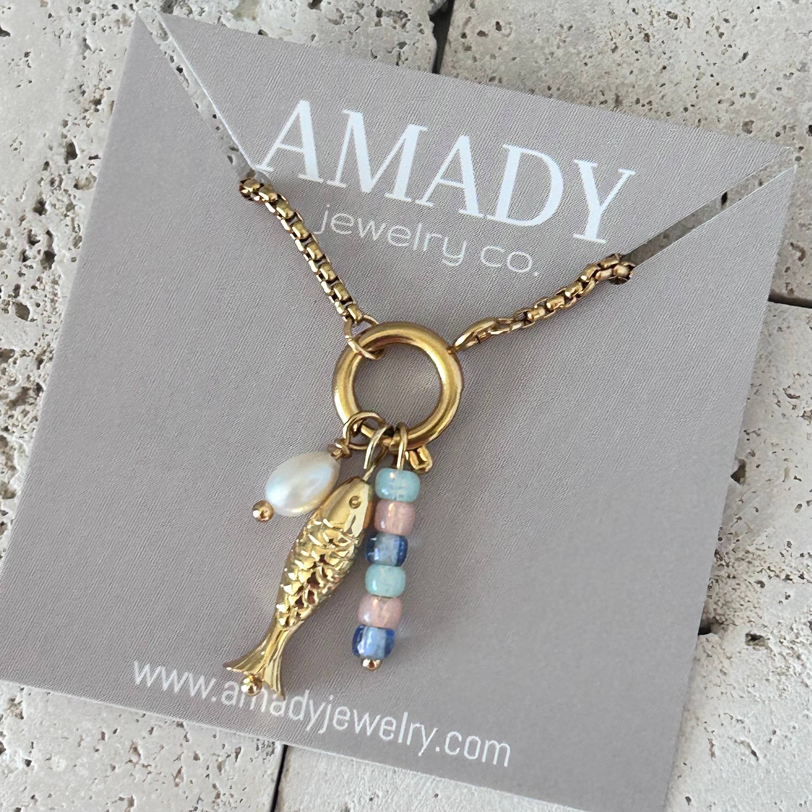 GRATIS FRAGT på ALLE ordrer på $250,00 eller mere! (Gælder kun på amerikanske ordrer. Vi bruger USPS Priority Mail) Hej, jeg hedder Zam! Jeg er smykkeproducenten, mor og militærkone bag „Amady Jewelry“ Mine stykker er en stadigt skiftende samling af håndlavede smykker inspireret af verden omkring os og de smukke kunder, der har støttet min butik siden begyndelsen af denne rejse. Vores stykker er designet og håndlavet udelukkende i USA af mig selv, eller i udlandet afhængigt af hvor vi er stationeret som den militære familie, vi er. Smykkedesign har været en passion for mig lige siden jeg var teenager. Jeg husker, at jeg brugte masser af timer på at lave mine egne smykker og få komplimenter fra venner og familiemedlemmer. Her hos Amady Jewelry er håndplukning af materialerne ikke kun min yndlingsdel af designprocessen, men jeg tror, det er den vigtigste del! Alle materialer er håndplukket for deres glans, farve og størrelse, hvilket gør hvert stykke unikt og unikt. Jeg bruger kun ædle og halvædelstenperler af højeste kvalitet, vedhæng, charms, kæder... Tak fordi du er en del af denne rejse og støtter en drøm!