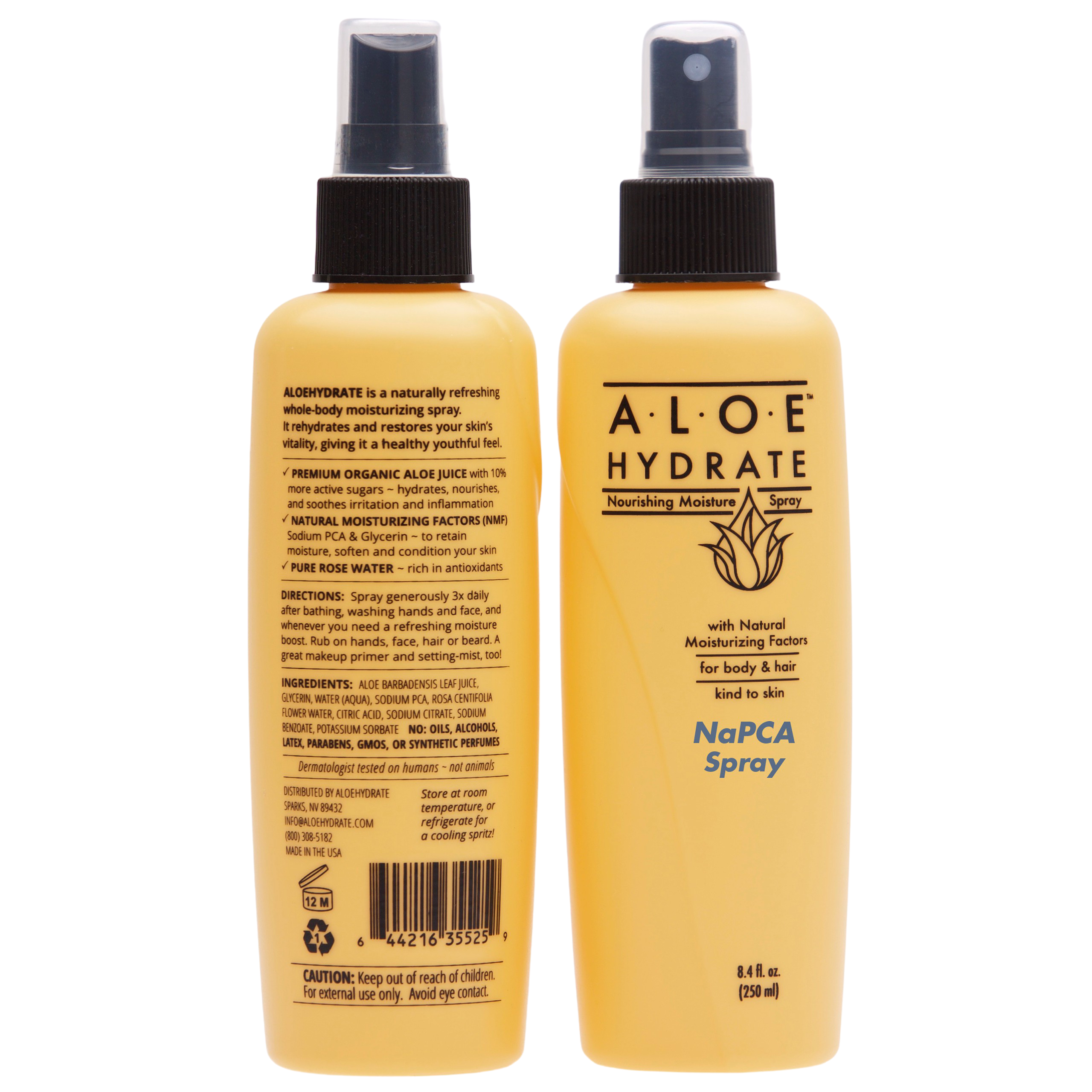 AloeHydrate blev født ud af nødvendighed for at give en bedre løsning til tør hudpleje i ekstreme miljøer. Her i det nordlige Nevada oplever vi ekstreme forhold; fugtighed så lavt som 5%, masser af sol, sne, vind og UV-stråler! De fleste „naturlige“ hudplejeprodukter bruger vand som deres primære ingrediens. Det gør vi ikke. Vi bruger ren økologisk Aloe vera i alle vores naturlige hudplejeprodukter, fordi Aloe vera giver din hud mere end vand. Det nærer din hud med næringsstoffer som aminosyrer, vitaminer, polysaccharid og meget mere. Og disse bidrager alle til hvert af vores produkter som beroligende, bekæmper betændelse og forbedrer biotilgængeligheden af vigtige aktive ingredienser. Nogle af vores aktive ingredienser omfatter ren hyaluronsyre, schweizisk æble stamcelleekstrakt, ceramid, hamp frø olie og vitaminer. Desuden er alle vores produkter unikt vandopløselige, så du ikke vil have nogen fedtet følelse. De fortsætter alle med en forfriskende lys, silkeblød følelse og absorberer hurtigt. Du kan være sikker på, at vi er lige så passionerede omkring naturligt effektiv og sund hudpleje som du er. Derfor tester og bruger vi vores produkter personligt.