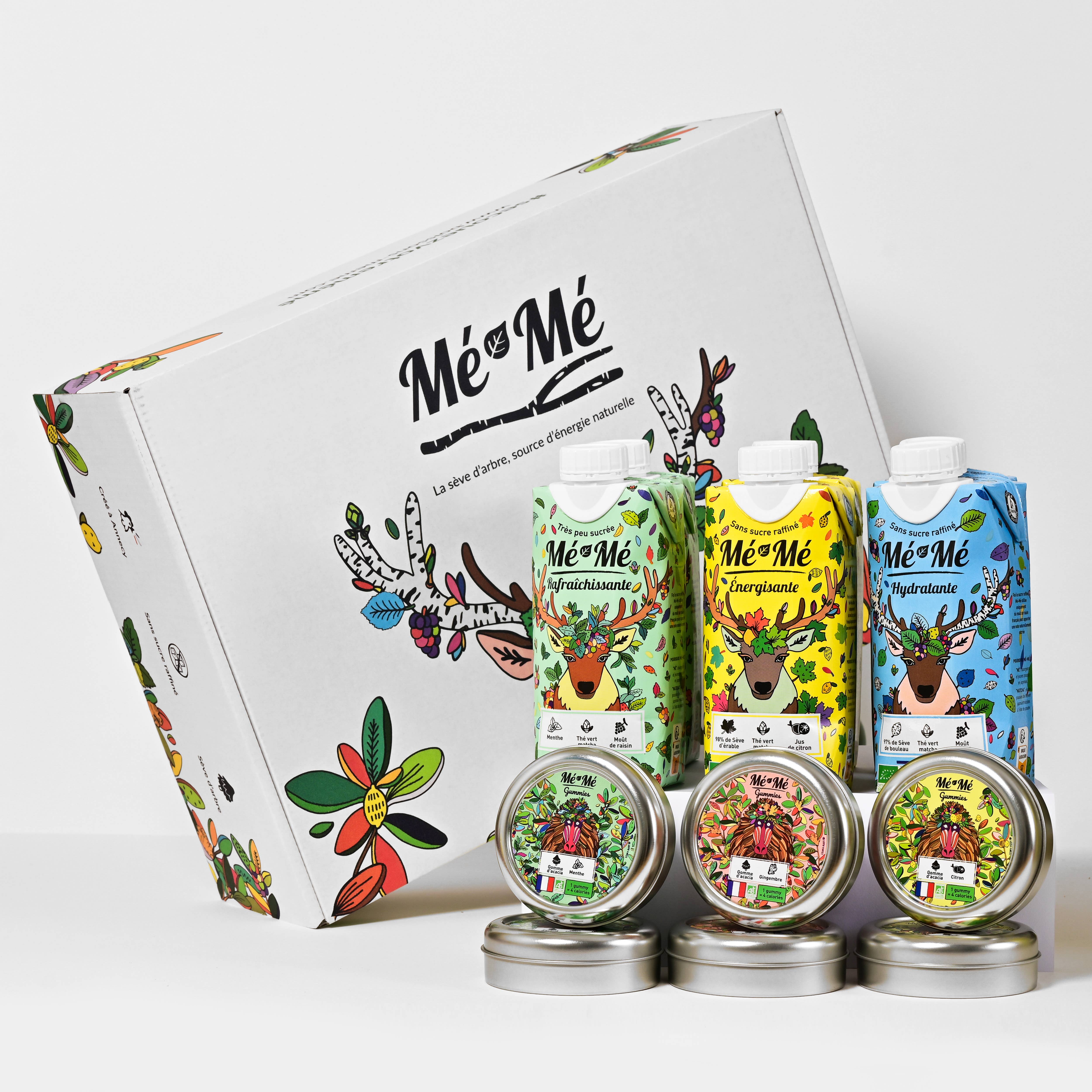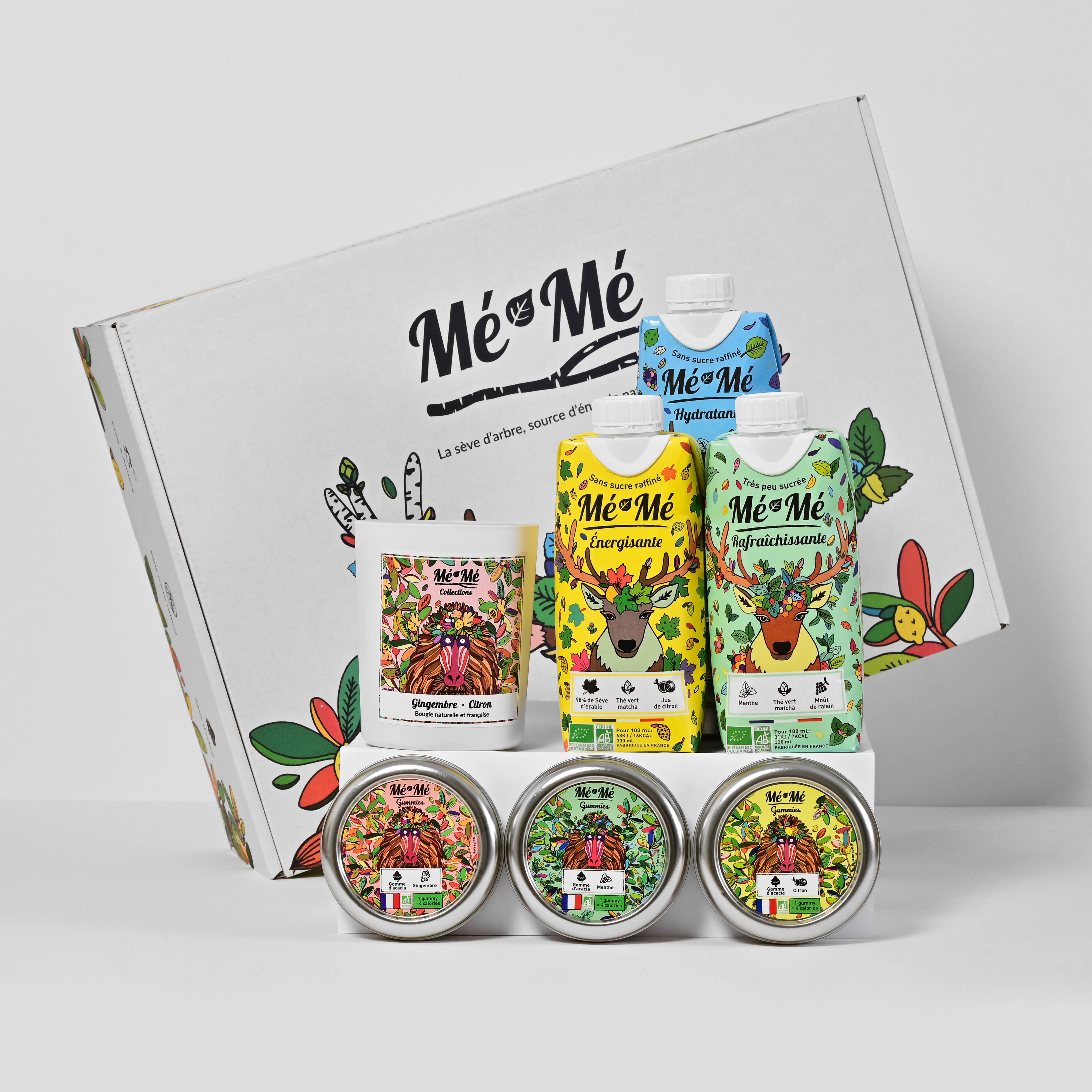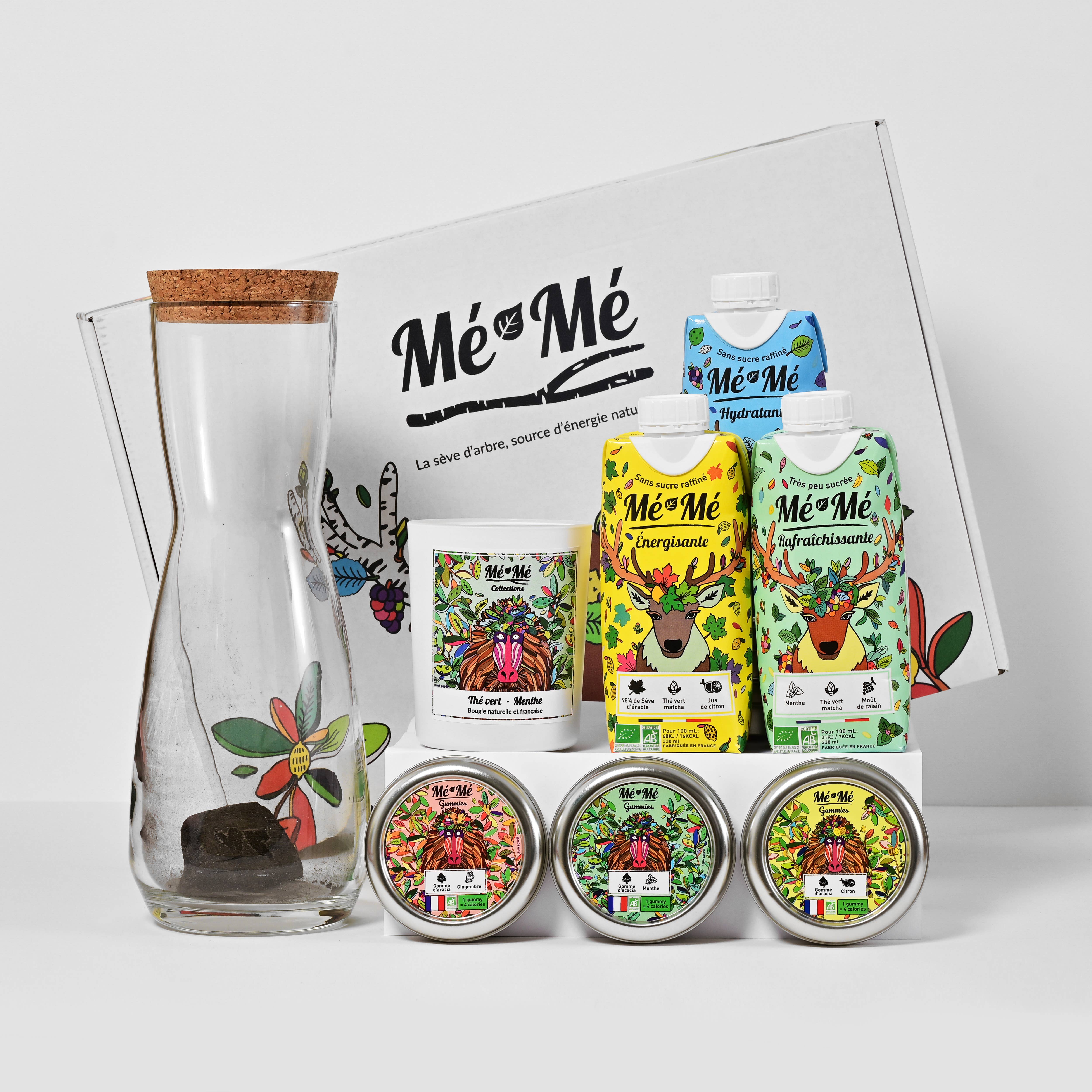 Oprettet i Annecy, er Mé-Mé det nye franske mærke af økologiske isteer uden raffineret sukker. Mé-Mé teerne består hovedsageligt af træsaft, et vand rigt på vitaminer og næringsstoffer, der naturligt produceres af træet for at udnytte alle de fordele, naturen har at tilbyde os. Med Mé-Mé er det slut med raffineret sukker! Vi giver plads til vores sunde og naturlige innovation: druemost og dens antioxidante rigdom. Find vores udvalg af isteer i 33cl og 1L format, men også vores gummies, der sælges i æsker på 35g, tyggegummi, der fungerer som præbiotika for at vedligeholde tarmfloraen og lette fordøjelsen. Mé-Mé sortimentet omfatter også en hjemmekollektion med duftlys med en berusende duft... Grøn te/Mynte og Citron/Ingefær. -> Fremstillet i Frankrig, uden tilsætningsstoffer eller konserveringsmidler, Økologisk -> Emballagerne er lavet af 100% genanvendeligt pap fra økologisk forvaltede skove under FSC-mærket. Og låget er lavet af sukkerrør for at have 0% plastik. -> Designet af den franske kunstner Léona Rose #rystdinsmeme