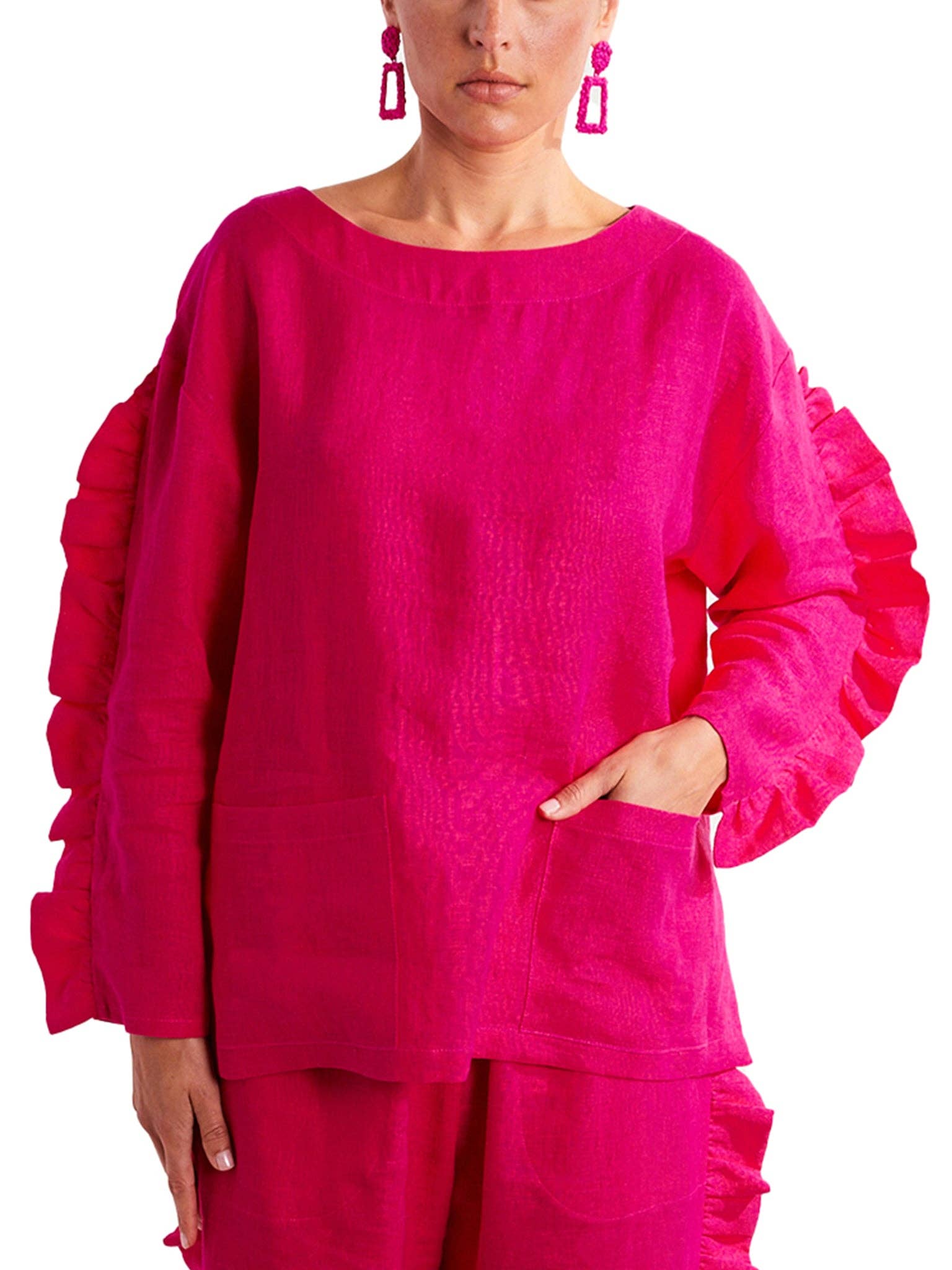 Amy Page DeBlasio (APD) er et kvindeejet karakteristisk og etisk moderne designmærke grundlagt i 2017. Hvert APD-stykke er et udtryk for Amys kunstneriske æstetik, der udstråler bevægelse og energi i en sømløs blanding af urban attitude og skarp raffinement. Fra hvert designkoncept til hver søm afslører APD upåklagelig opmærksomhed på detaljer. Gennem en blanding af dristige stoffer og luksuriøse tekstiler kræver APDs effektive og forhøjede designs opmærksomhed, fremkalder spænding og udtrykker tillid. Amy designer personligt hvert eneste tøj og køber hvert stof og idé, ned til den sidste knap. Du kan ofte finde hende, der afleverer en prøve til mønsterproducenten eller løber rundt i Garment District på udkig efter den helt rigtige trim. APD er ikke en trend, det er en livsstil. Og det går aldrig ud af stye. Designet i vores Rhode Island-studie og lavet i NYC'S Garment District med stolthed.