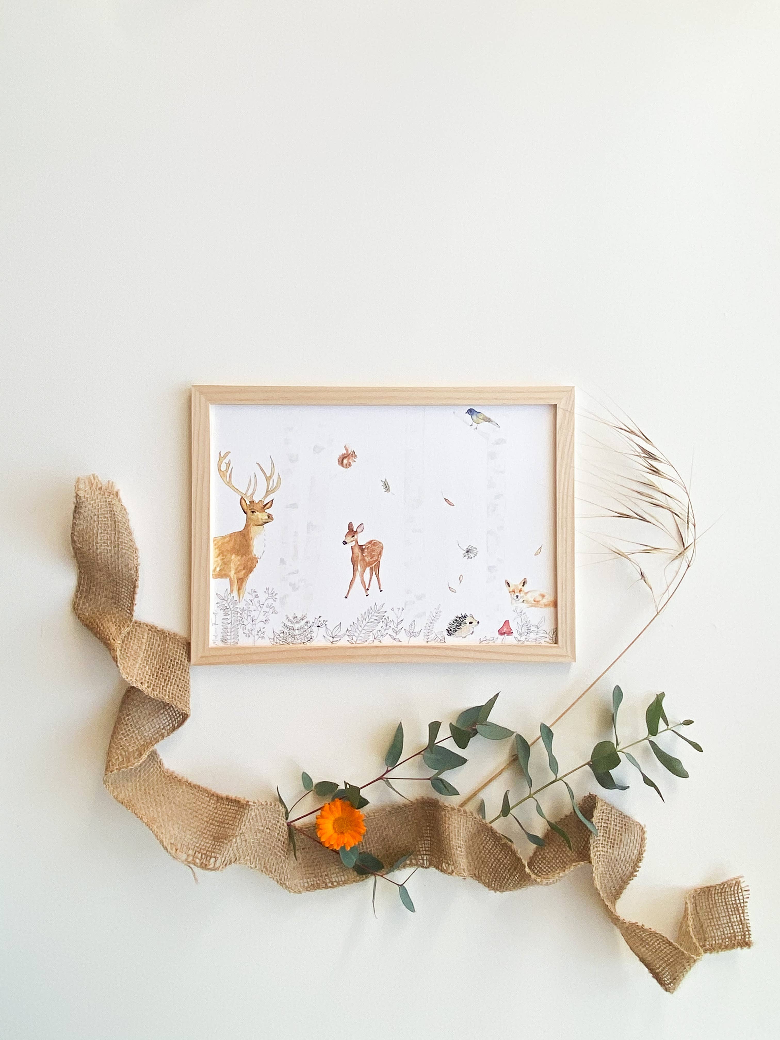 Det er, når mine børn er født, at jeg begynder at male akvareller, fordi jeg ikke kan finde illustrationer der svarer til den cocooning atmosfære, som jeg ønsker til deres værelse. Jeg bruger naturlige nuancer, Jeg blødgør emnerne ved at forsøge at give et kig ental og fortryllende. Ræv, kanin, elefant, giraf... Jeg håber, at hvert barn vil finde deres ledsager!