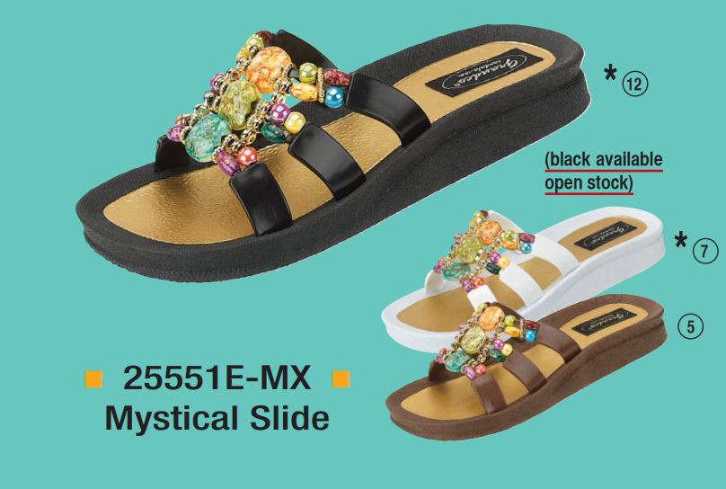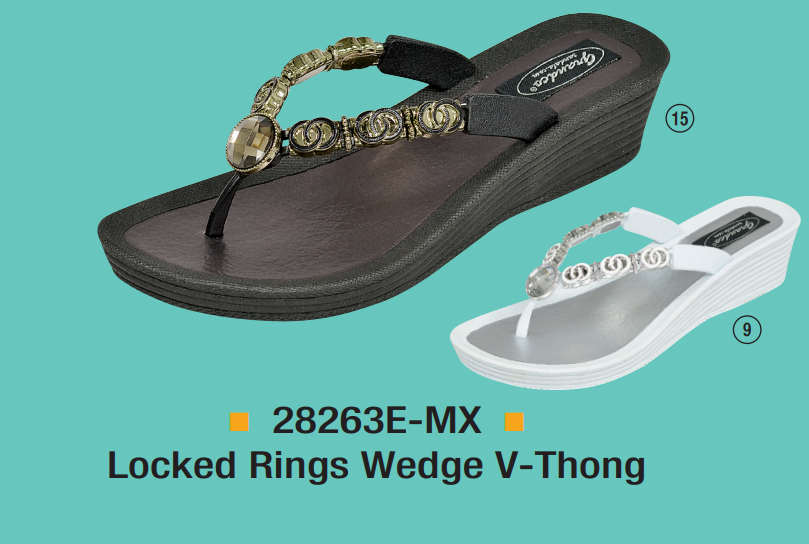 GRANDCO Sandals er på lager nu, klar til afsendelse. Vores store forsendelse er lige ankommet, så de fleste stilarter er gode på lager. Se vores fulde linje af „Smykker til dine fødder“ perlesandaler i vores nuværende katalog. Hvis du vil have en fysisk kopi af kataloget til at gennemse, kan du e-maile mig på: grandcosandals@yahoo.com, og jeg sender en ud til dig ASAP. Også, er du velkommen til at e-maile mig når som helst med spørgsmål, du måtte have. De fleste af de stilarter, vi tilbyder, er perfekte til stranden, og vi har nogle andre stilarter, der er mere elegante, klædte stilarter, perfekt til butikker, der kan lide noget „bling“. De har været en fantastisk sandallinje i årevis (siden 1984) på grund af de lave prispoint, stilfulde udseende, holdbarhed og super komfortable indlægssåler. Med tilføjelsen af „THE HUT“ sandaler har vi nu en sandal til hvert målmarked, unge og gamle.