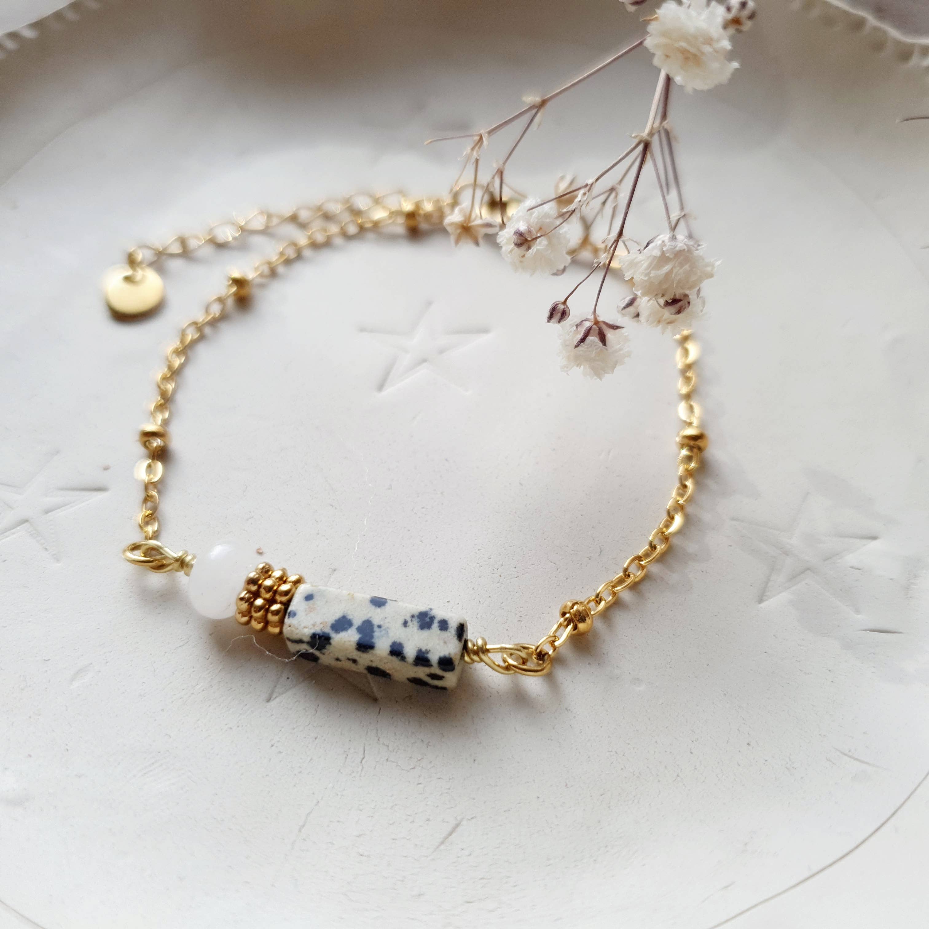 SoCuteWorld blev født i slutningen af 2015 ud af et uimodståeligt behov for at skabe og dele. Alle mine kreationer er håndlavede i mit lille værksted i Grenoble. Jeg laver dem med omhu PÅ BESTILLING. Mine deadlines er omkring ti arbejdsdage, de kan være længere eller kortere afhængigt af perioden, men jeg prøver altid at TILFREDSSTILLE DIG. Hvis du har en frist at respektere, tøv ikke med at kontakte mig, jeg vil gøre alt for at sende dig din ordre inden for fristen:) Jeg kan godt lide at opdage, arbejde og blande materialer efter min inspiration: Rustfrit stål, natursten, perlemor, frihed, jesmonit... Jeg vælger alle materialer omhyggeligt for at tilbyde dig kostume smykker af høj kvalitet. Jeg opretter regelmæssigt nye samlinger udgivet i begrænsede serier, men du vil også finde tidløse flagskibssmykker tilgængelige hele året rundt. Mærket er repræsenteret i adskillige designerbutikker i Frankrig og har også et partnerskab med Galeries Lafayette i Grenoble, hvor det regelmæssigt udstilles. Anne-Katarina