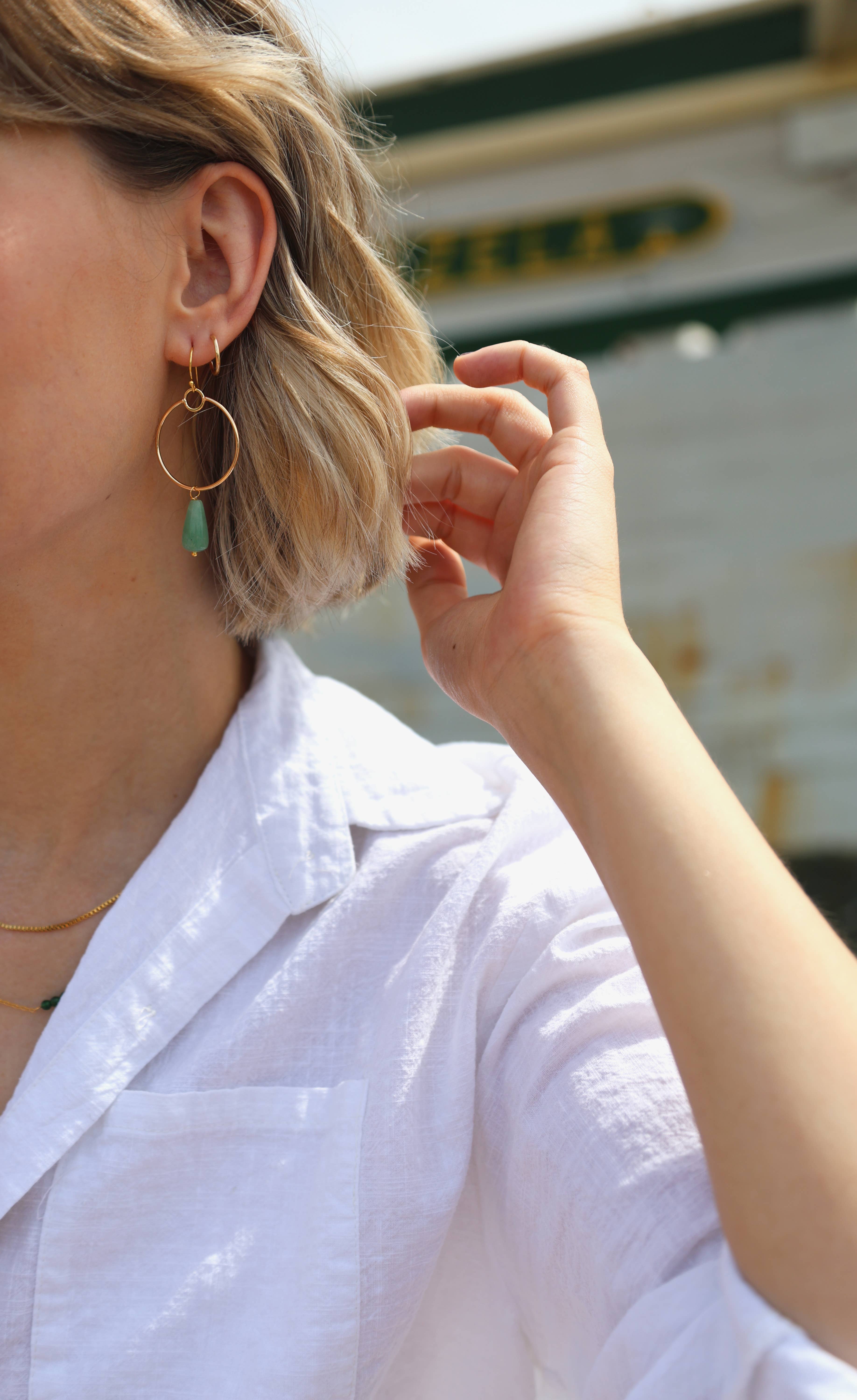 "Man ved aldrig, hvor livet fører en hen, men det fører en…." Og det førte mig langt. Til et andet kontinent og land, som jeg nu kalder hjem. Jeg er født og opvokset i Minsk, Hviderusland, men Philadelphia har været mit hjem de sidste 20 år. Jeg elsker denne by for dens livlige kunstscene, der gør det så nemt at forblive kreativ. Jeg henter min inspiration fra geometriske former, da jeg altid har elsket matematik. Jeg forener denne kærlighed med mønstre og teksturer fra Moder Natur for at inspirere den smykkelinje, jeg skaber i dag. Jeg bruger håndskåret og laserskåret messing og inkorporerer naturlige ædelsten og krystaller for at skabe smykker, der omfavner deres naturlige elementer. Mine smykker flyder som luften og vandet omkring os og forbinder bæreren af mine smykker med de omgivende elementer. Sjov fakta: de fleste af mine smykker er opkaldt efter lokale søer, floder og damme. Jeg håber, de inspirerer dig lige så meget, som de inspirerer mig. Med kærlighed, Anastasia, GeoMetricGem