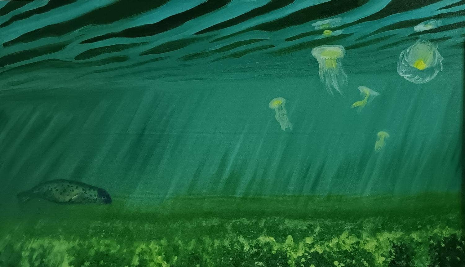 Siri Tiger Kaunda er en kunstner, der udforsker sted, relationer og sociale spørgsmål med lag af farve og tekstur. Hendes stil er ofte finurlig og blander abstraktion, realisme og figurativt udtryk. Kort og tryk fra hendes nuværende serie, Mapping the Salish Sea, er invitationer til at dykke ned i den vilde undervandsverden i det nordvestlige Stillehav, hvor kunstneren har svømmet udendørs året rundt siden 2021. Serien omfatter malede og kollagerede kort over lokale vande og undervandslandskaber, der skildrer det liv, der trives indenfor.
