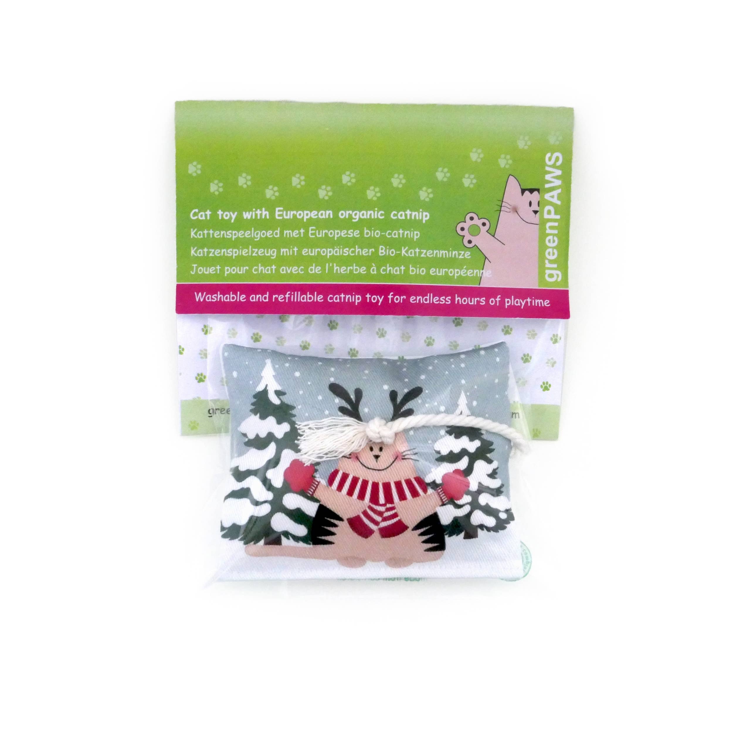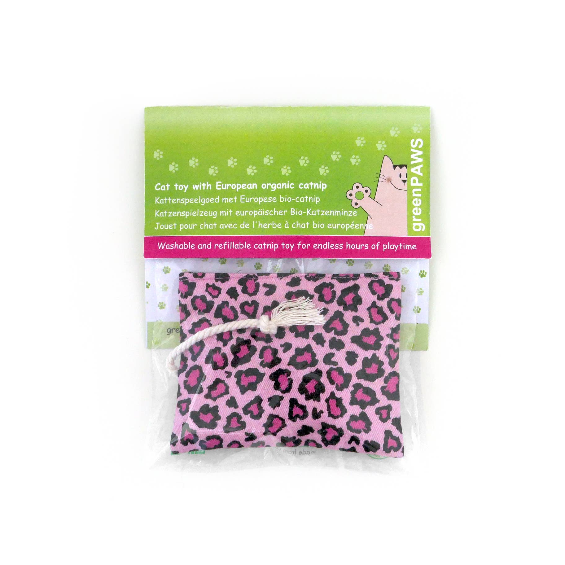Velkommen til kattens legetøjsatelier greenPAWS! GreenPAWS opstod fra min søgen efter giftfrit, plastikfrit og vaskbart kattens legetøj til mine egne katte. Hvert legetøj er håndlavet med kærlighed i greenPAWS-systuen, af stærkt bomuldsstof og fyldt med europæisk, økologisk dyrket katteurt. For et ekstra strejf af blødhed bruger vi som fyld fåreuld fra de belgiske Kempen.
