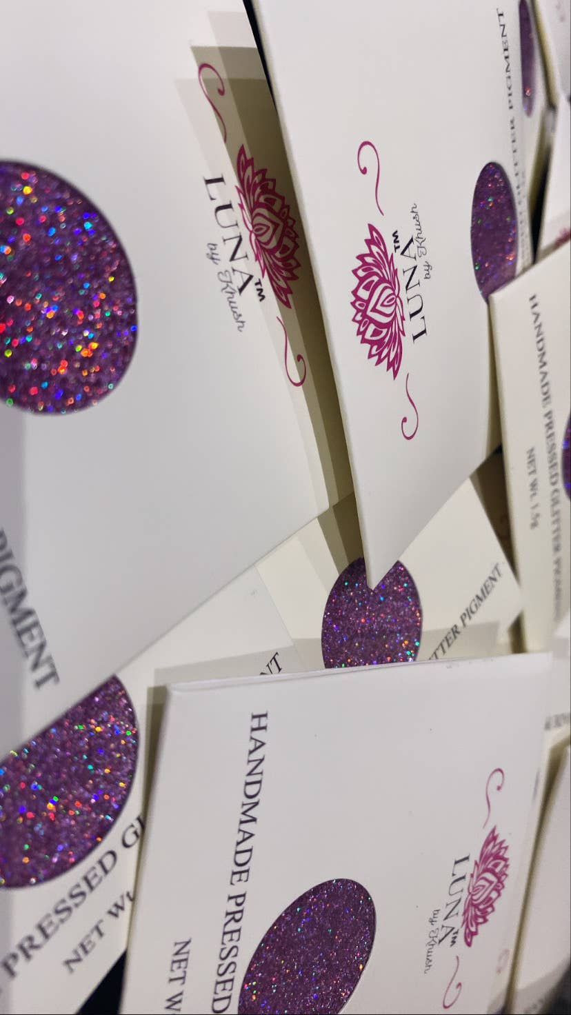 Khushi, en Instagram-skønhedsblogger og MUA, grundlagde Luna af Khush i 2020, men hvert trin har ført op til dette øjeblik fra hendes passion for makeup og den voksende skønhedsindustri. Khushi har altid drømt om at skabe en dybt personlig tilgang ved at starte sin egen makeup-linje. Startende med forsigtigt pressede glitterpigmenter, de er designet og skabt med en forpligtelse til at tilføje en samling fængslende makeup-kit essentials til markedet... Du kan aldrig få nok glitter øjenskygger! Alle pigmenter er omhyggeligt håndlavede i Storbritannien fra ansvarligt fremskaffede ultra fine glitter. Vi har etableret en række glitterpigmenter til at begynde med, som Khushi mener kan bruges af alle - uanset om du kan lide et simpelt og sofistikeret makeup-look, eller du har en farligt dristig stil, ved vi, at vores nuancer vil være den perfekte tilføjelse til din samling af makeup! Vores seneste lancering, er noget Khushi er så stolt af - vores tredje produkt i vores sortiment - Eyeshadow + Smudger Duo Sticks, er en af en slags, fra sin multi-purpose brug og formel, det er blevet omhyggeligt kurateret med dig i tankerne.